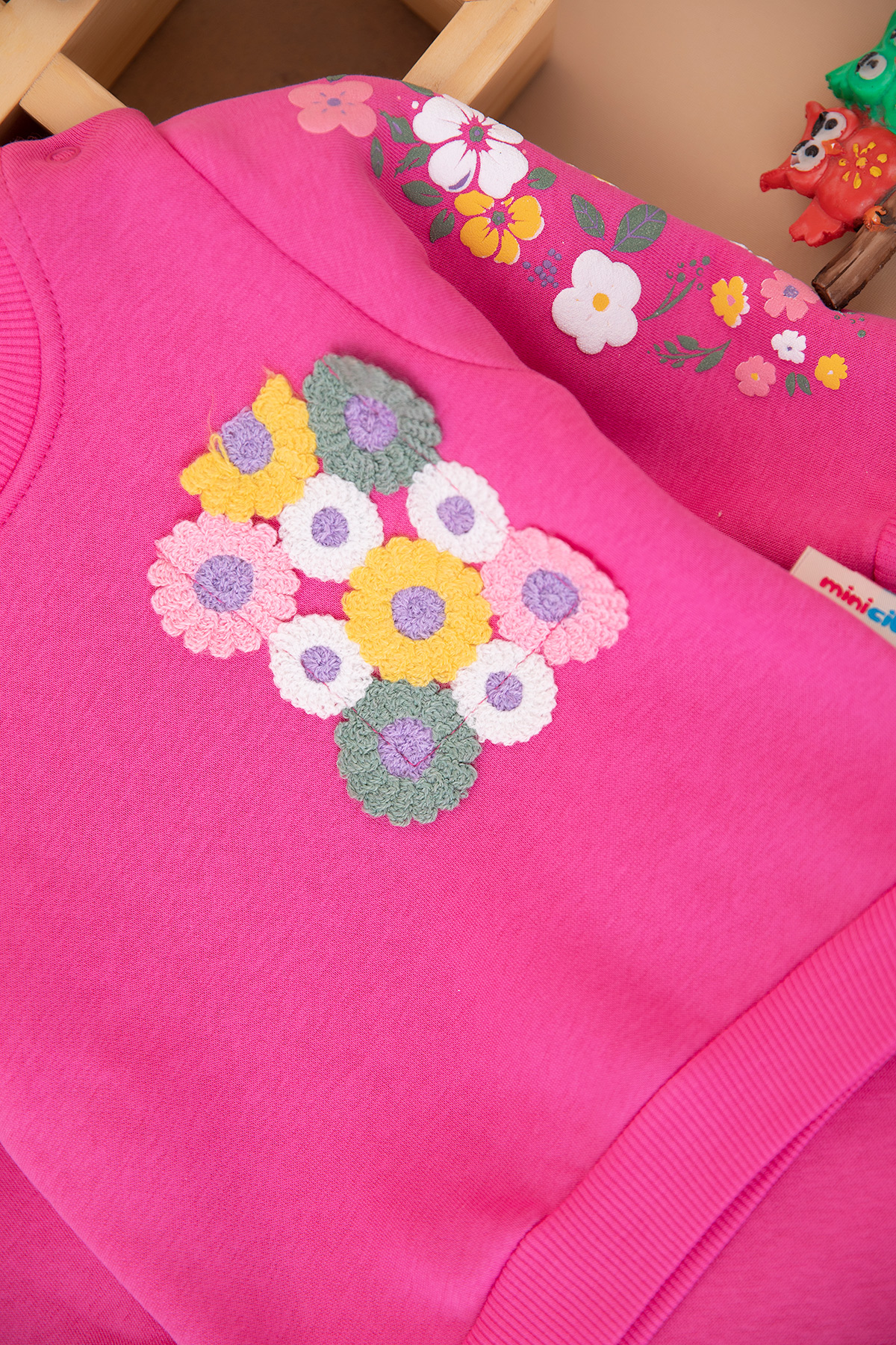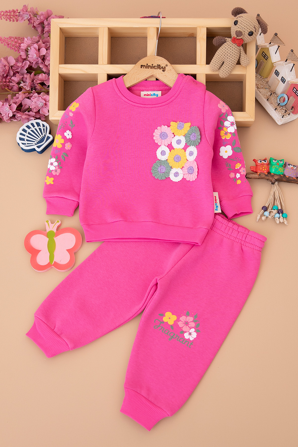 Kız Bebek Örme Papatya Cepli Üçip Takım - 25916 (9-24 Ay)