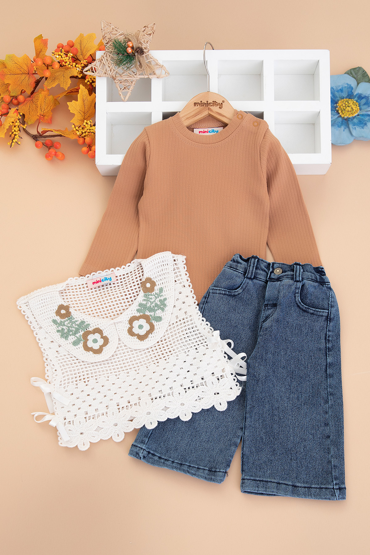 Kız Bebek Örme Yakalı Süveterli Takım - 26121 (9-24 Ay)