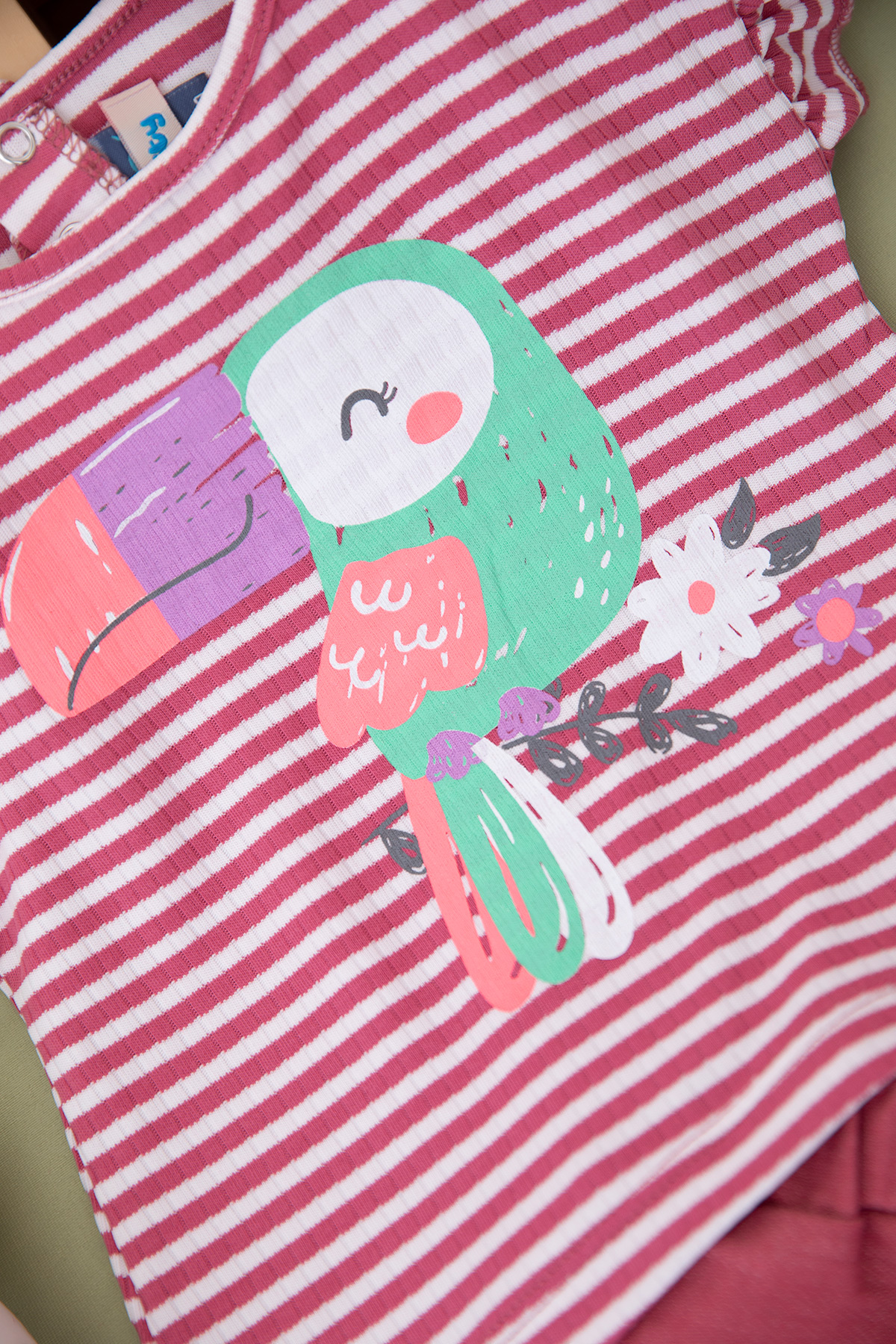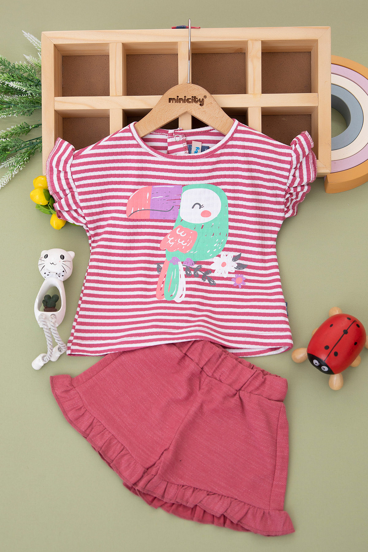 Kız Bebek Papağan Baskılı Şortlu Takım - 24222 (9-24 Ay)