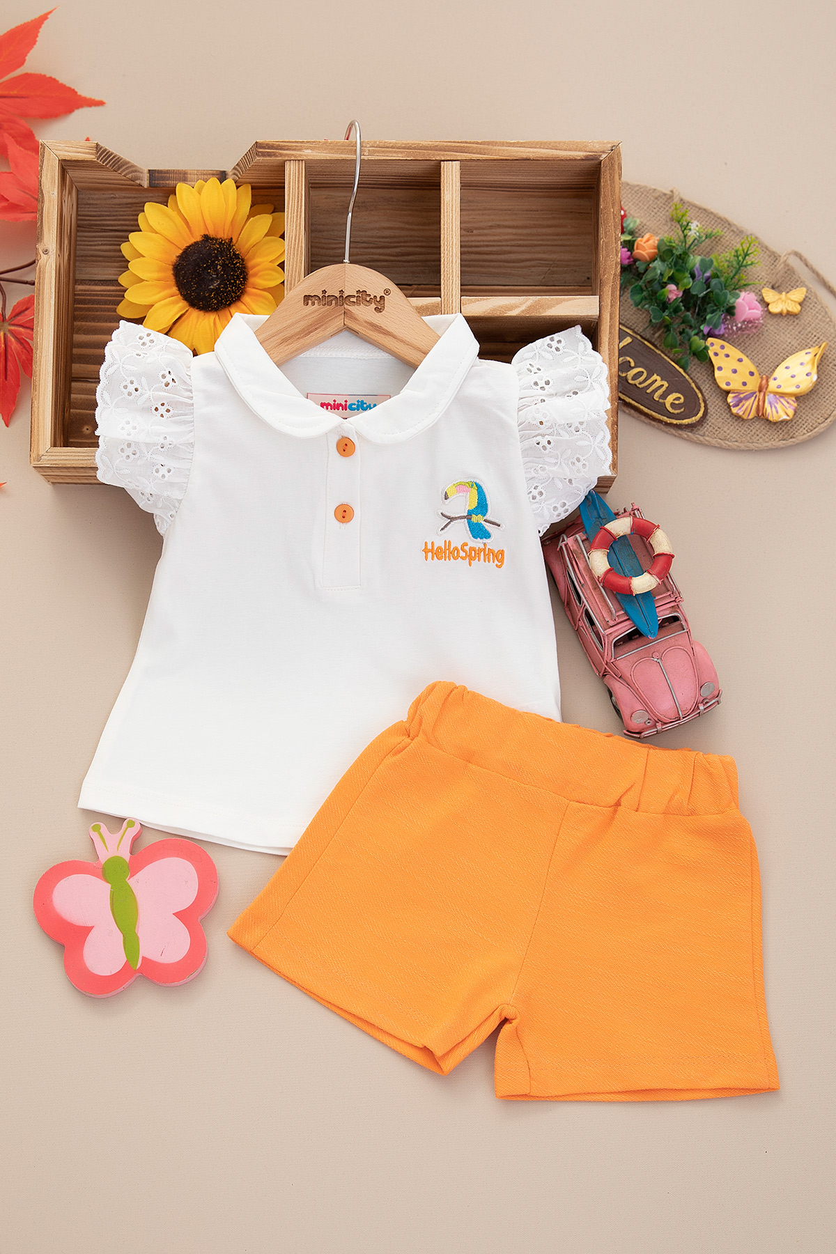 Kız Bebek Papağan Nakışlı Şortlu Takım - 25155 (9-24 Ay)
