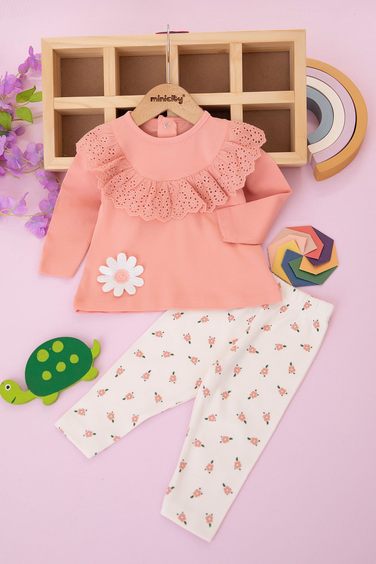 Kız Bebek Papatya Aplikeli Takım - 25109 (9-24 Ay)