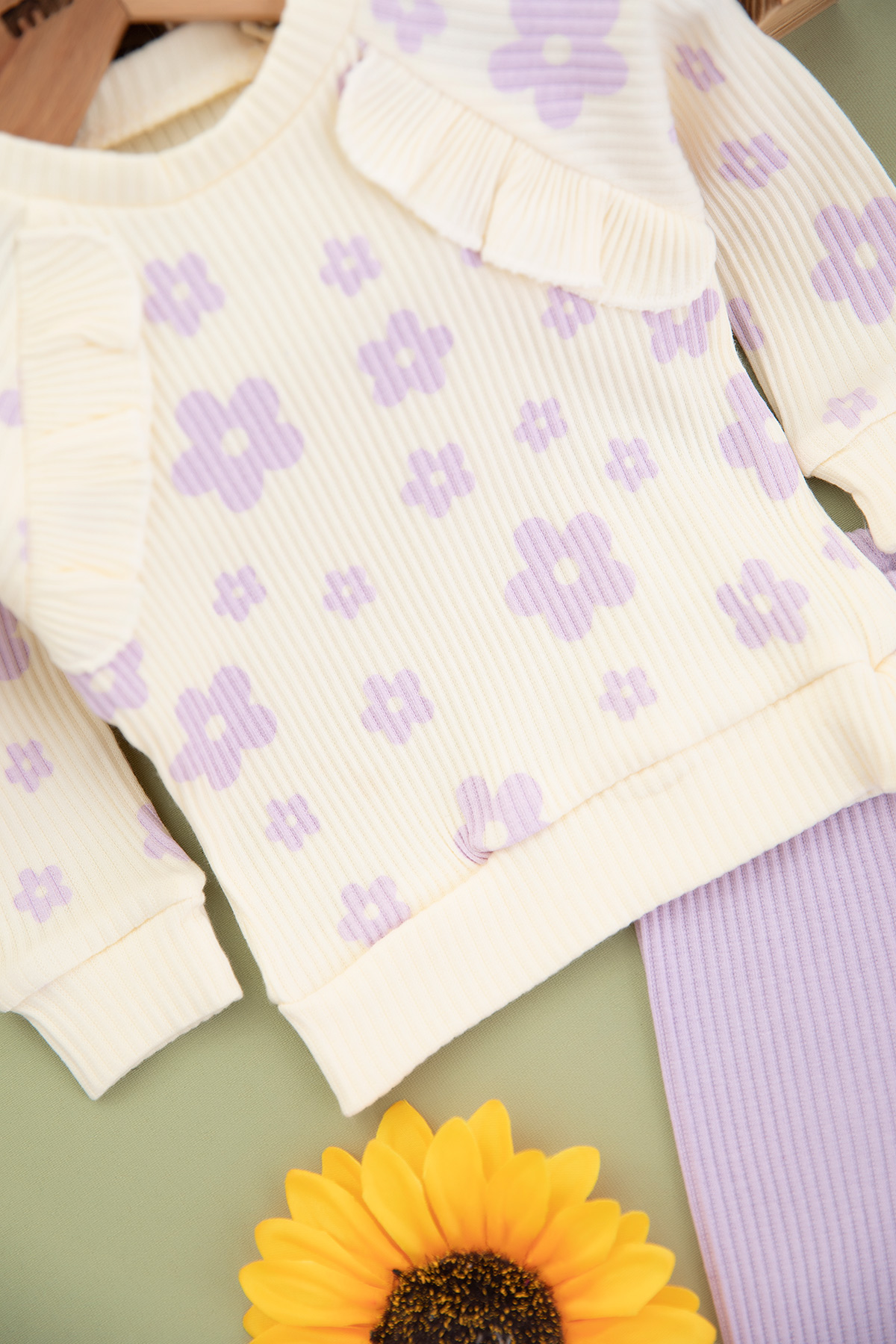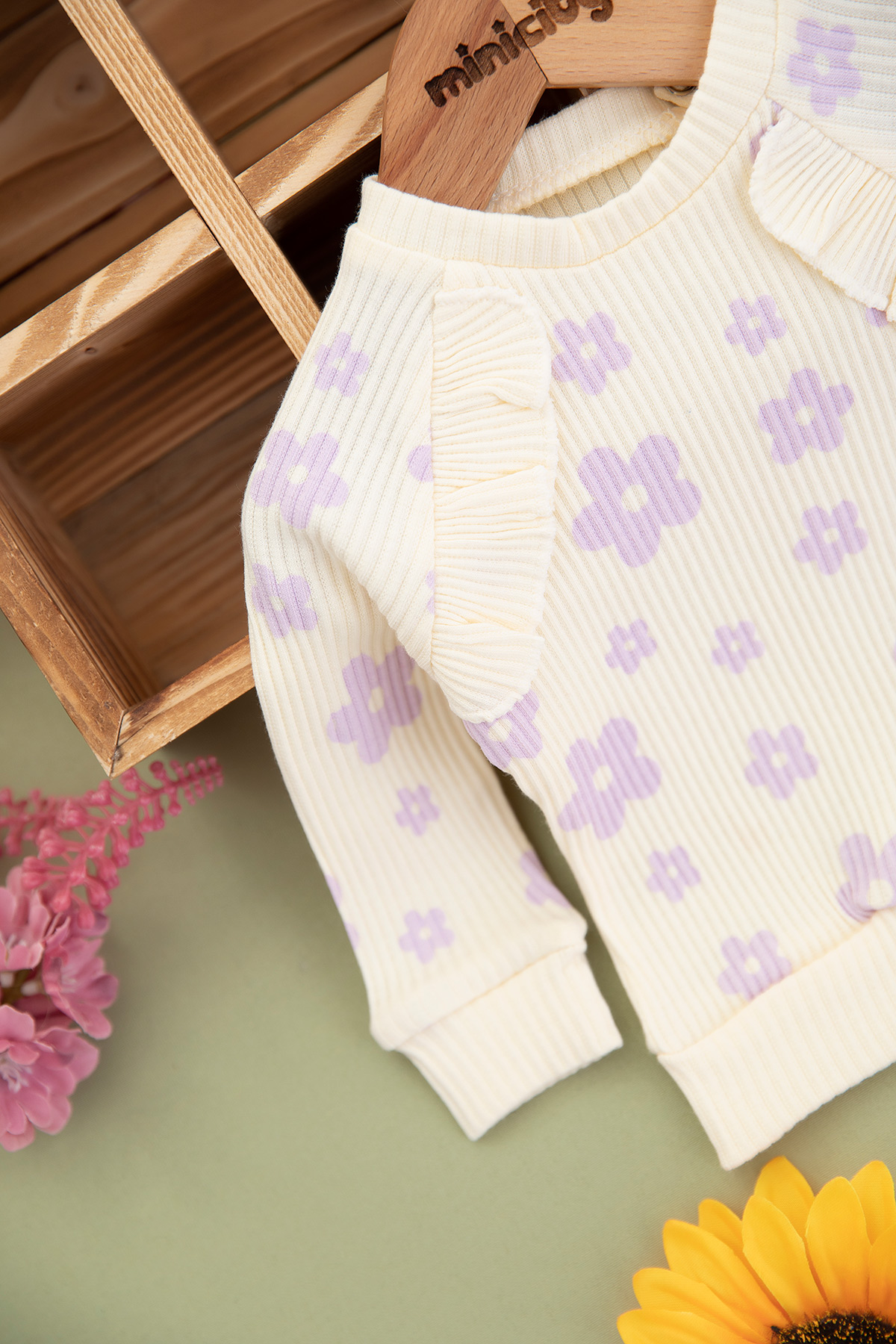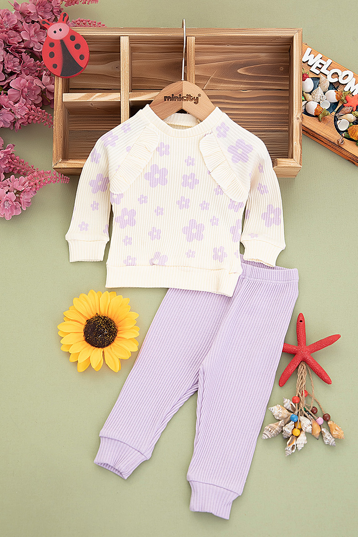 Kız Bebek Papatya Baskılı Fırfırlı Takım - 1183 (3-12 Ay)