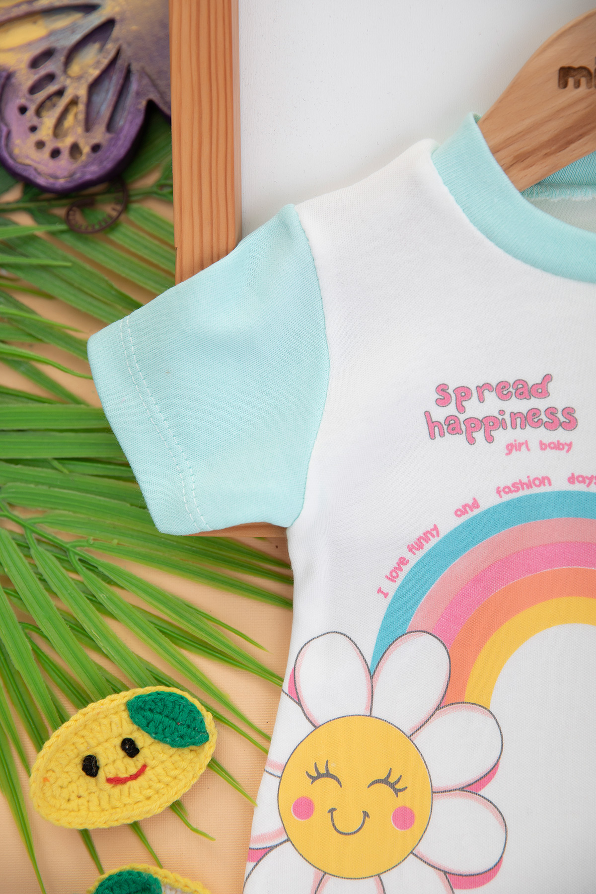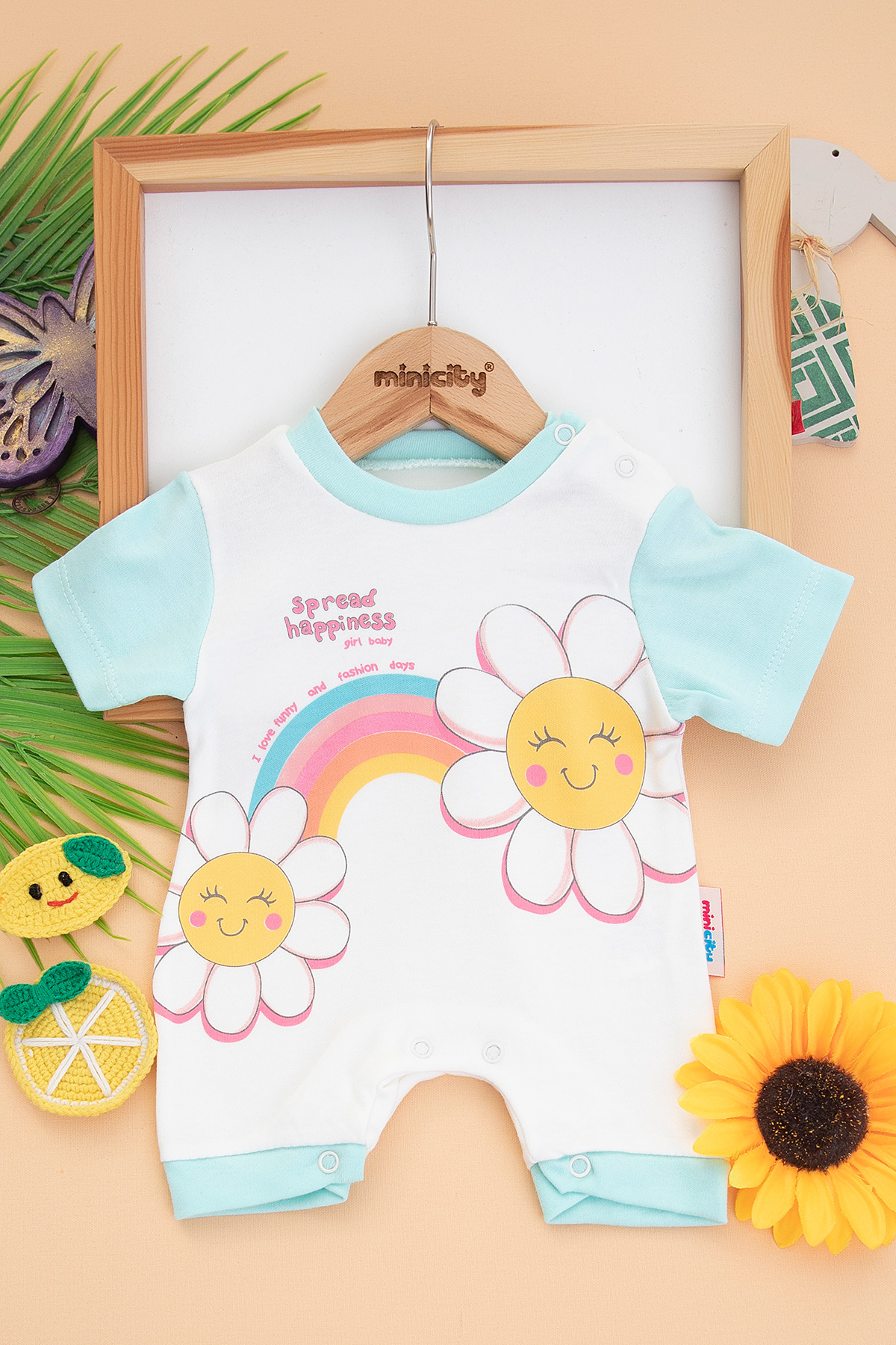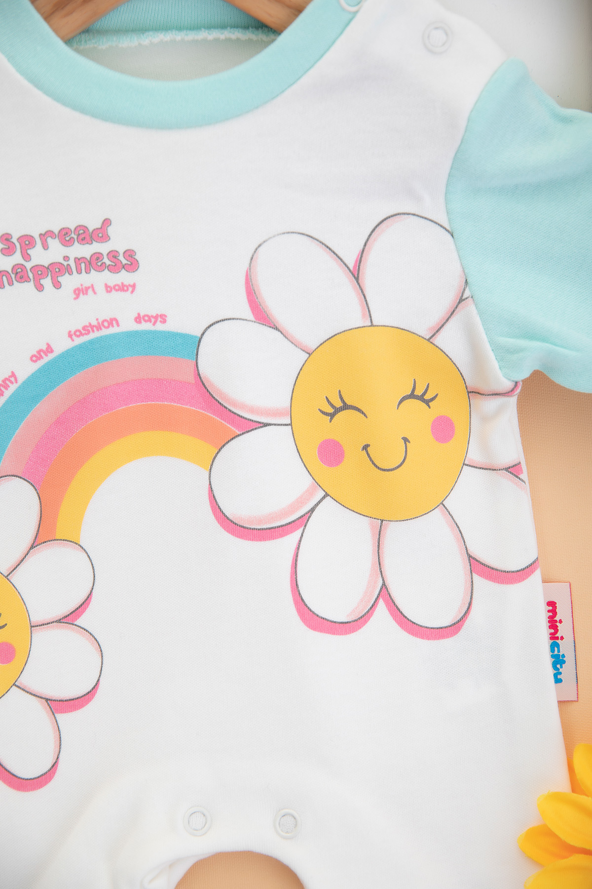 Kız Bebek Papatya Baskılı Kısa Tulum - 1051 (3-9 Ay)