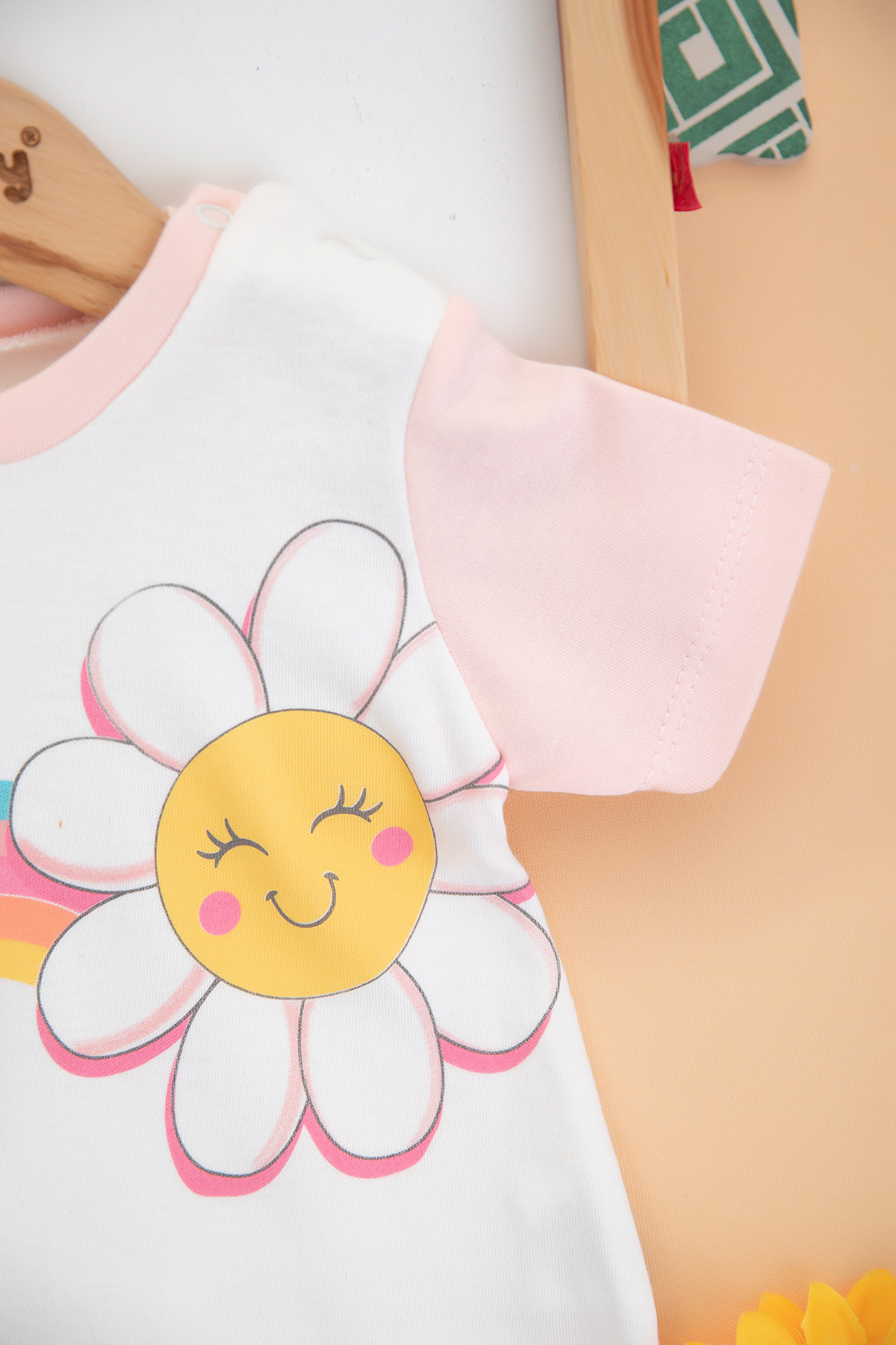Kız Bebek Papatya Baskılı Kısa Tulum - 1051 (3-9 Ay)