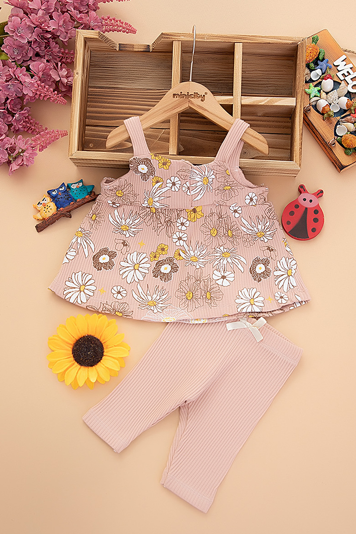 Kız Bebek Papatya Baskılı Şortlu Takım - 2541 (6-24 Ay)