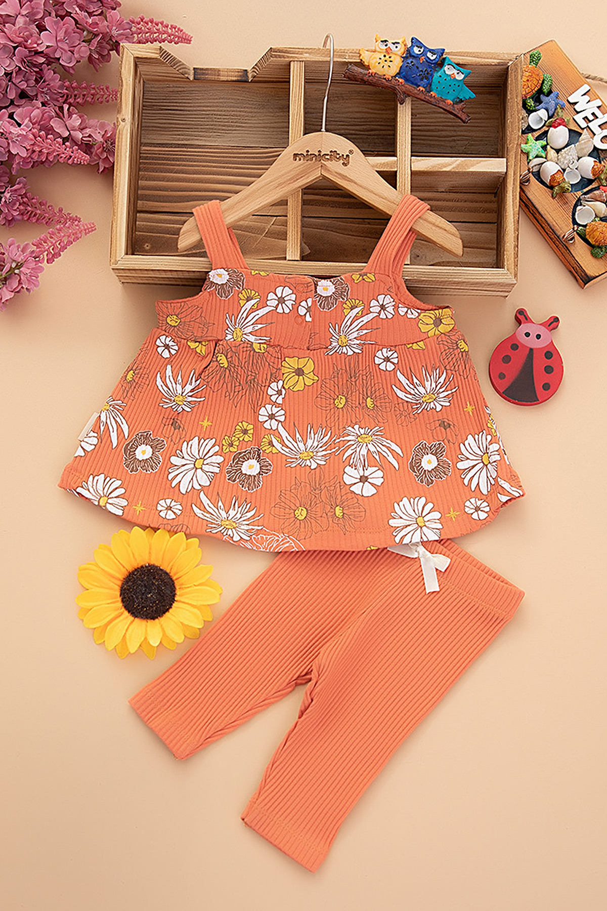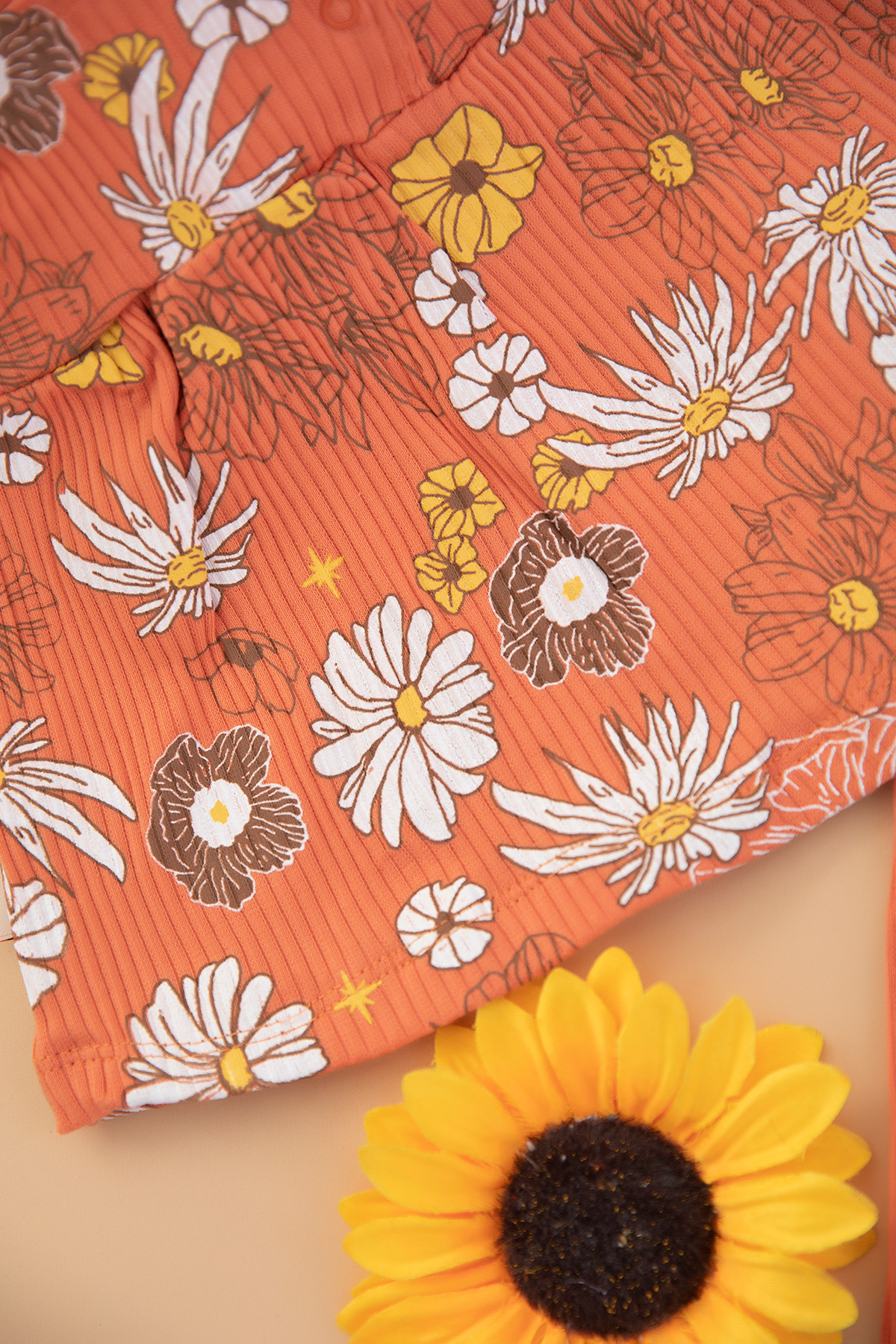 Kız Bebek Papatya Baskılı Şortlu Takım - 2541 (6-24 Ay)