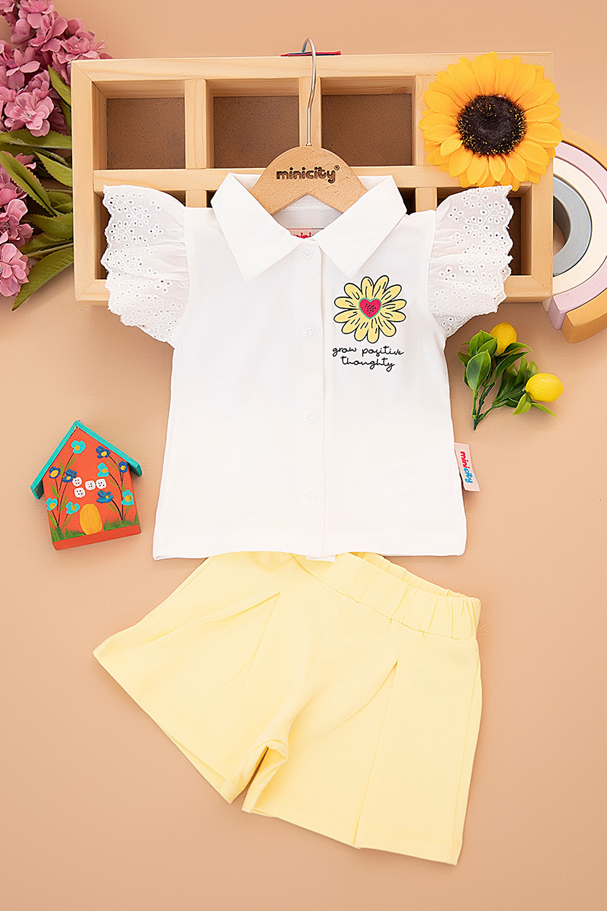 Kız Bebek Papatya Baskılı Şortlu Takım - 25543 (9-24 Ay)