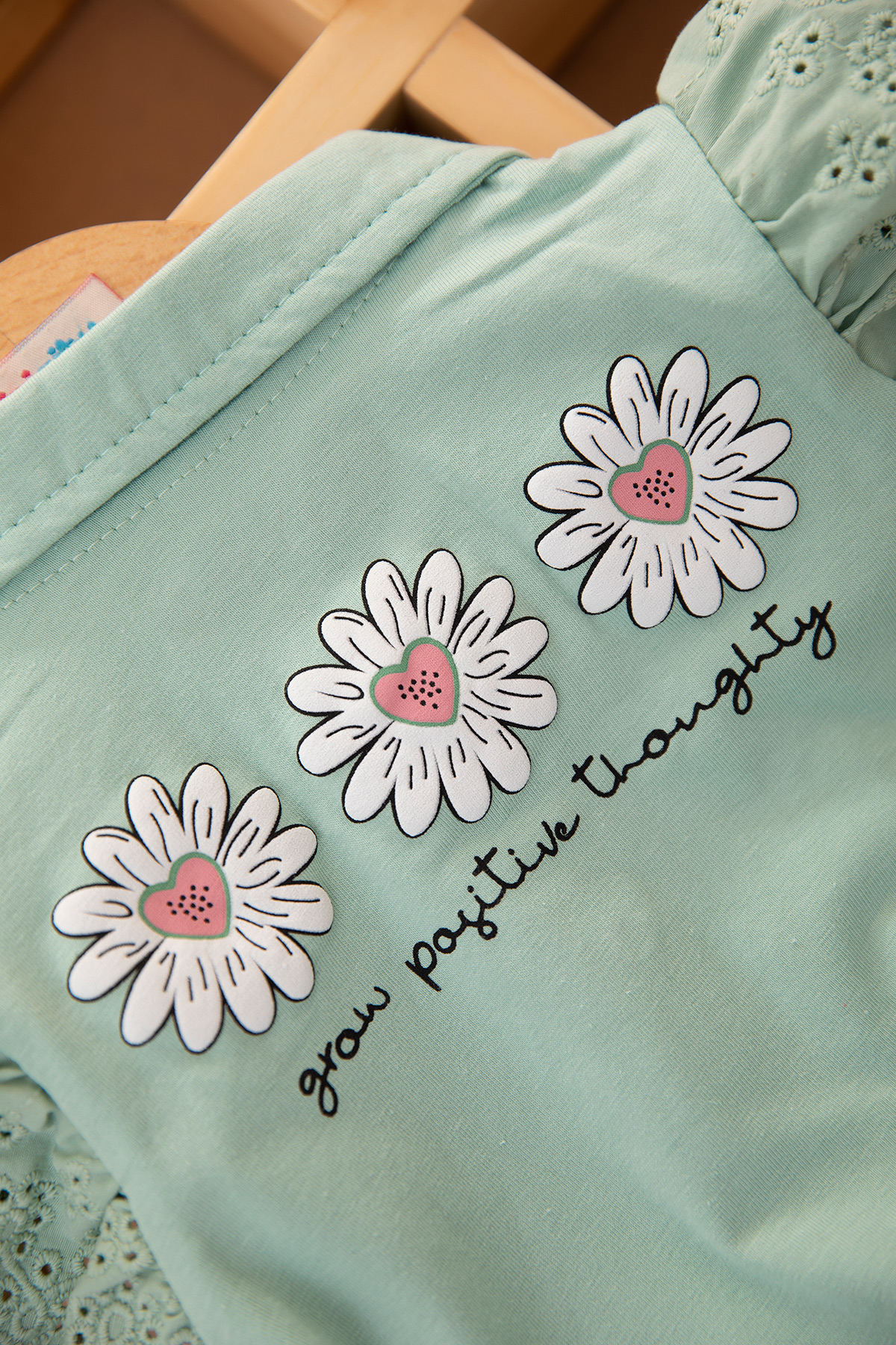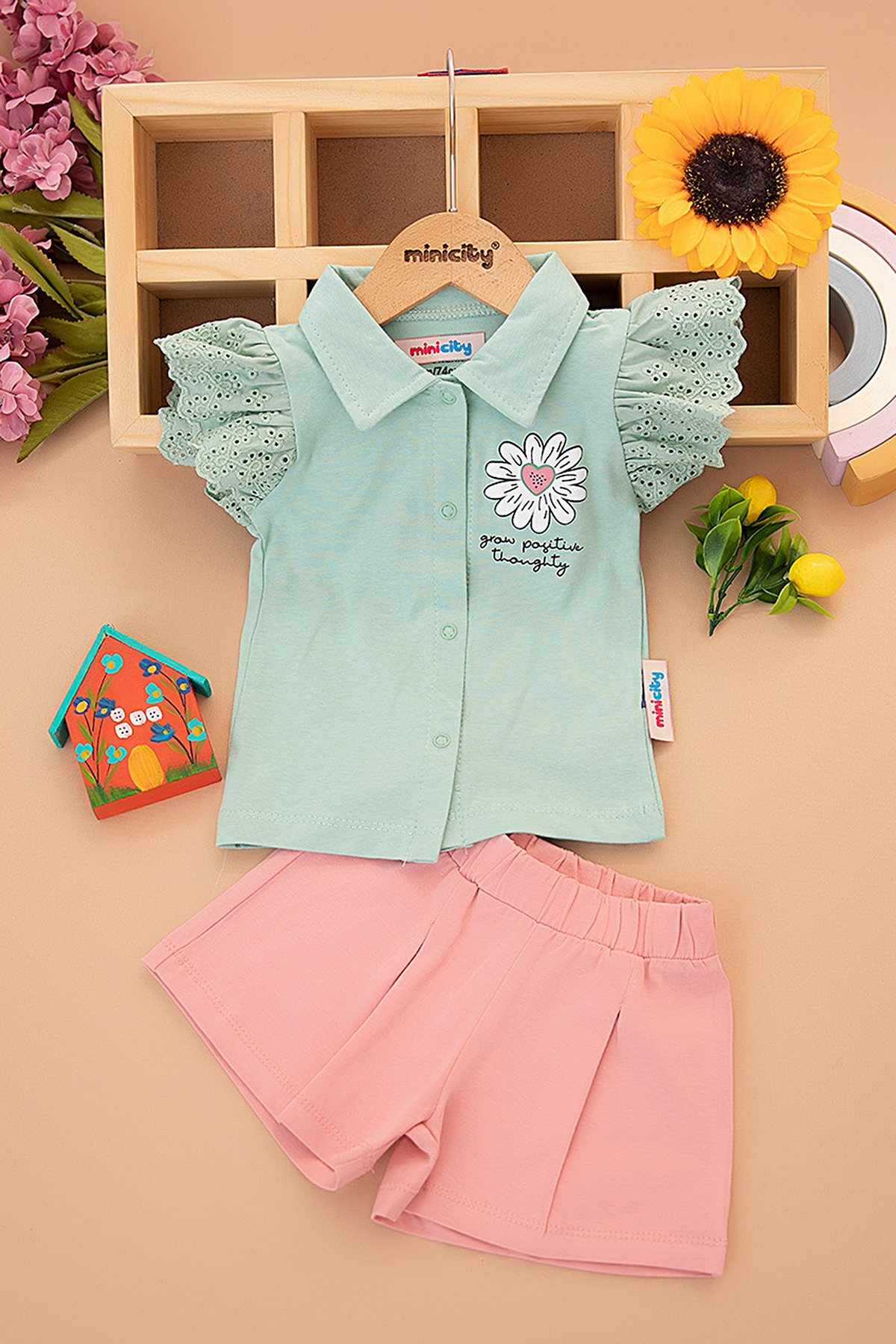 Kız Bebek Papatya Baskılı Şortlu Takım - 25543 (9-24 Ay)