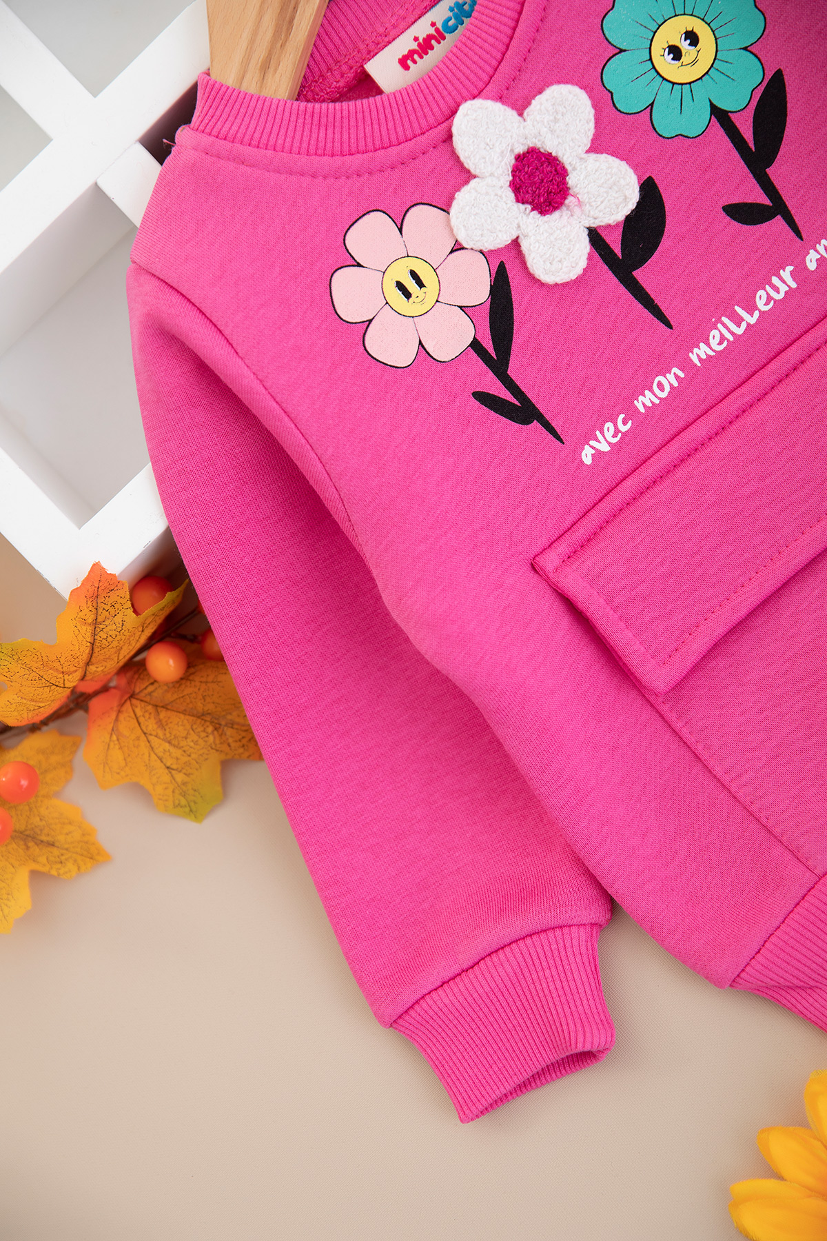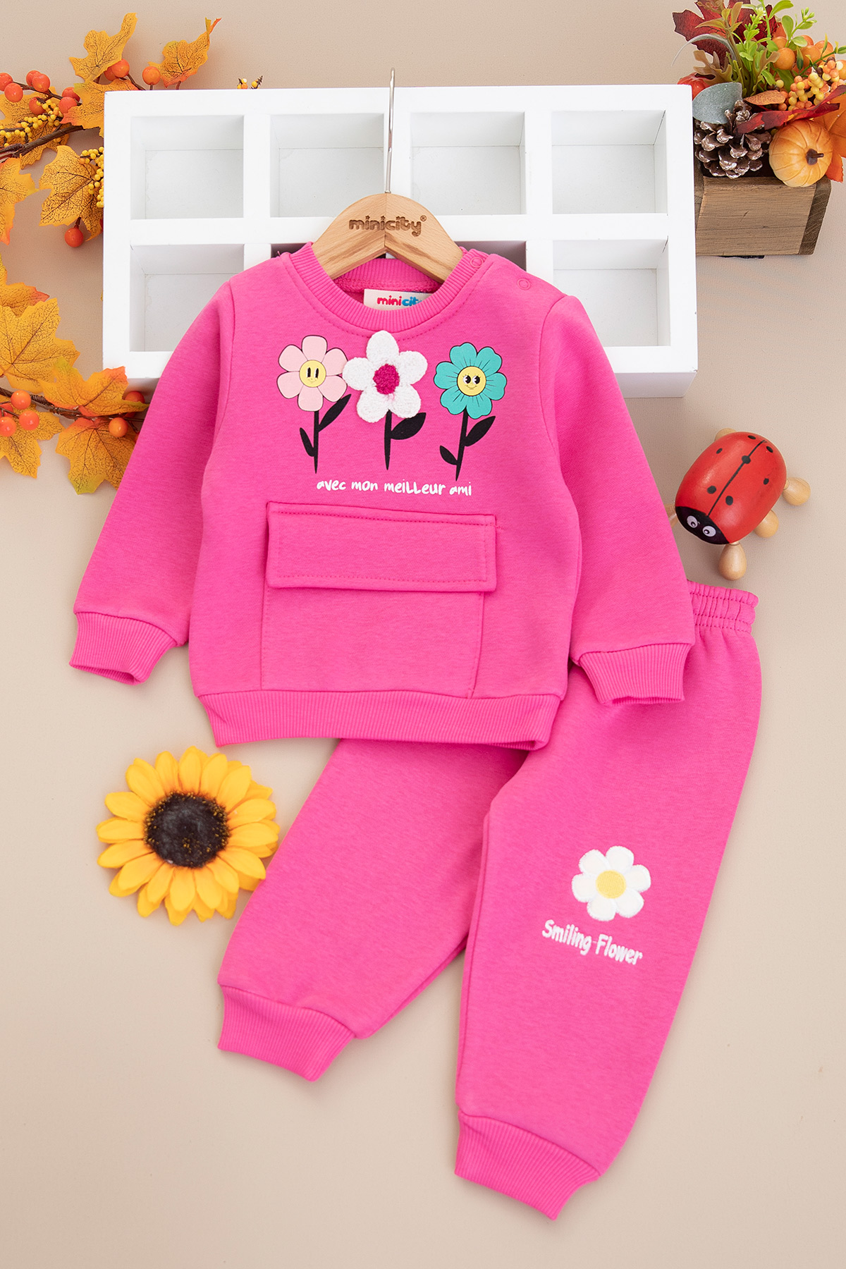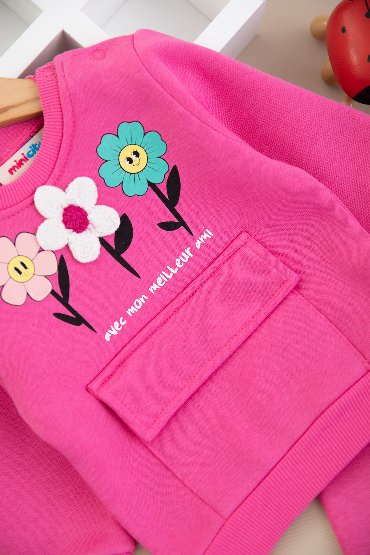 Kız Bebek Papatya Baskılı Üçip Takım - 25956 (9-24 Ay)