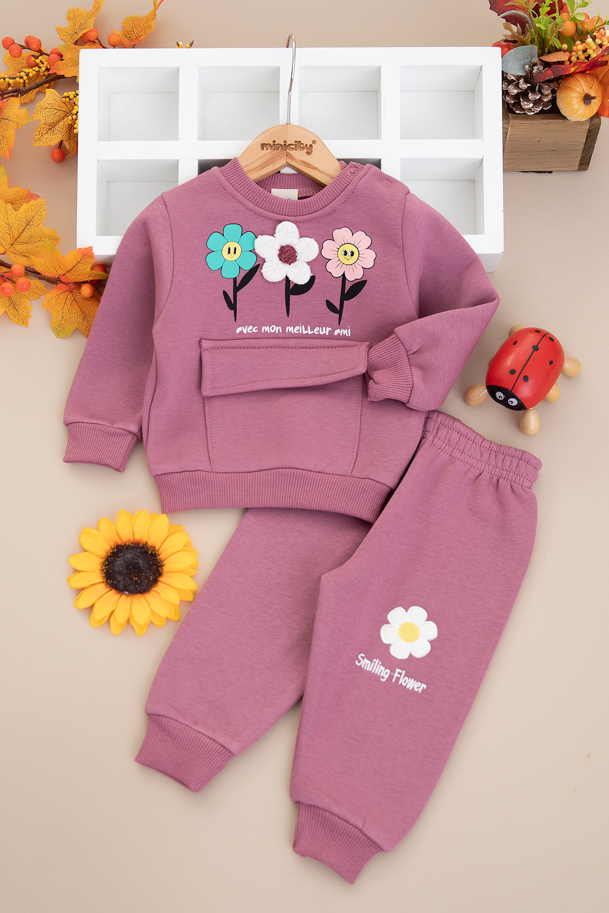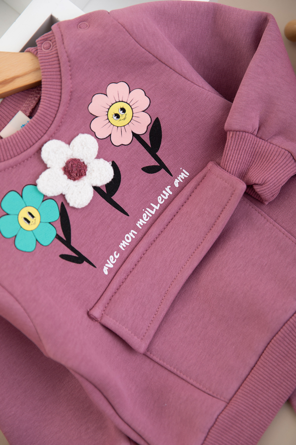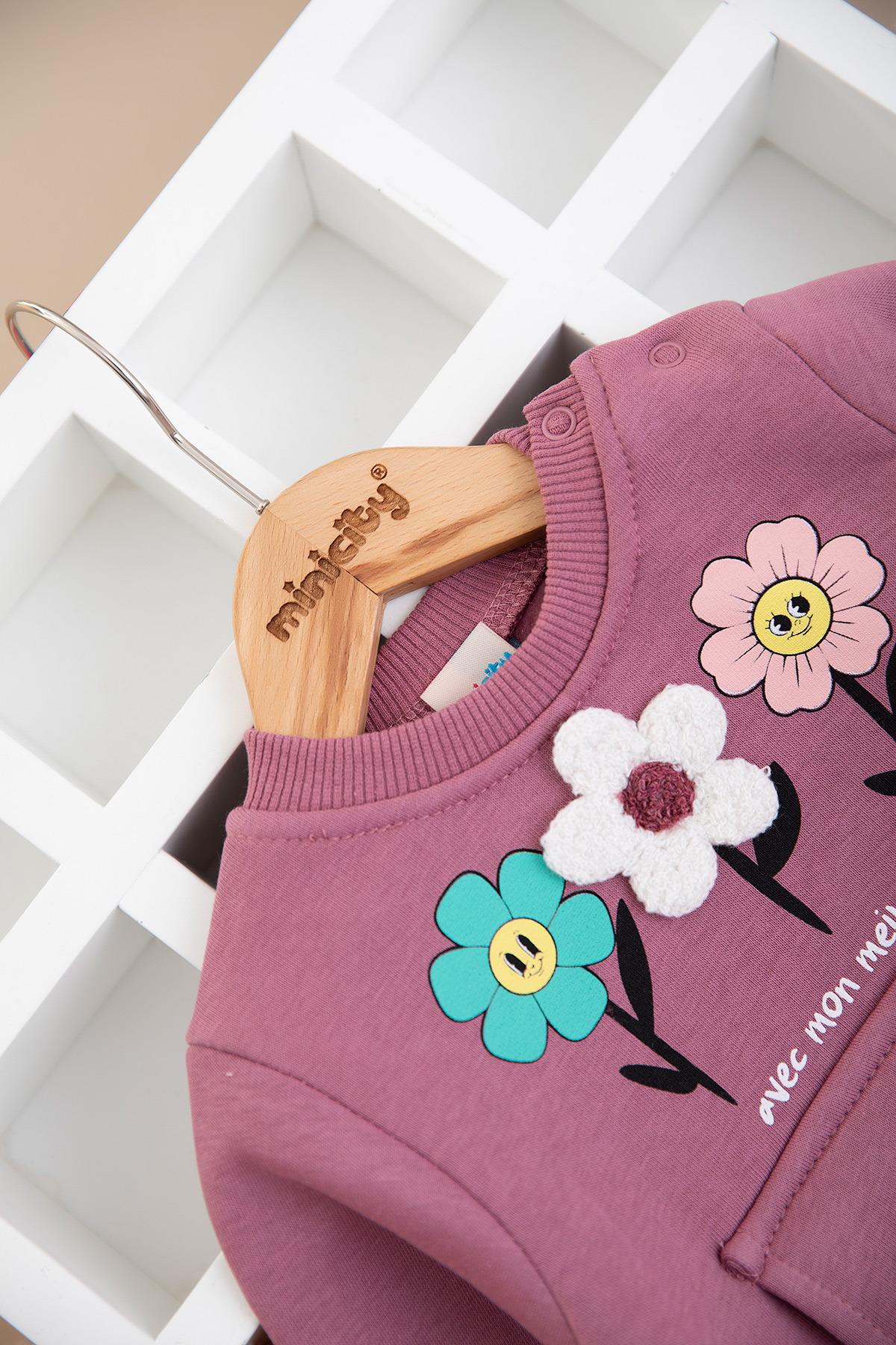 Kız Bebek Papatya Baskılı Üçip Takım - 25956 (9-24 Ay)