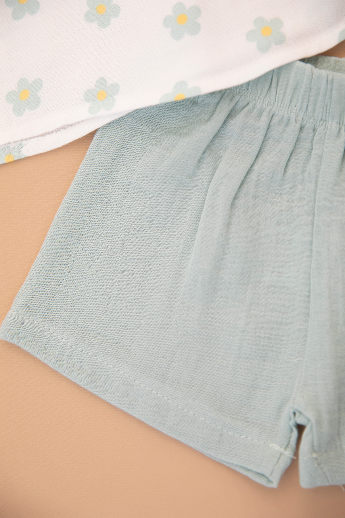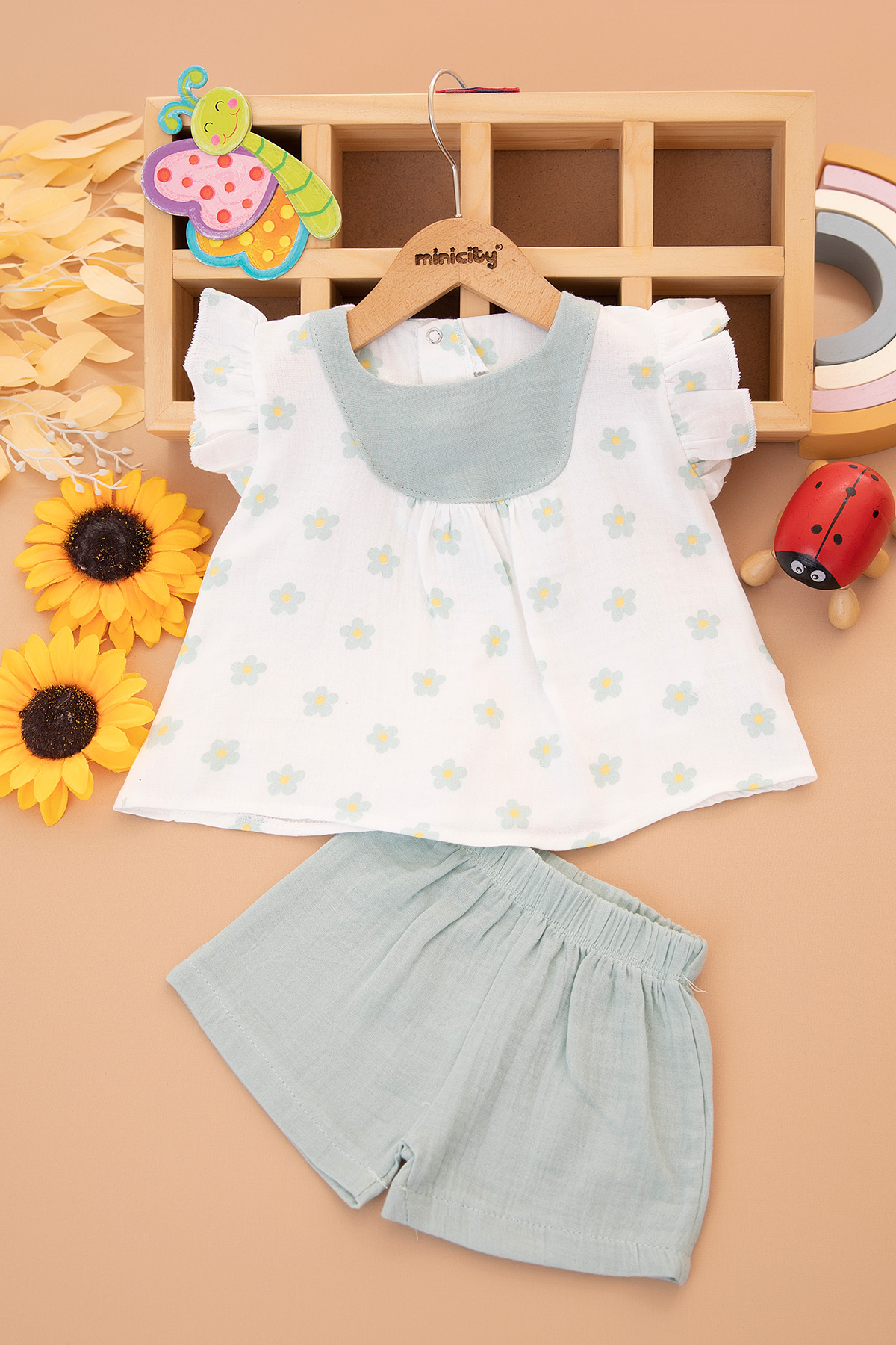 Kız Bebek Papatya Desenli Şortlu Takım - 25568 (9-24 Ay)