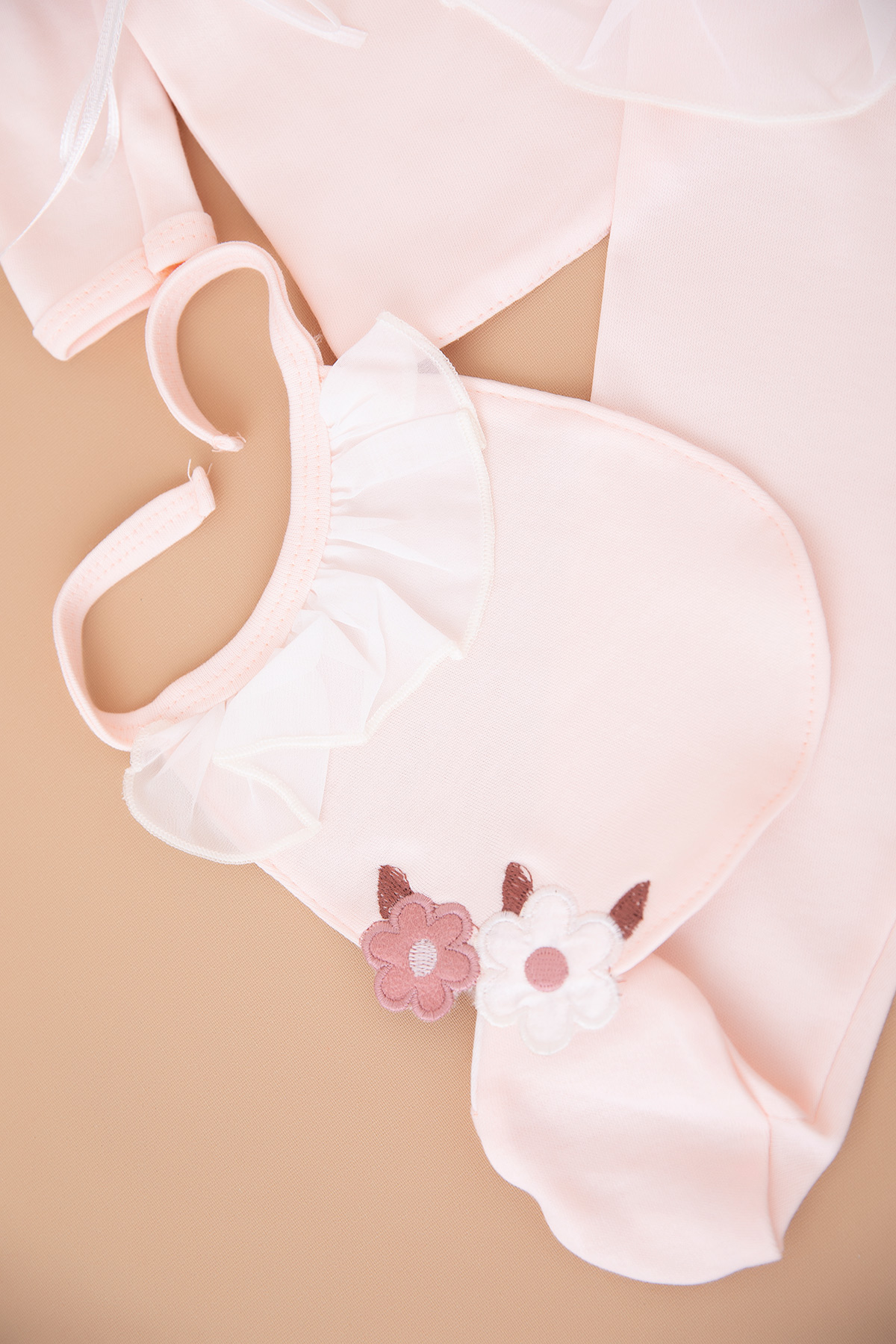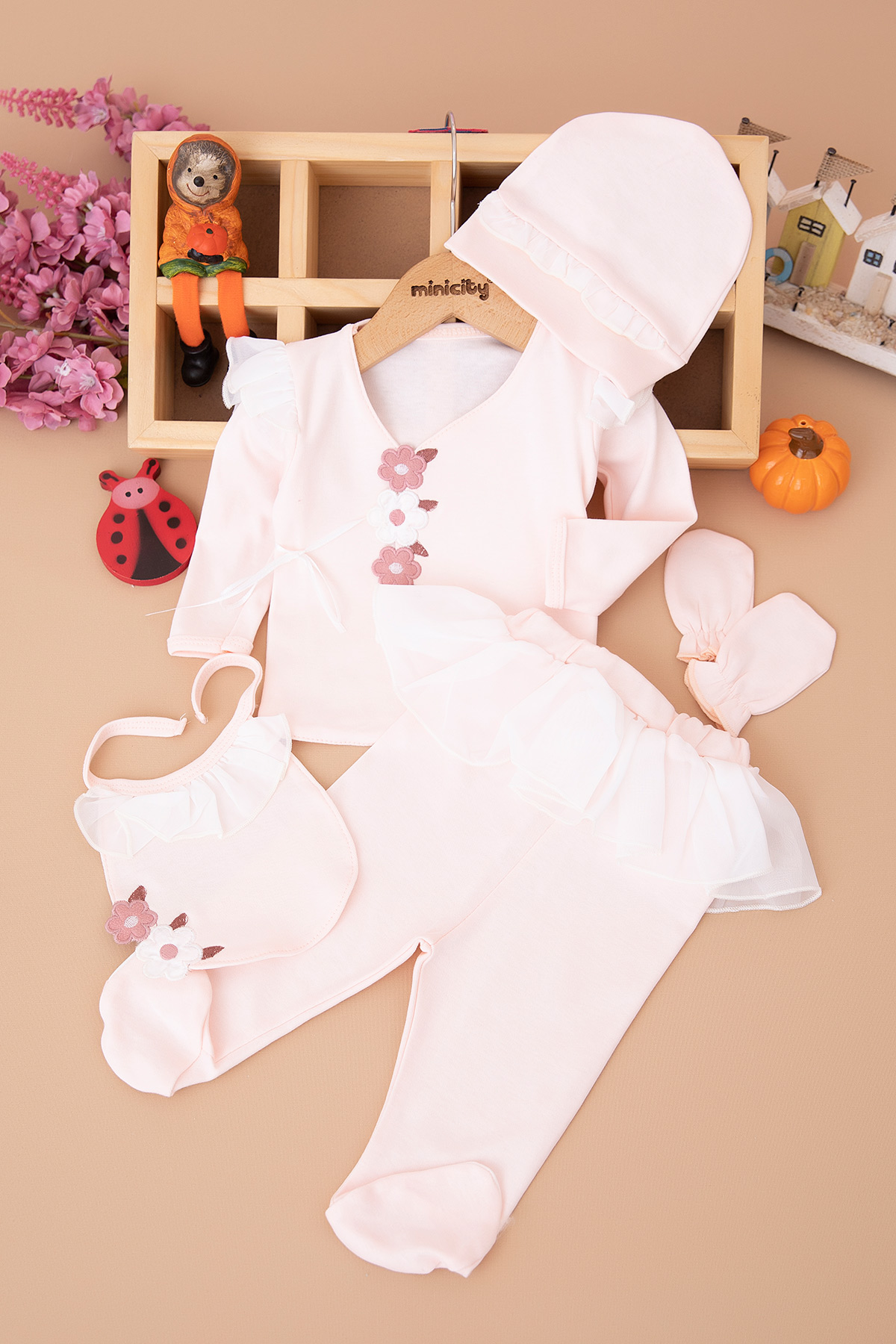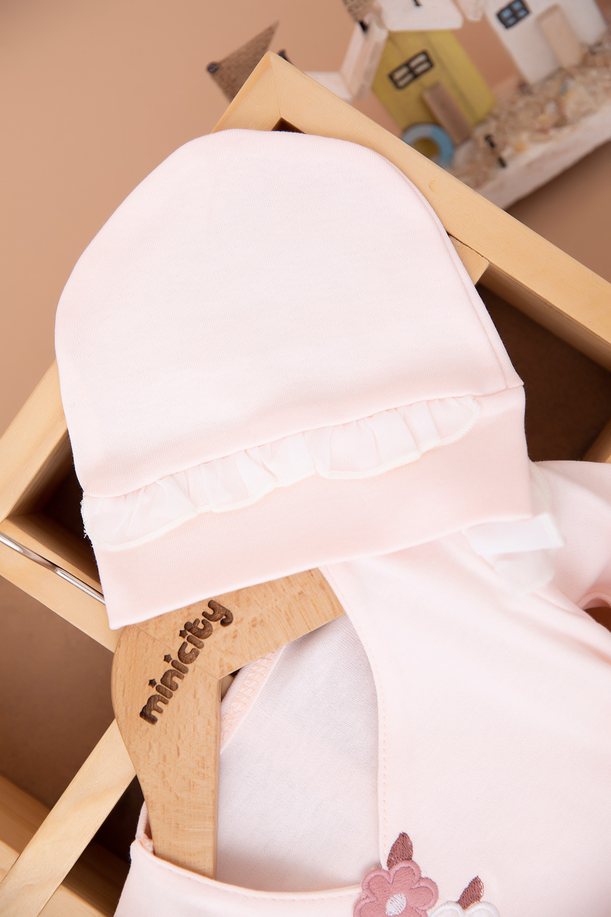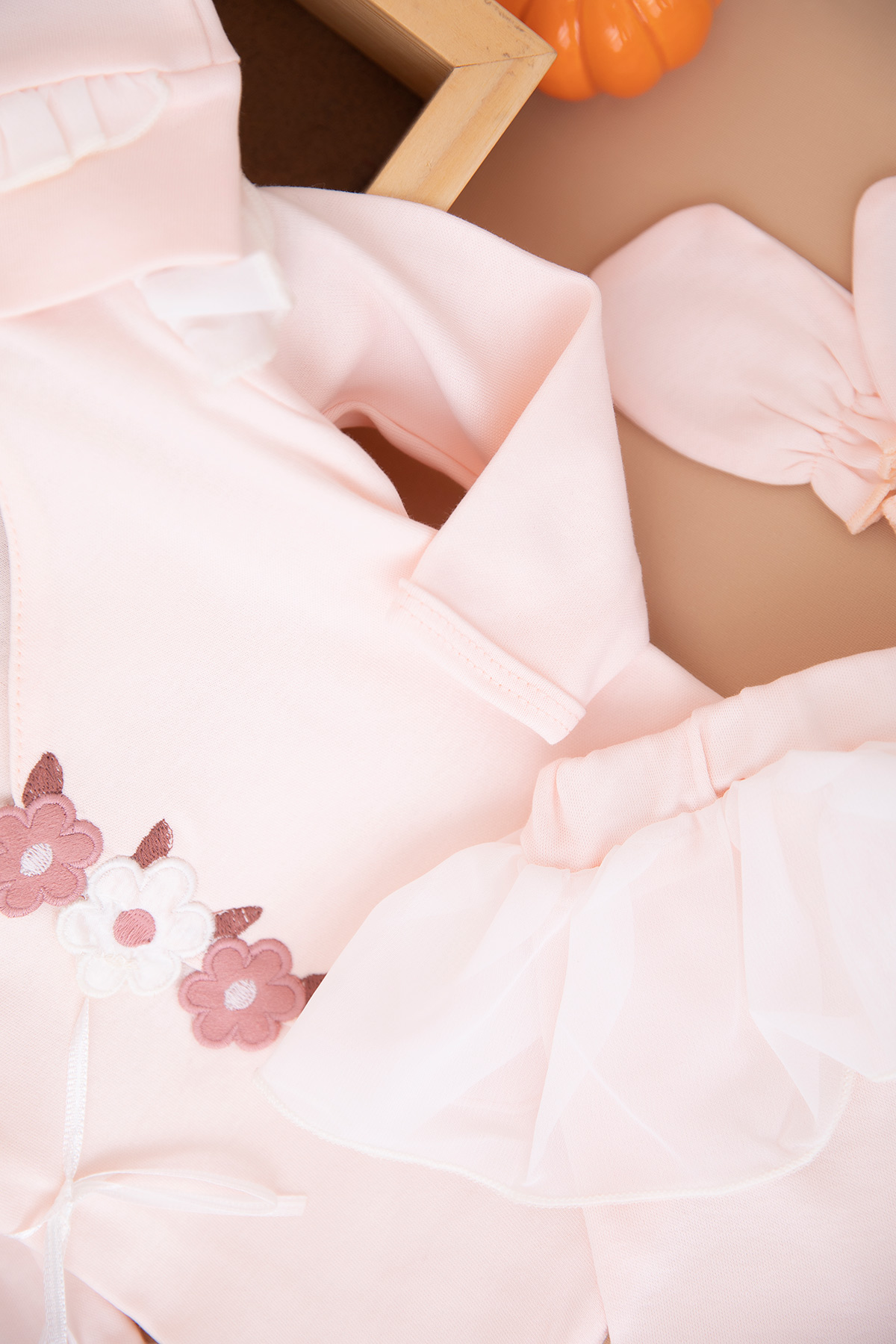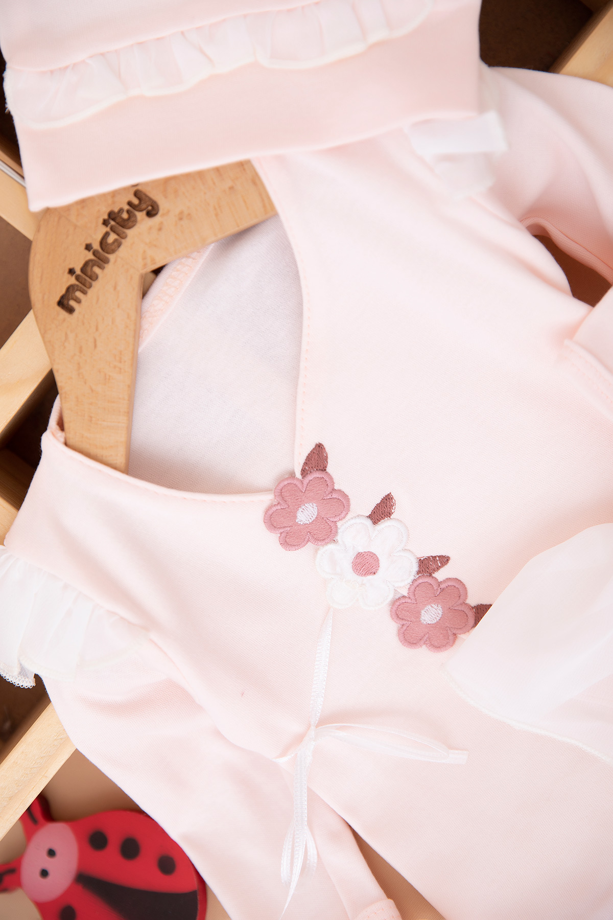 Kız Bebek Papatya Nakışlı 5`Li Zıbın Seti - 8008