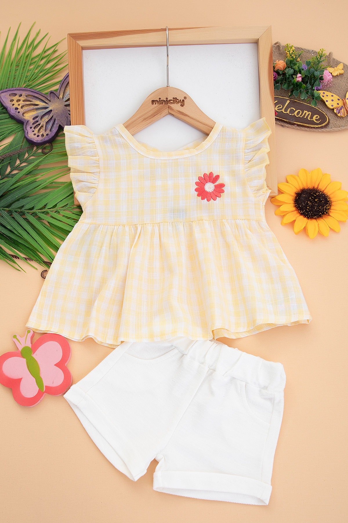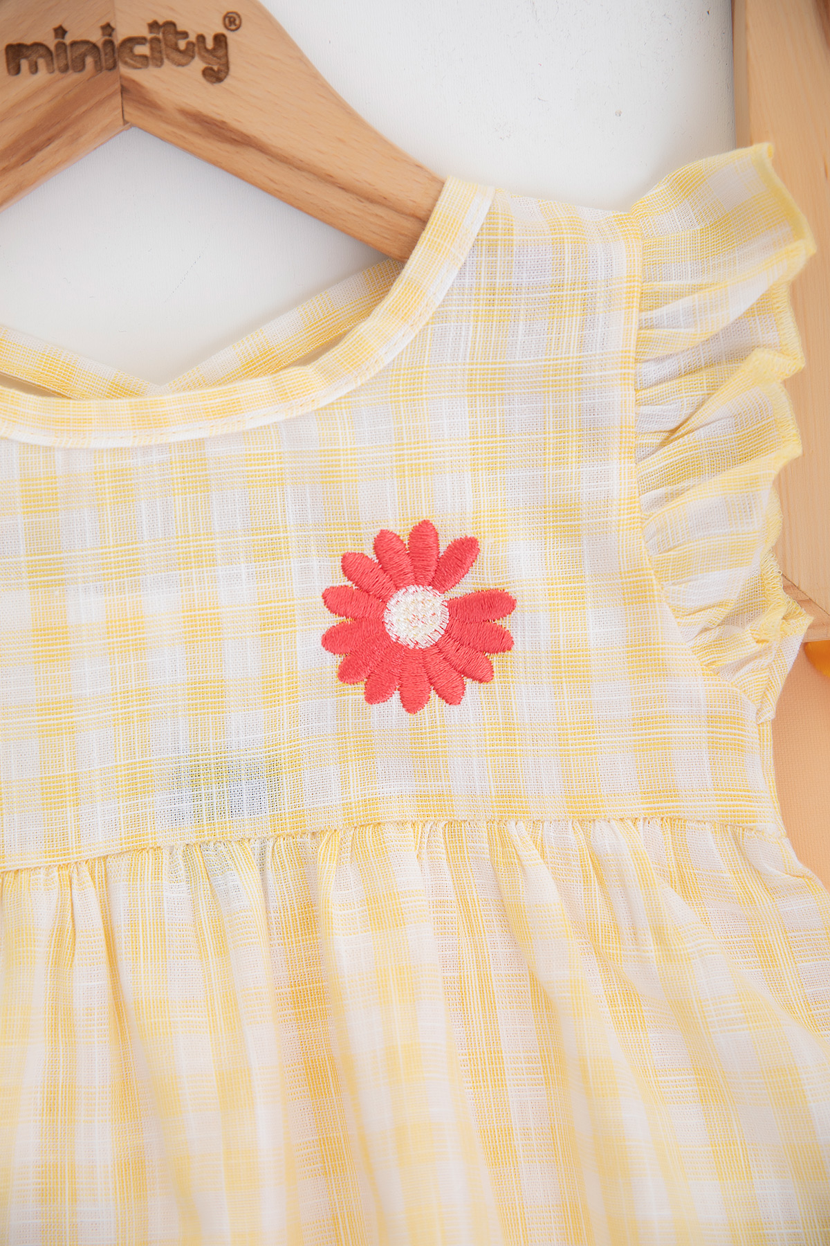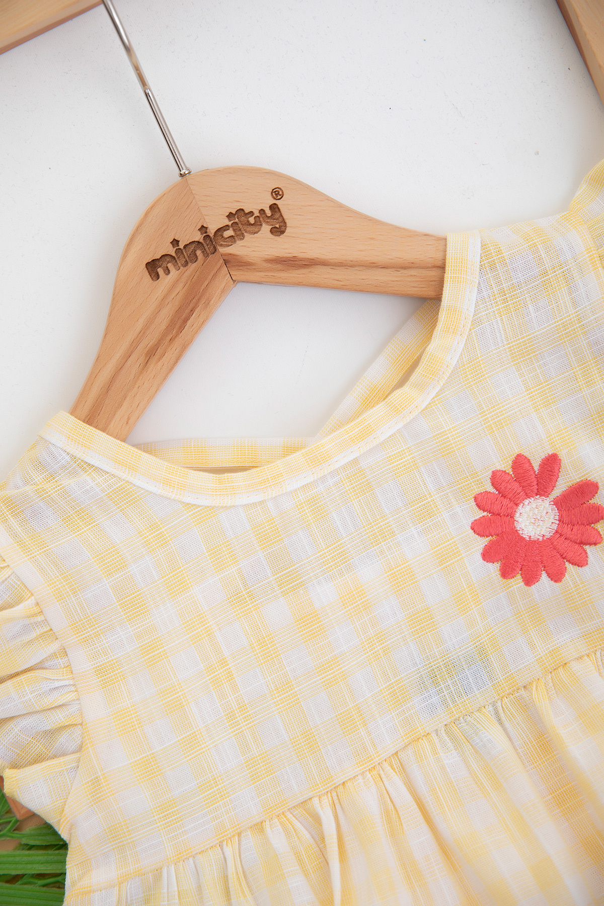Kız Bebek Papatya Nakışlı Ekose Dokuma Takım - 24352 (9-24 Ay)