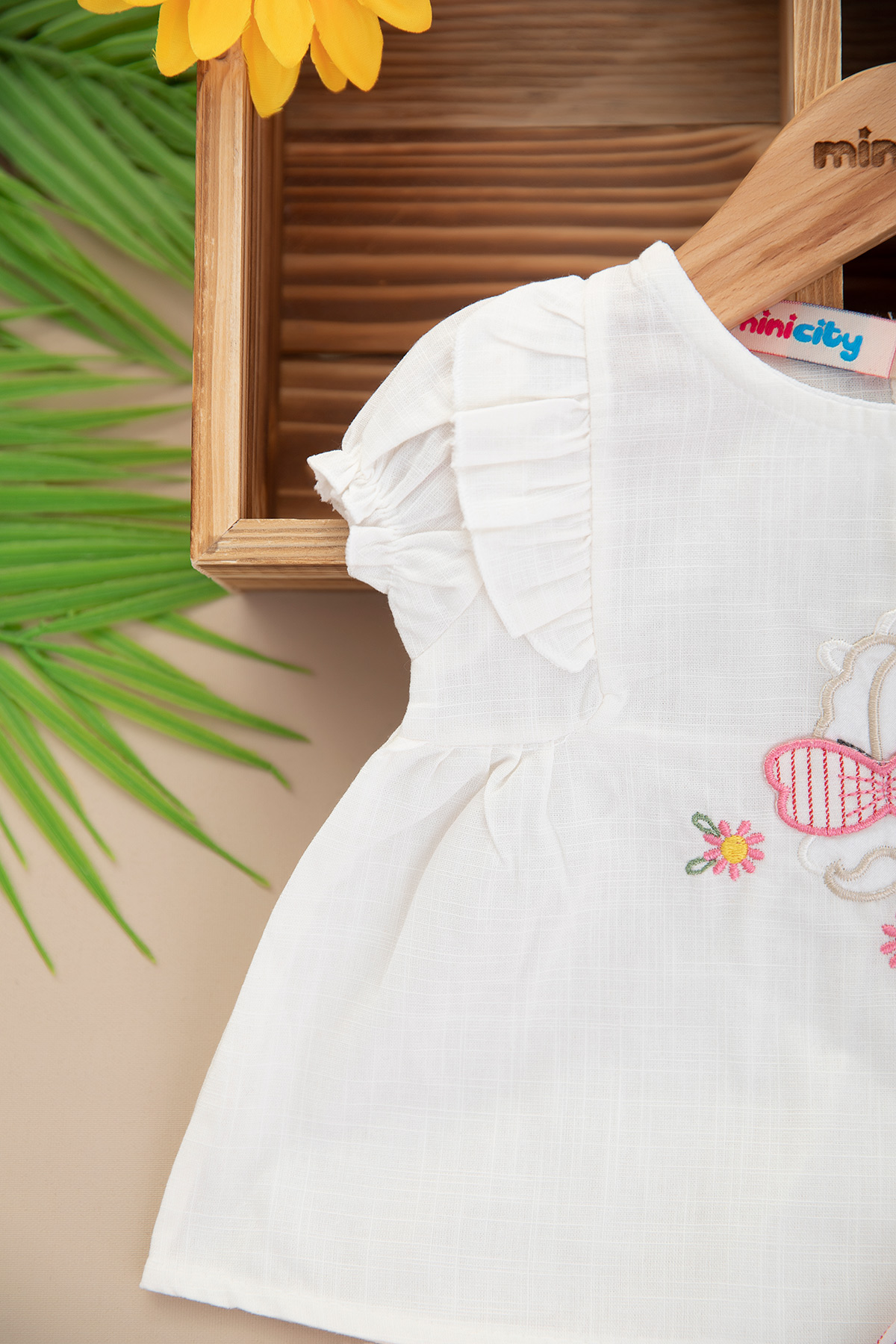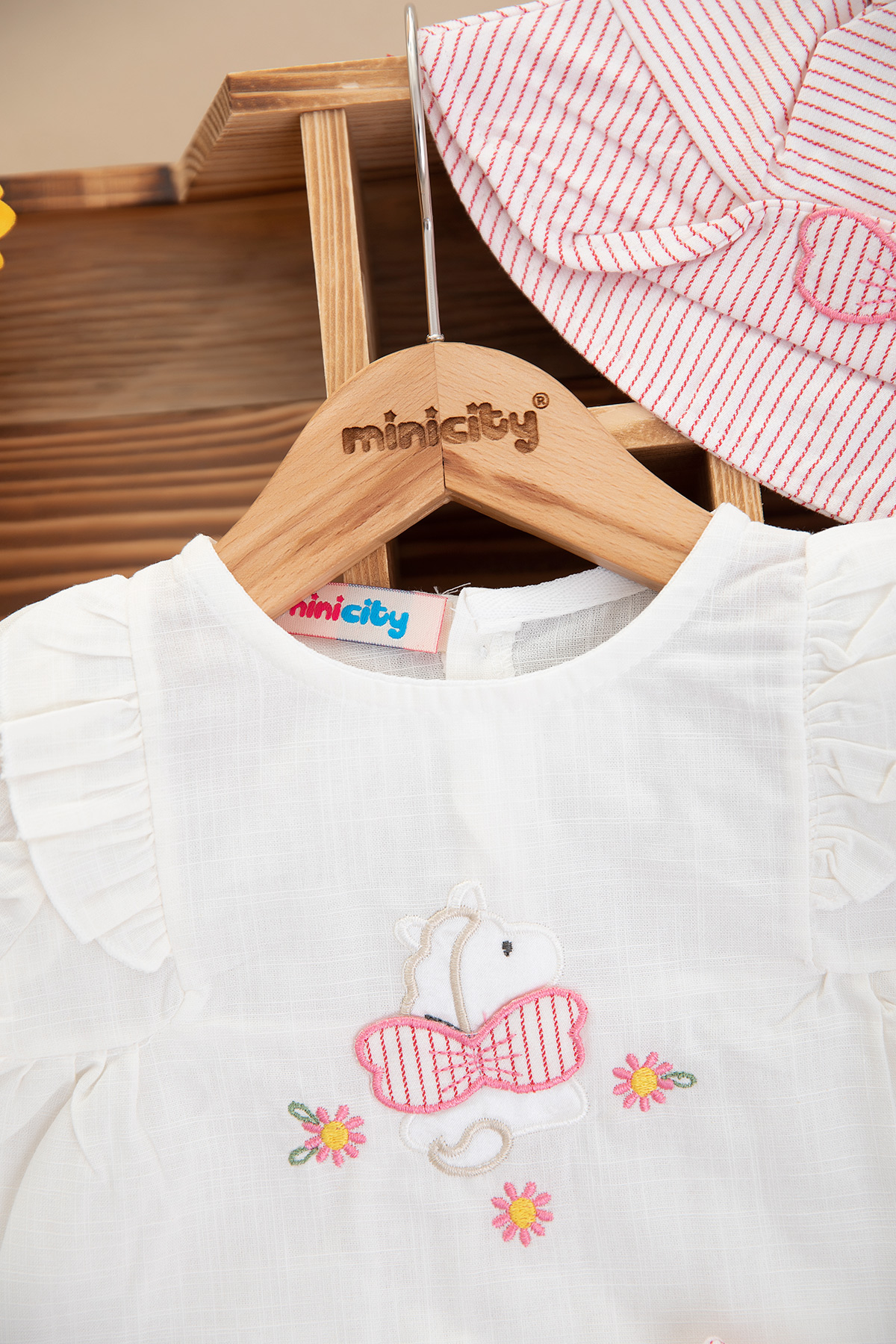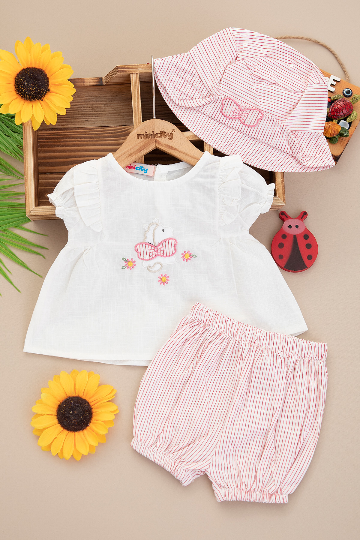Kız Bebek Papatya Nakışlı Şortlu Takım - 0513 (6-18 Ay)