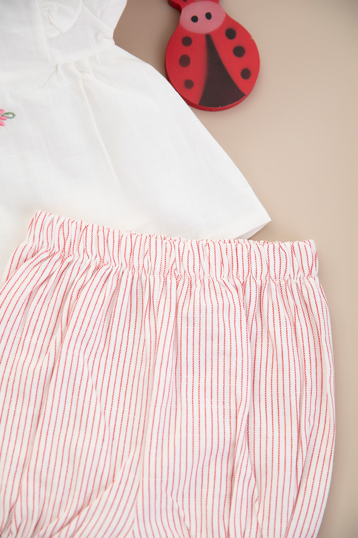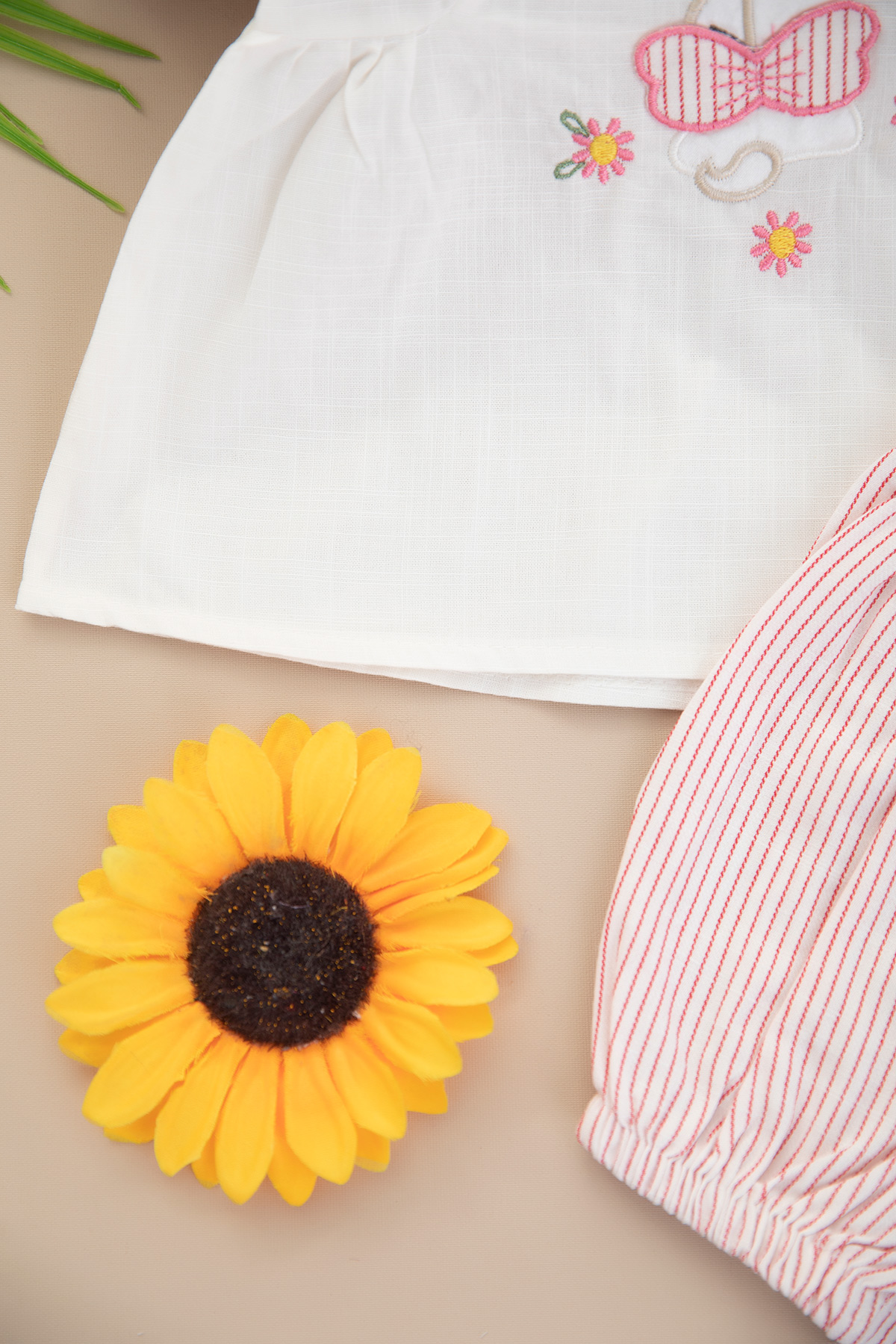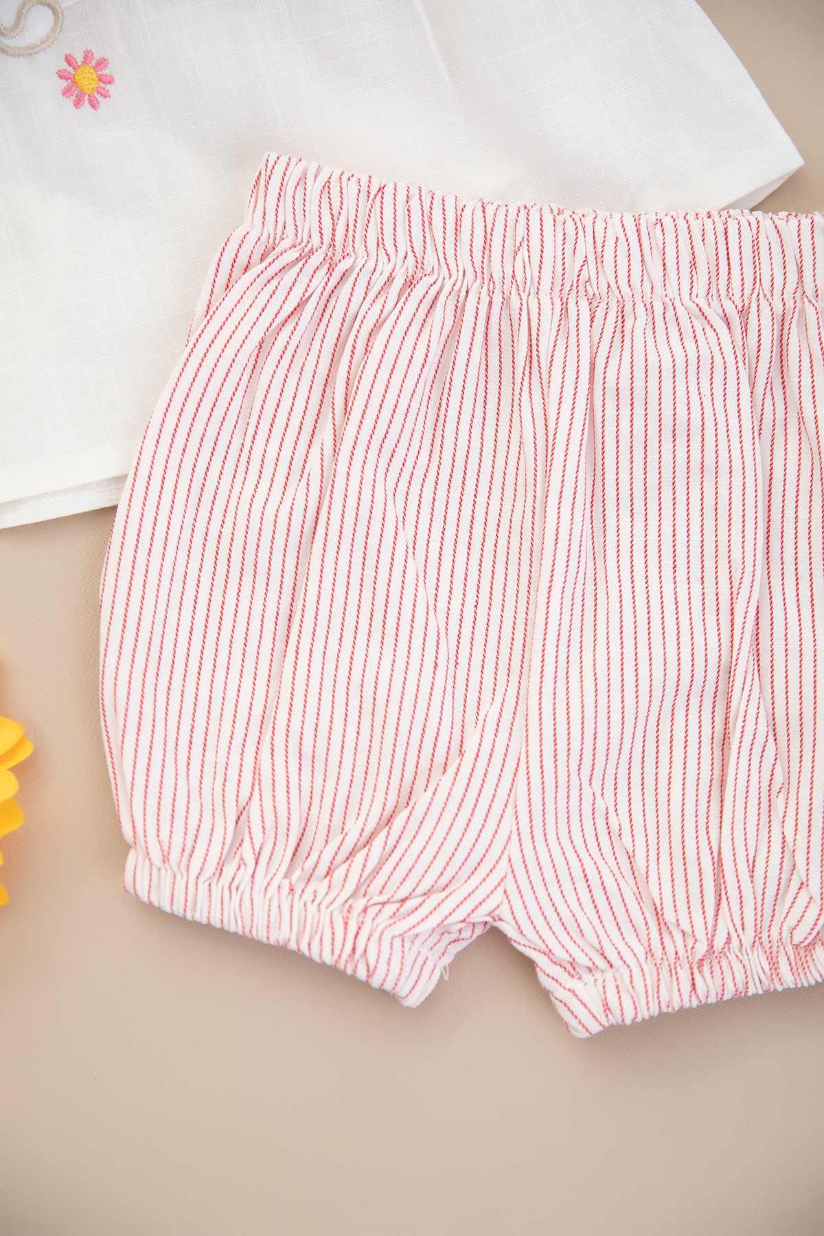 Kız Bebek Papatya Nakışlı Şortlu Takım - 0513 (6-18 Ay)