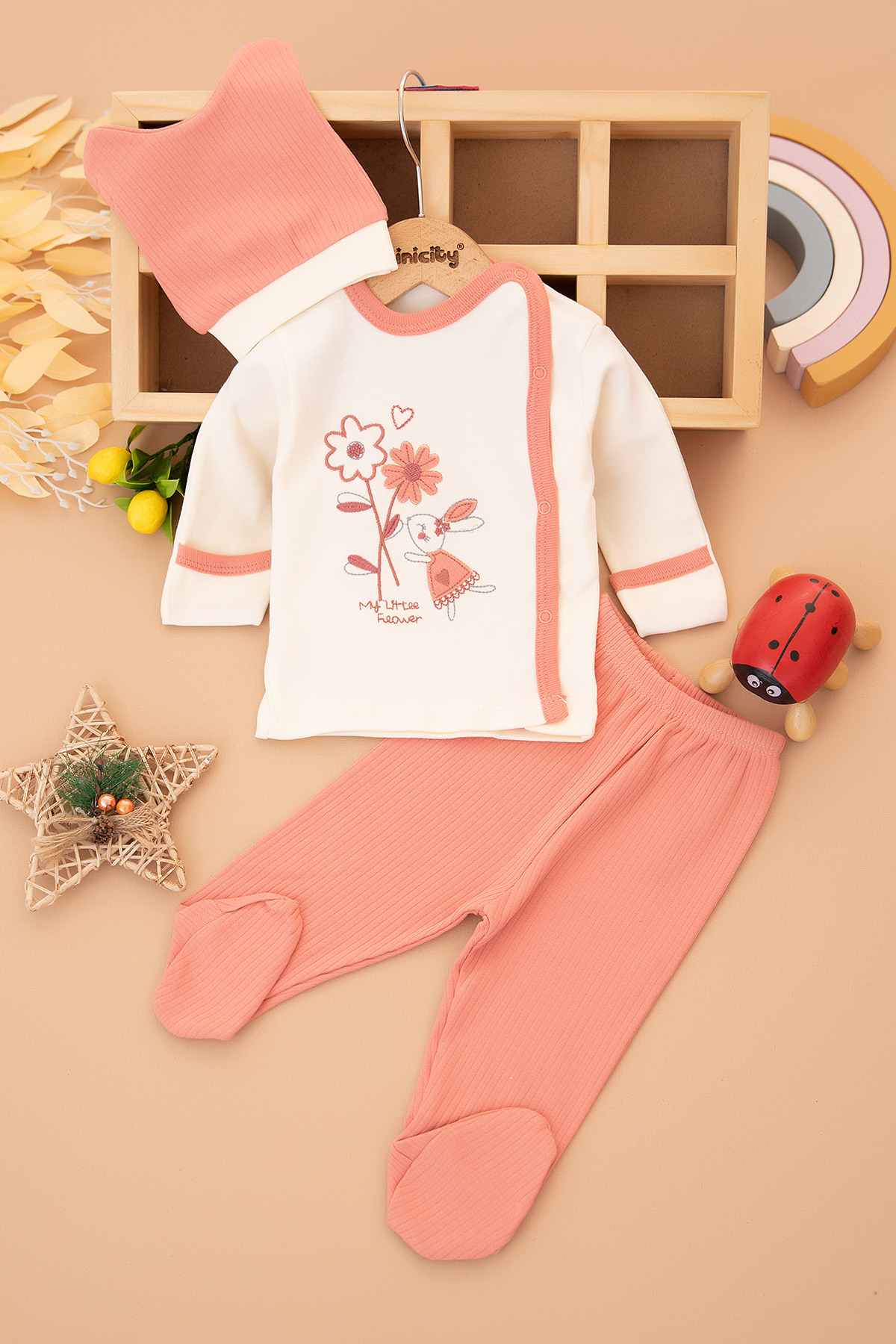 Kız Bebek Papatya Tavşan Zıbın Takımı - 9393 (0-3 Ay)