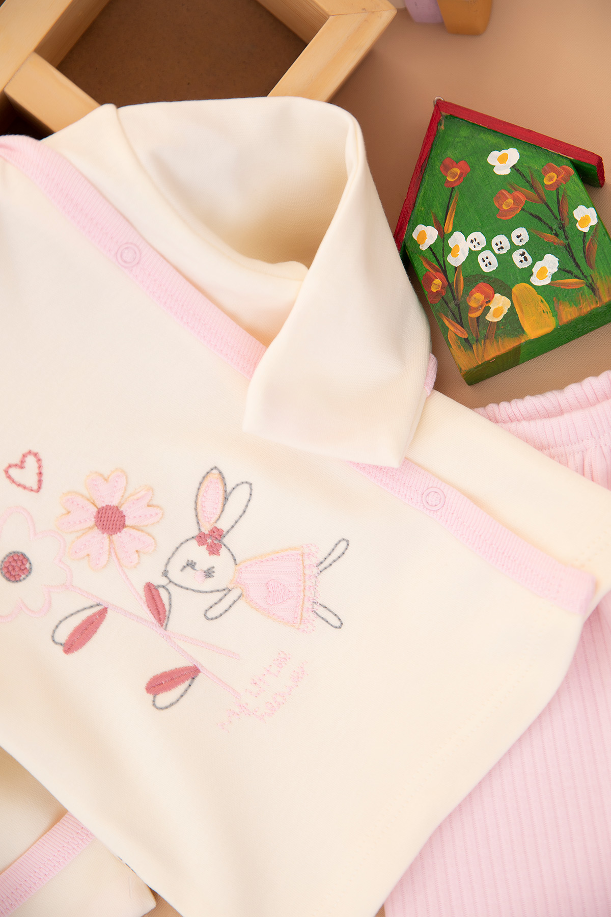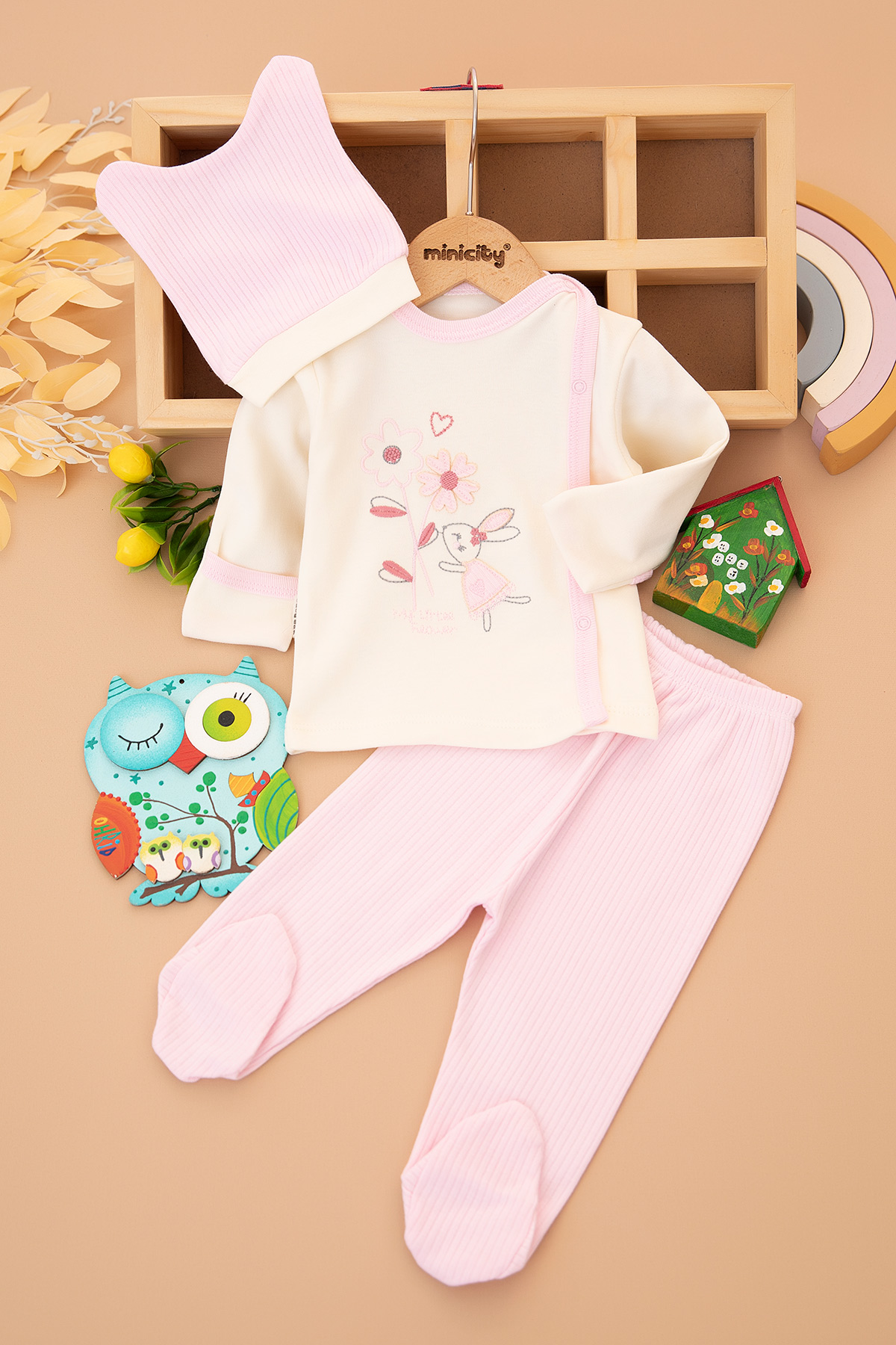 Kız Bebek Papatya Tavşan Zıbın Takımı - 9393 (0-3 Ay)