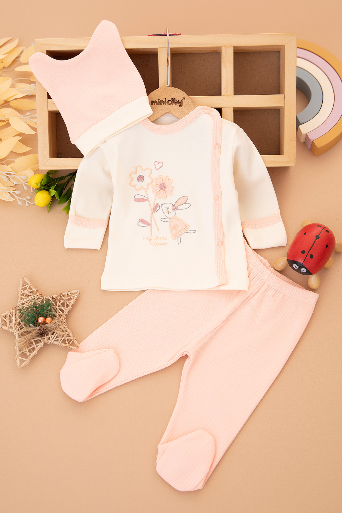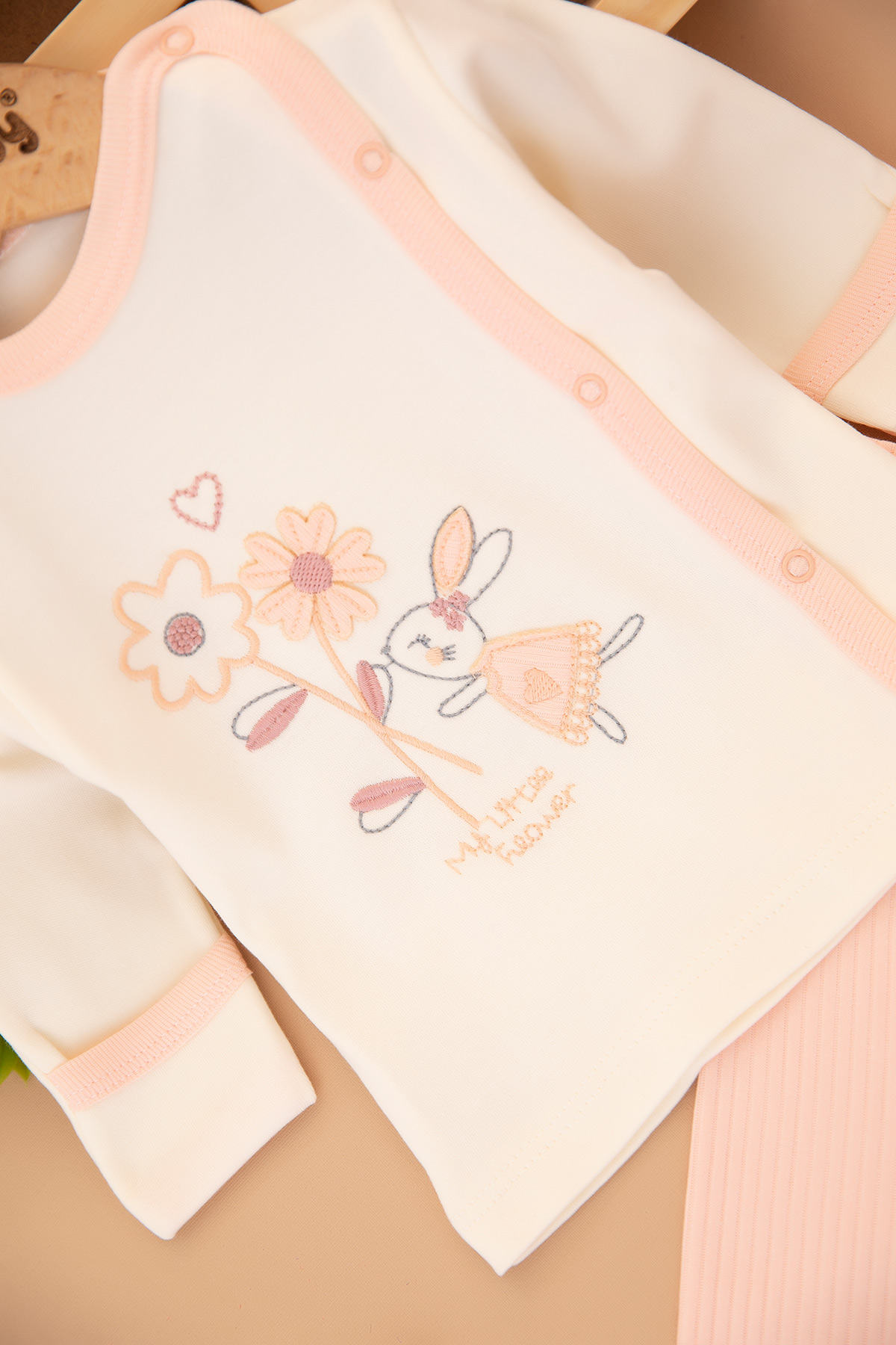 Kız Bebek Papatya Tavşan Zıbın Takımı - 9393 (0-3 Ay)