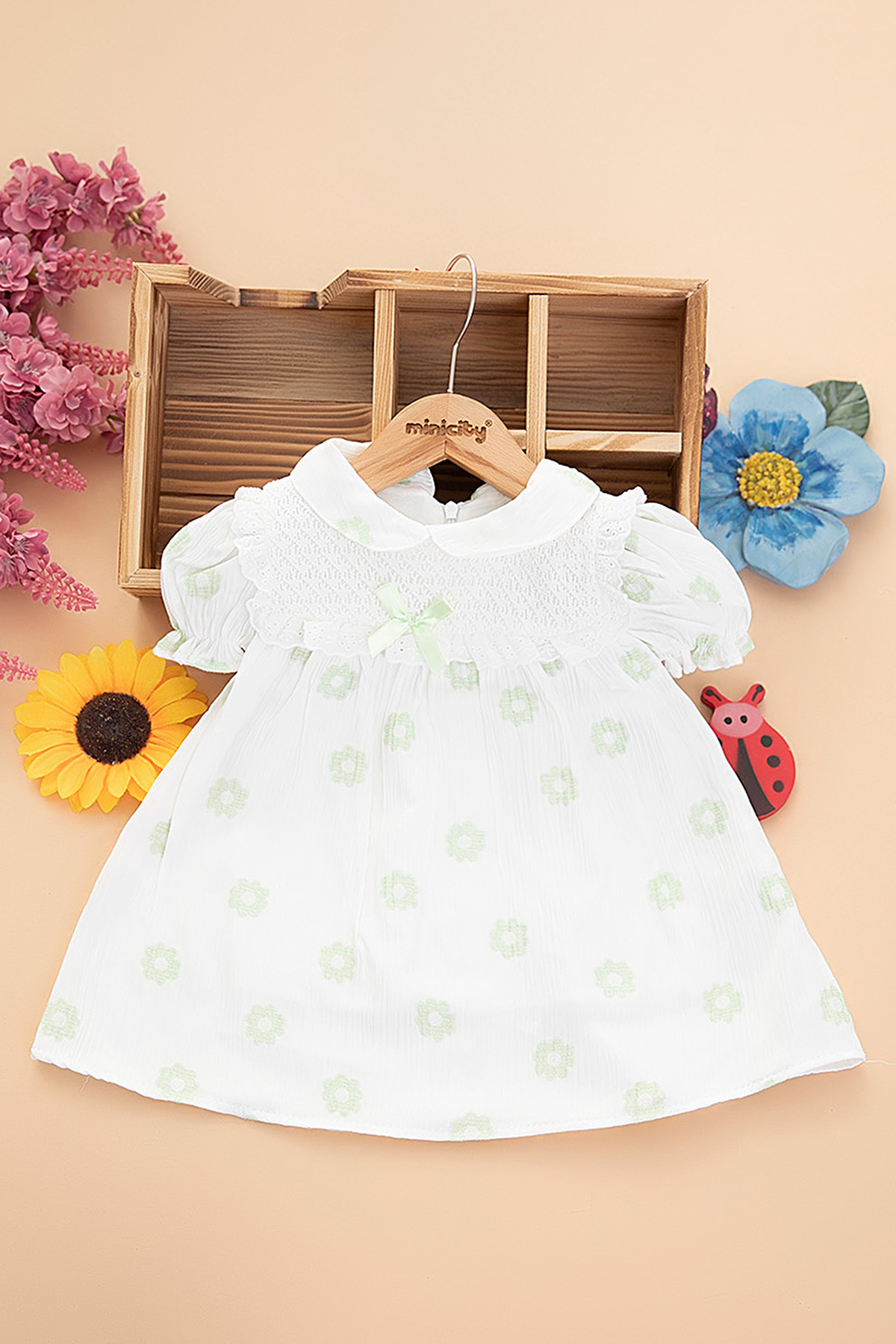 Kız Bebek Papatyalı Elbise - 3018 (9-24 Ay)