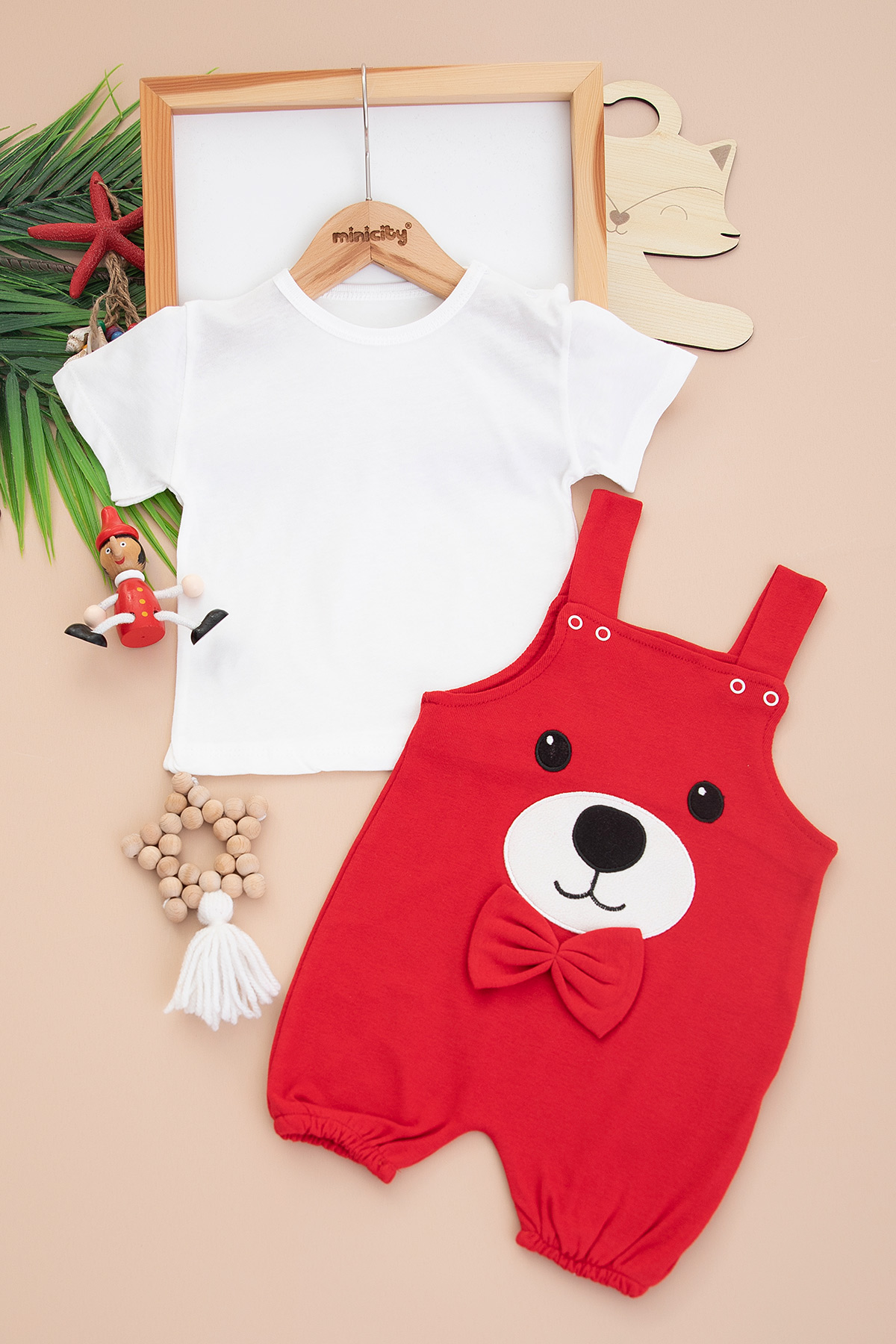 Kız Bebek Papyonlu Ayı Şort Tulum - 3262 (6-12 Ay)
