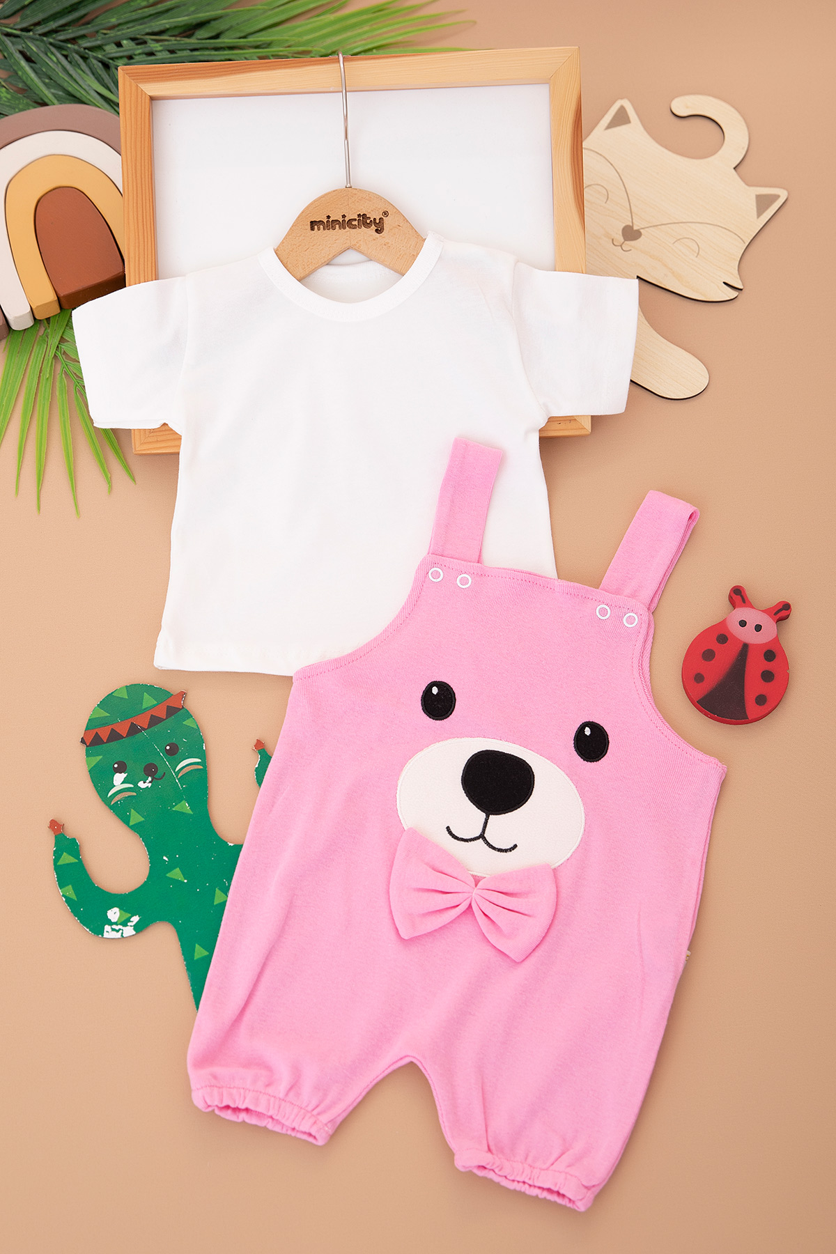 Kız Bebek Papyonlu Ayı Şort Tulum - 3262 (6-12 Ay)