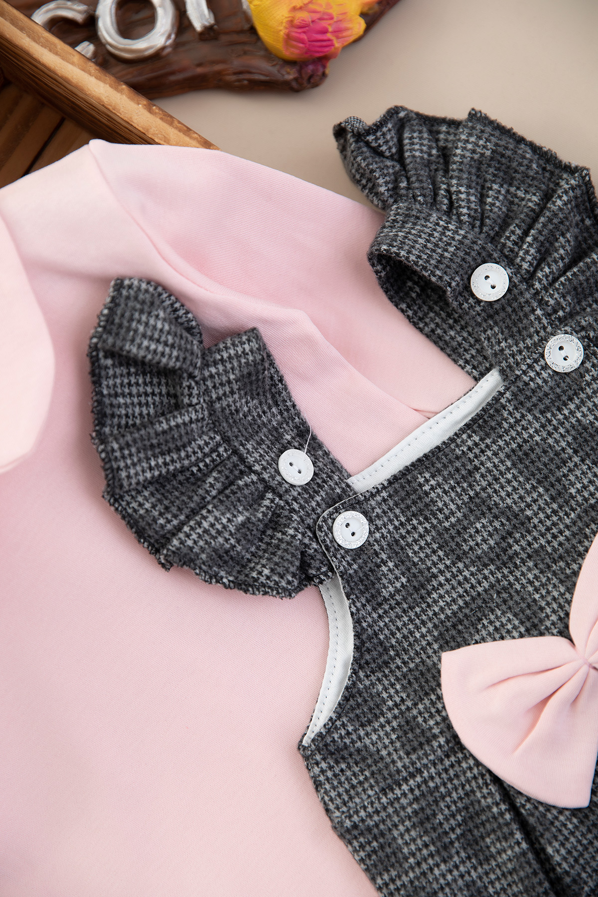 Kız Bebek Papyonlu Fırfırlı Badili Tulum - 3057 (3-9 Ay)