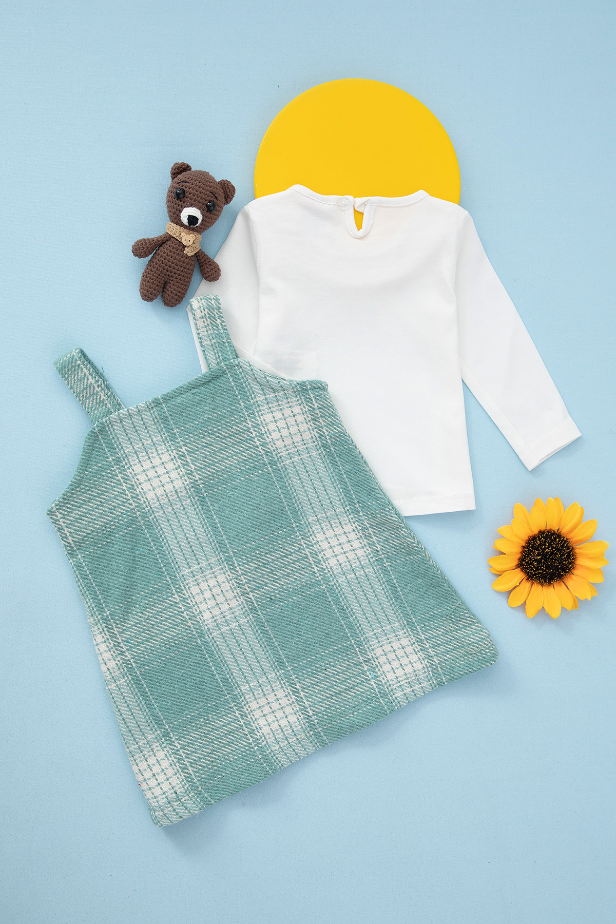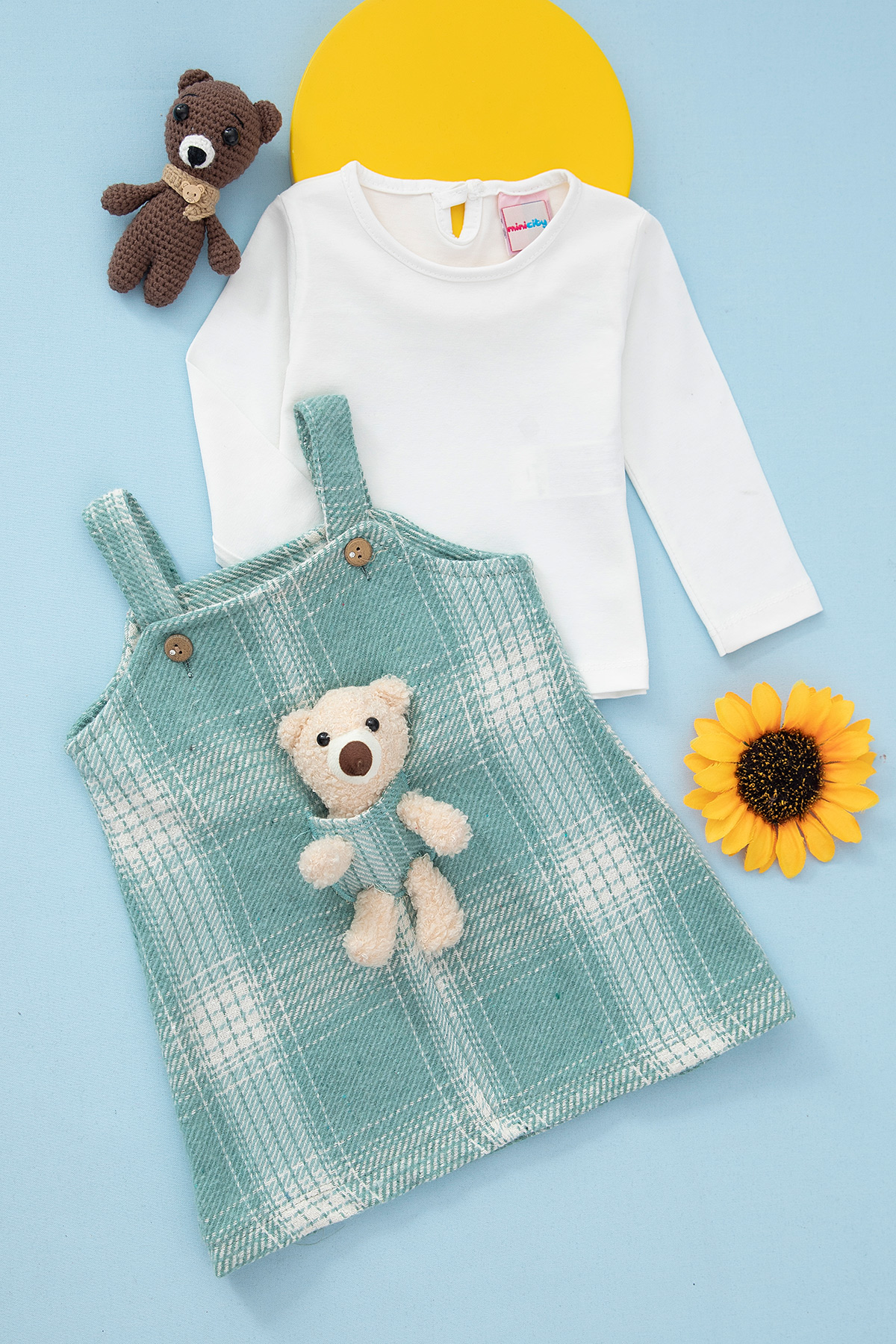 Kız Bebek Peluş Ayıcıklı Ekose Elbise - 9697 (6-18 Ay)