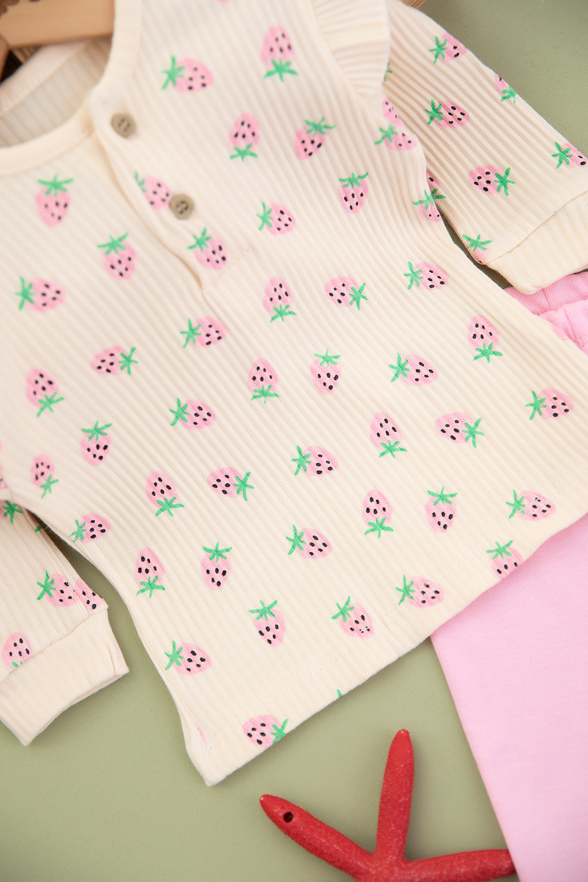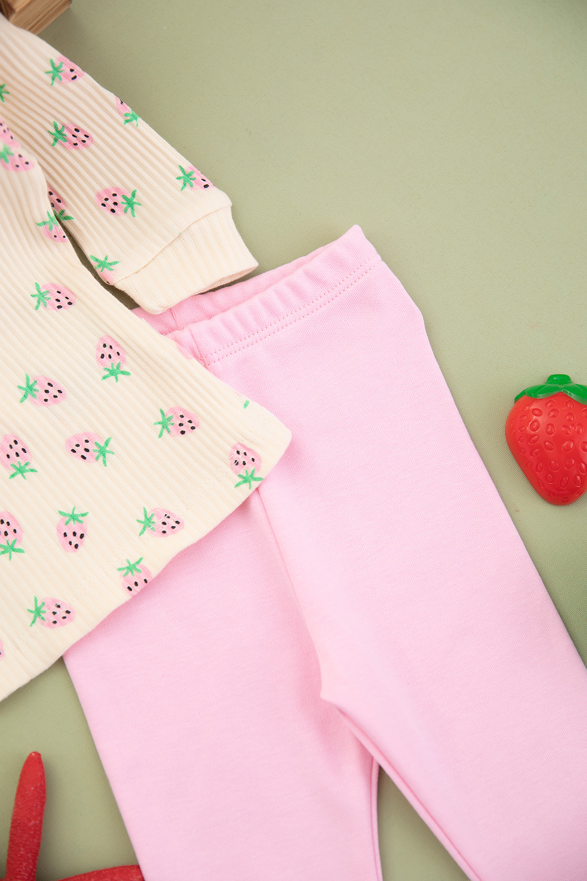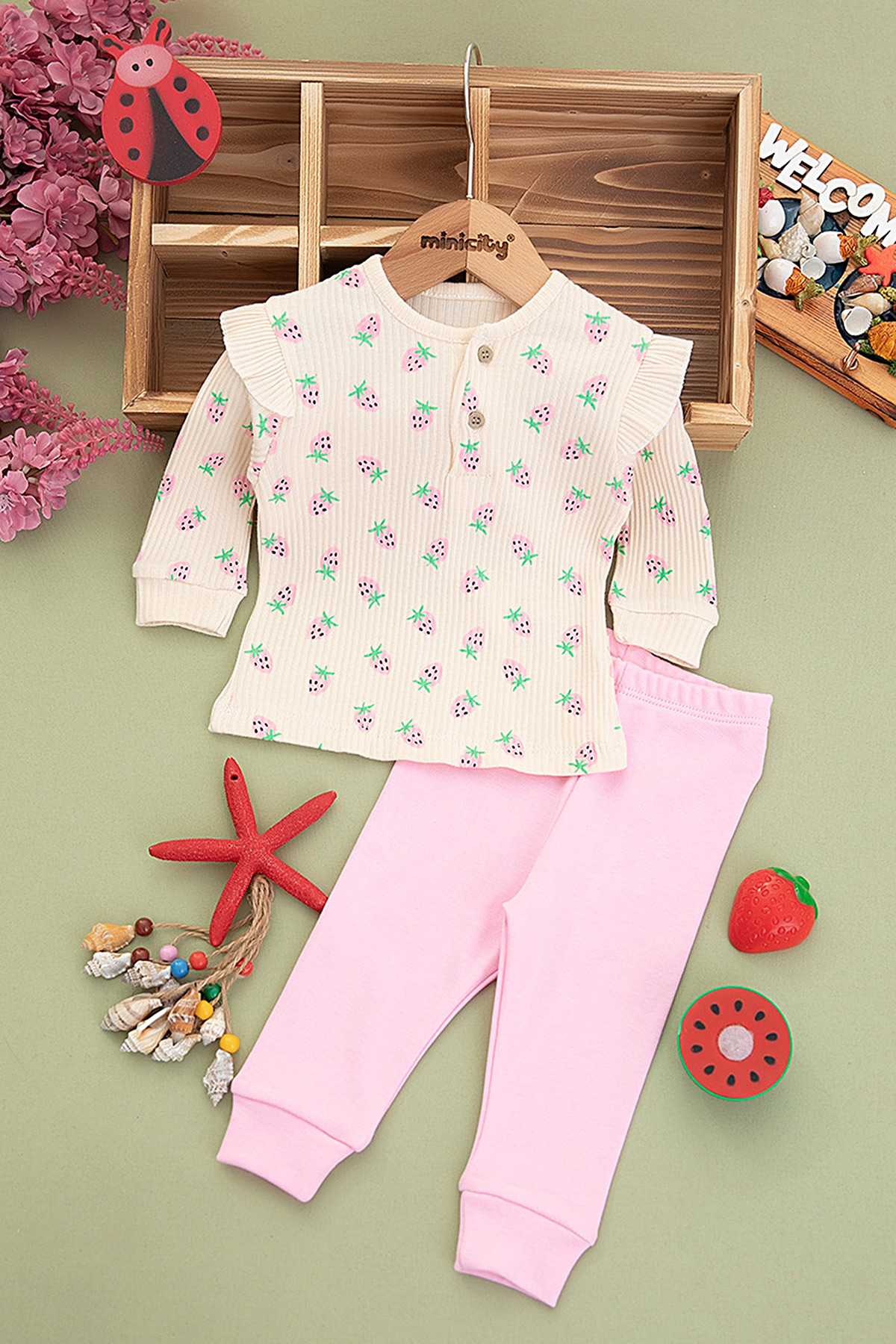 Kız Bebek Pembe Çilek Baskılı Takım - 1271 (3-12 Ay)