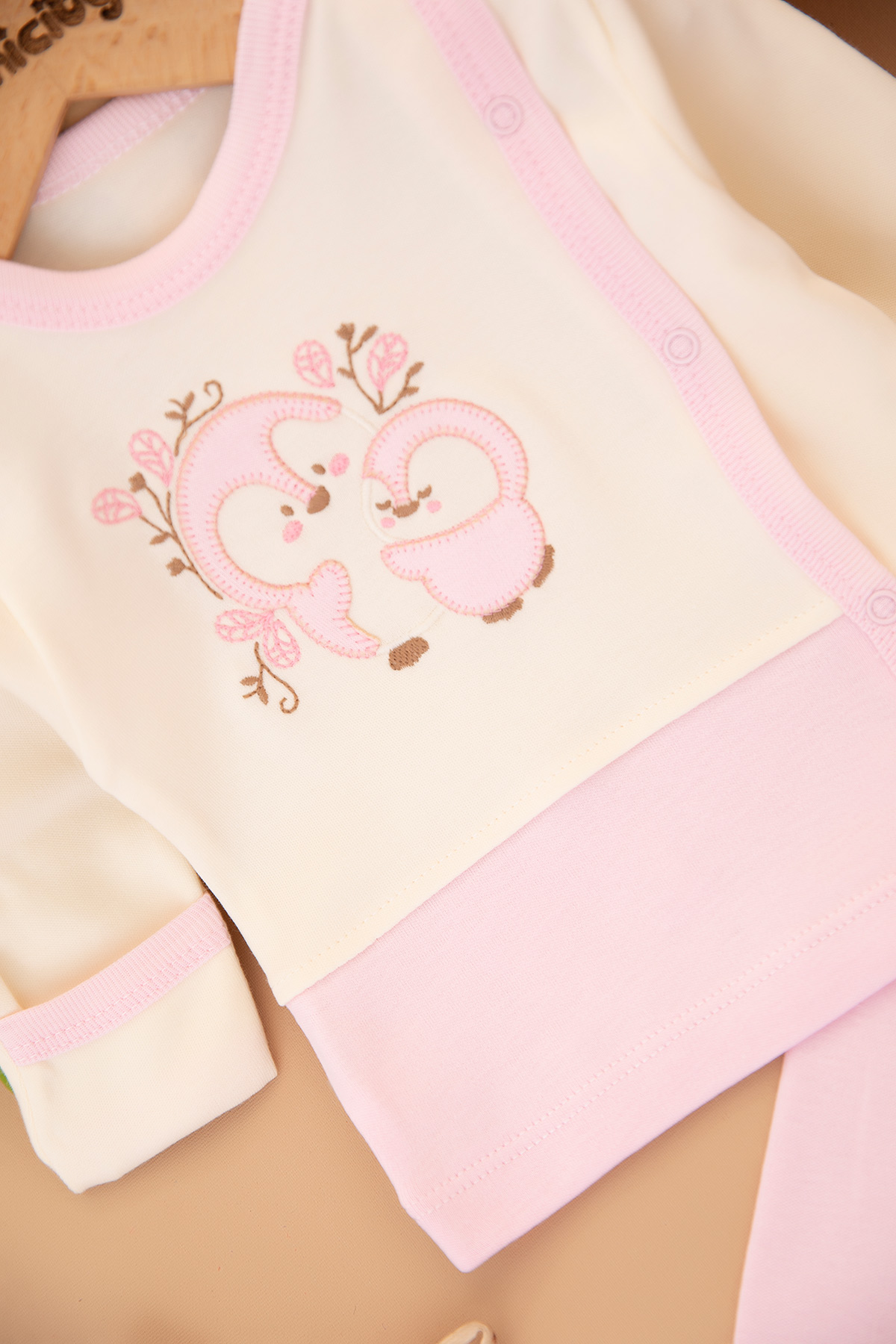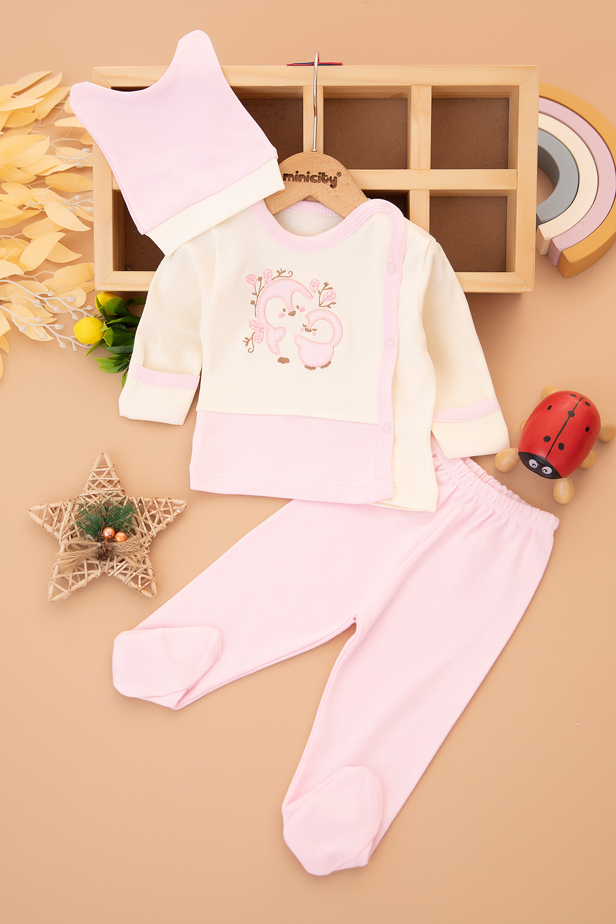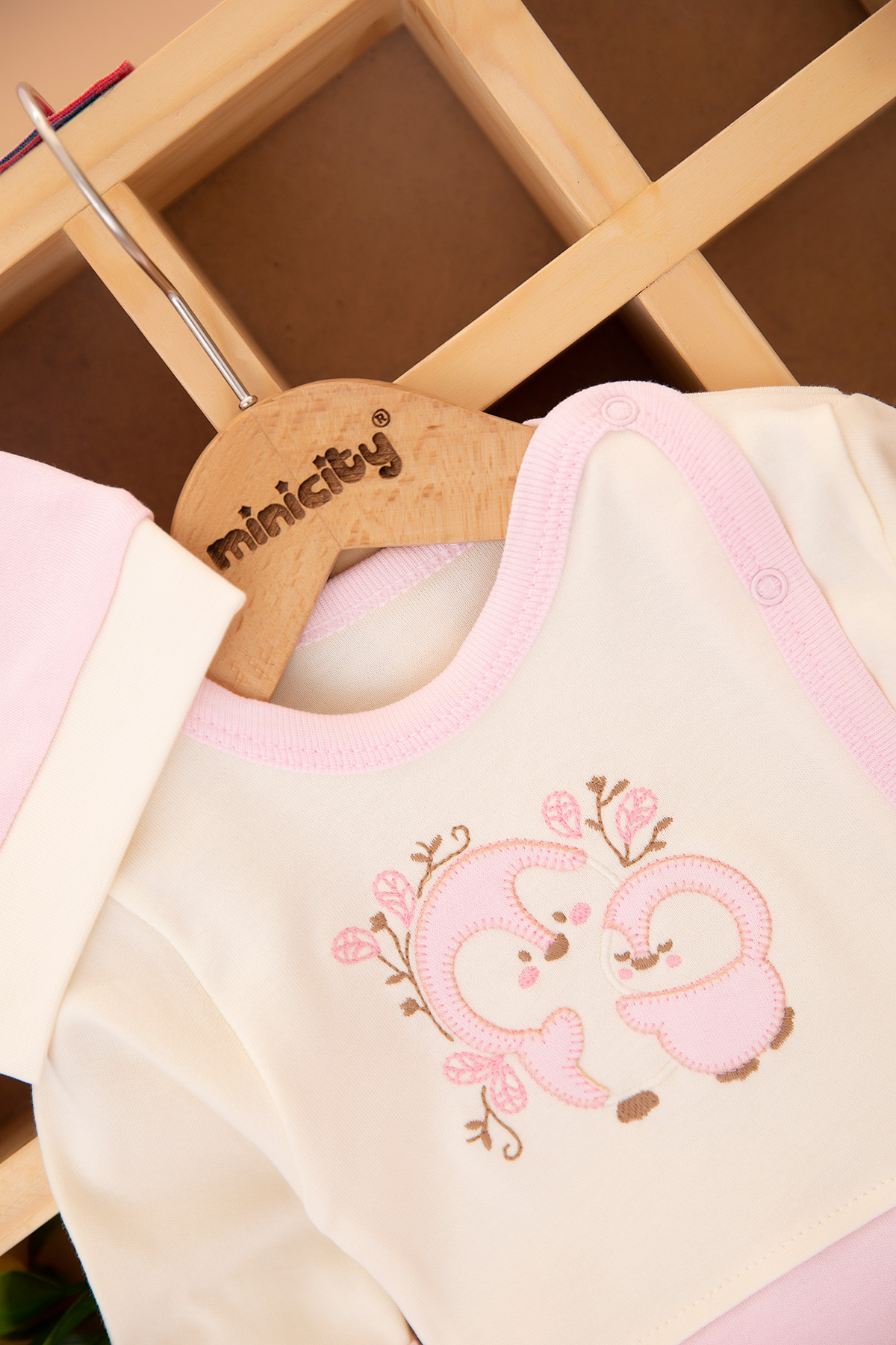Kız Bebek Penguen Nakışlı Zıbın Takımı - 9361 (0-3 Ay)