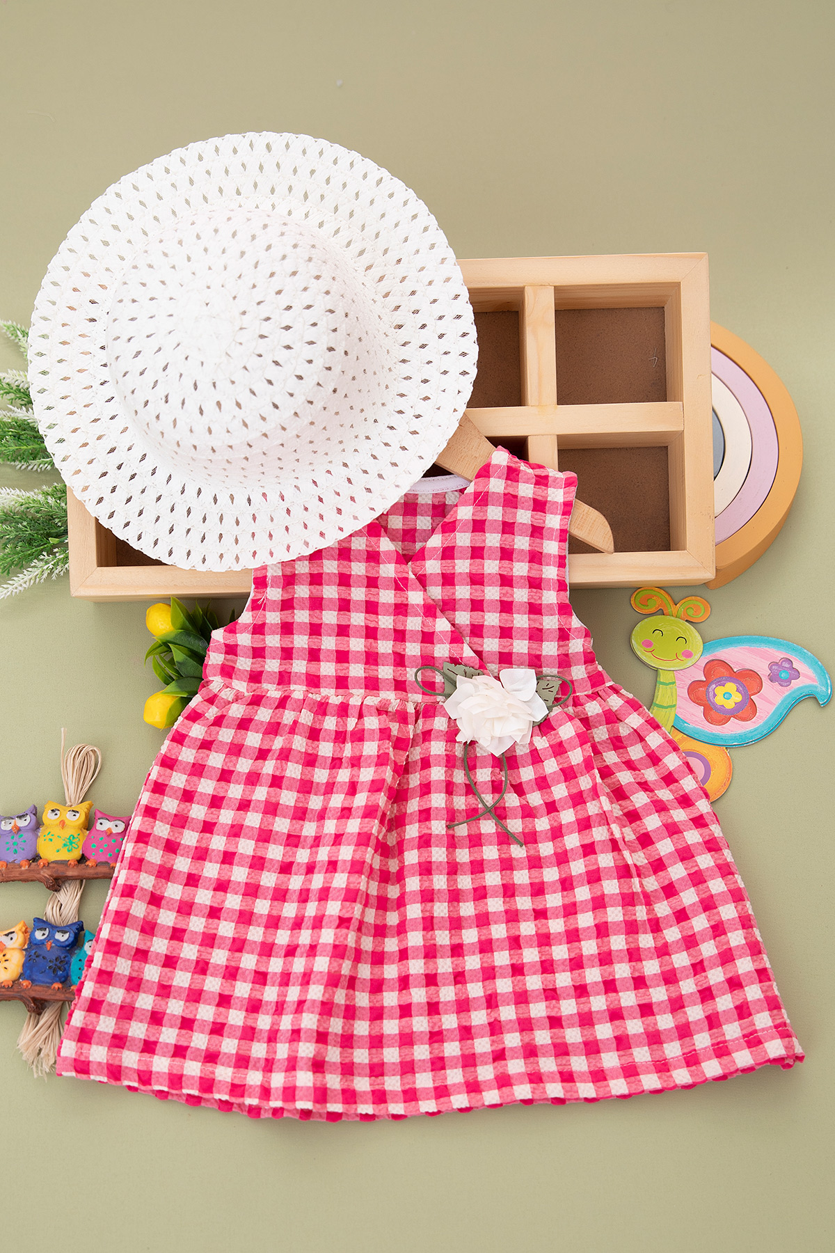 Kız Bebek Pitikare Desenli Aksesuarlı Elbise - 60149 (9-24 Ay)