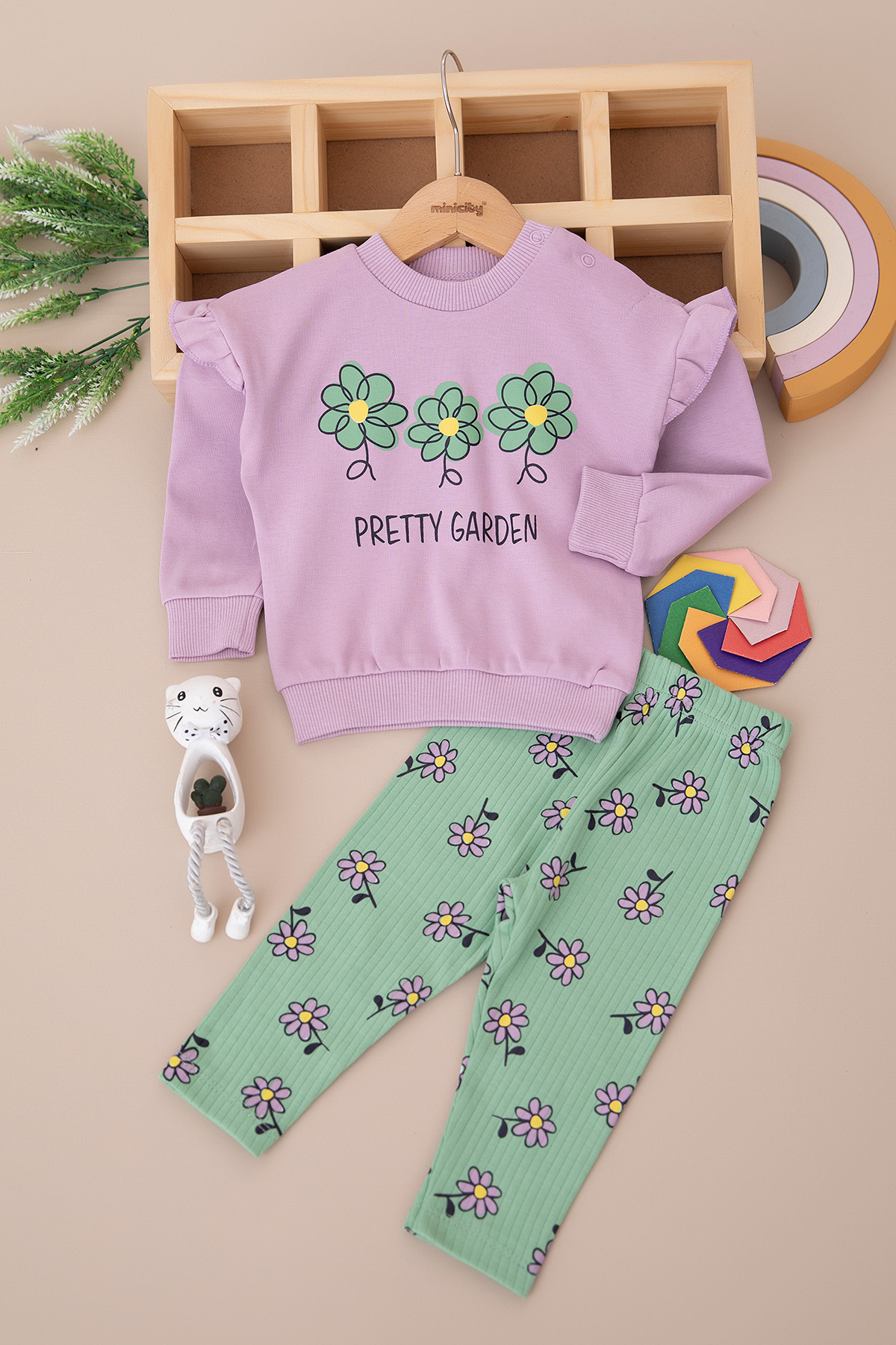 Kız Bebek Pretty Gargen Baskılı Takım - 24047 (9-24 Ay)