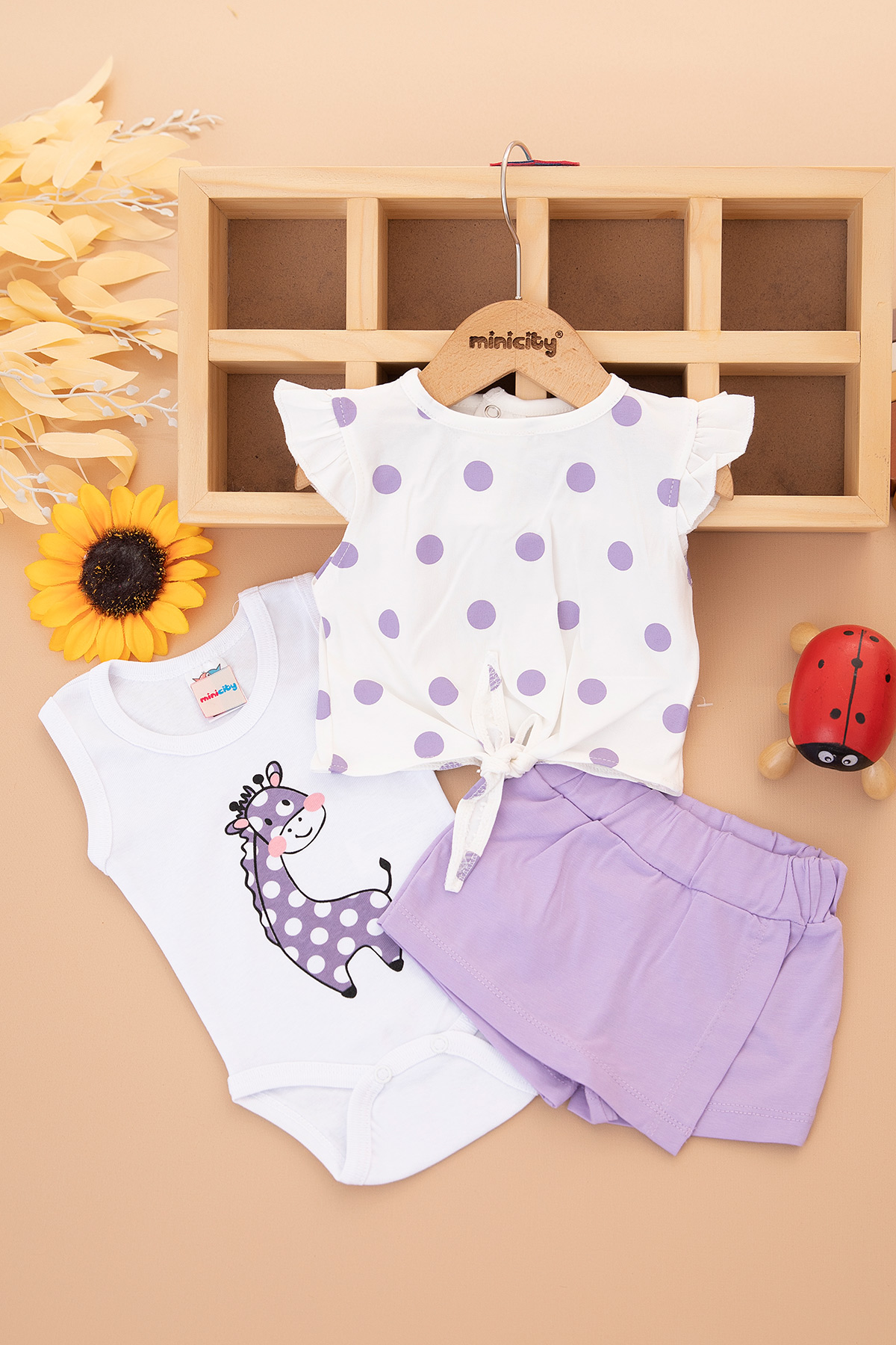 Kız Bebek Puan Baskılı Badili Şortlu Takım - 25535 (3-12 Yaş)