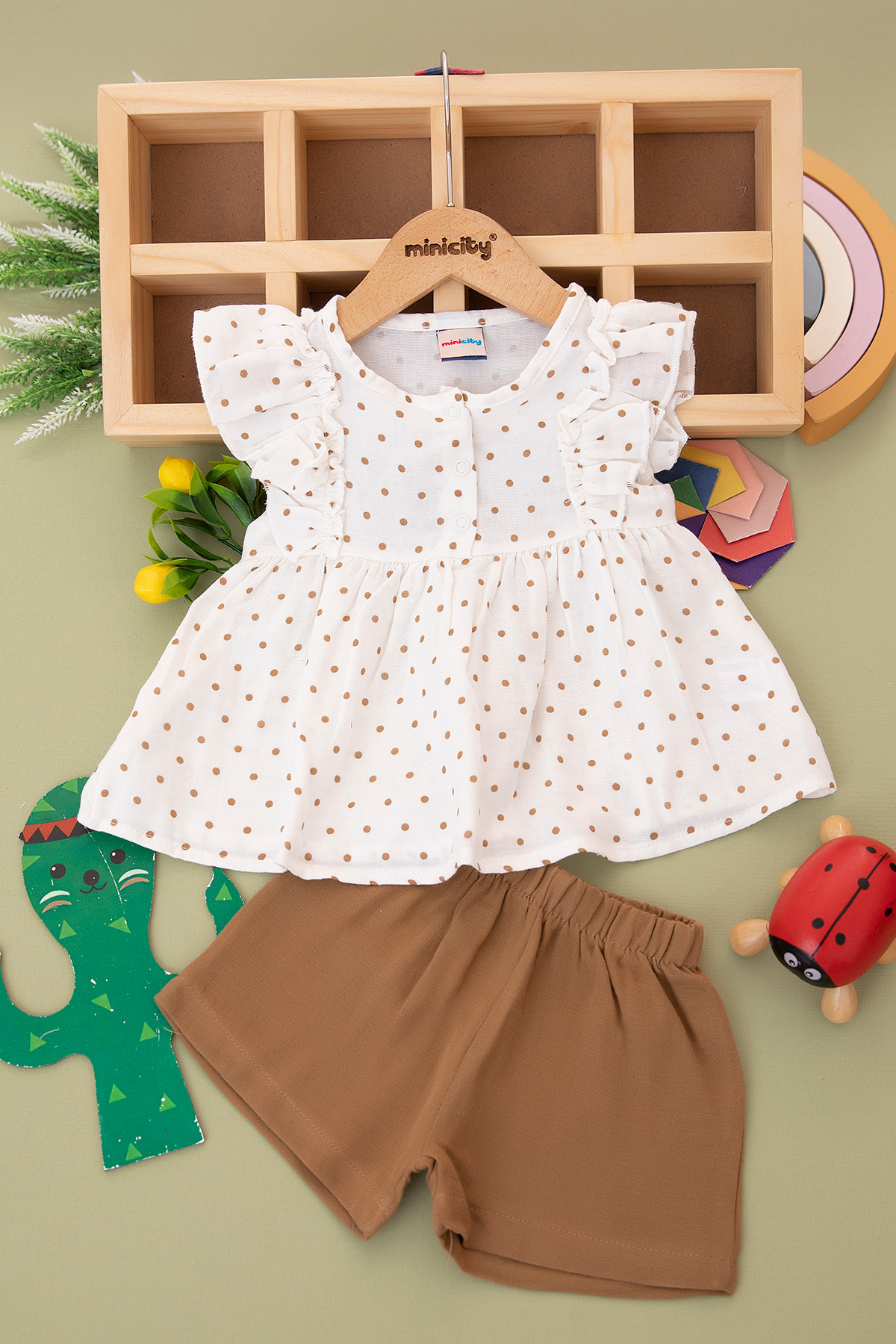 Kız Bebek Puan Baskılı Şortlu Takım - 24132 (9-24 Ay)