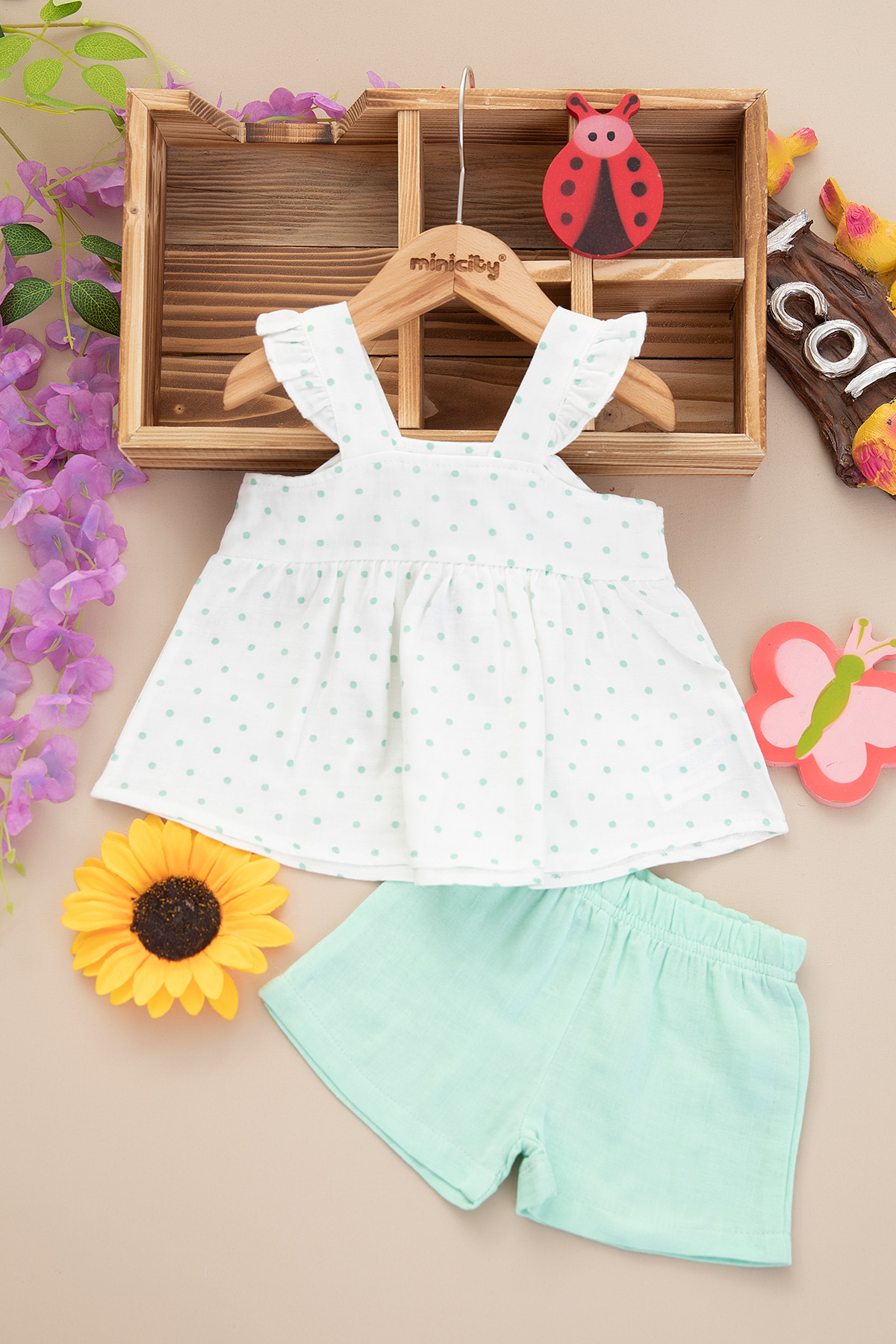 Kız Bebek Puan Desenli Şortlu Takım - 25589 (3-12 Ay)