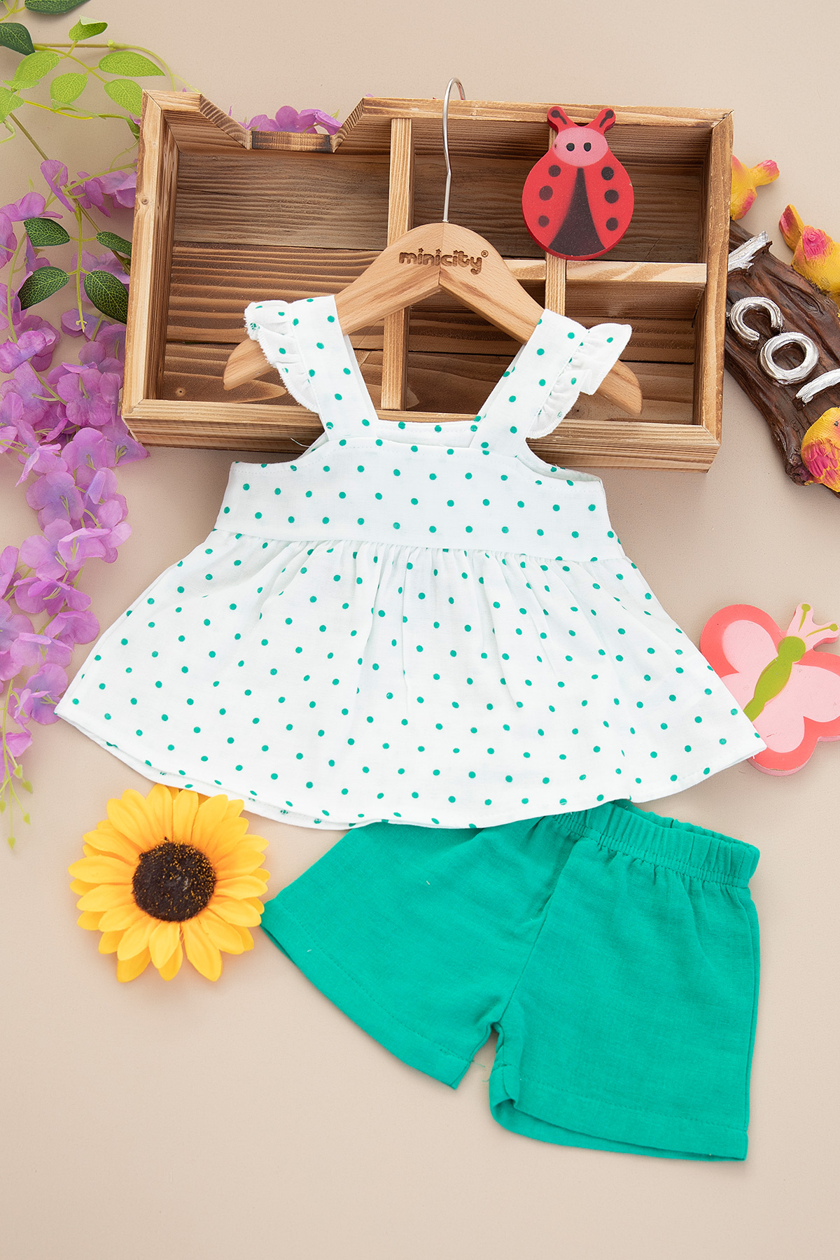 Kız Bebek Puan Desenli Şortlu Takım - 25589 (3-12 Ay)