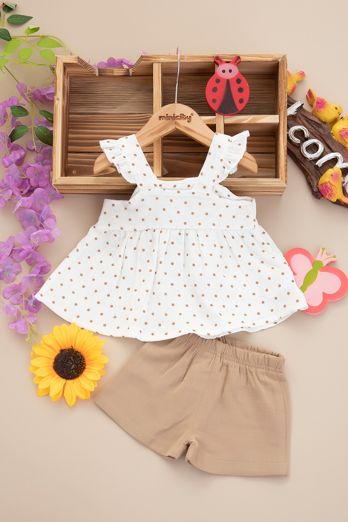 Kız Bebek Puan Desenli Şortlu Takım - 25589 (3-12 Ay)