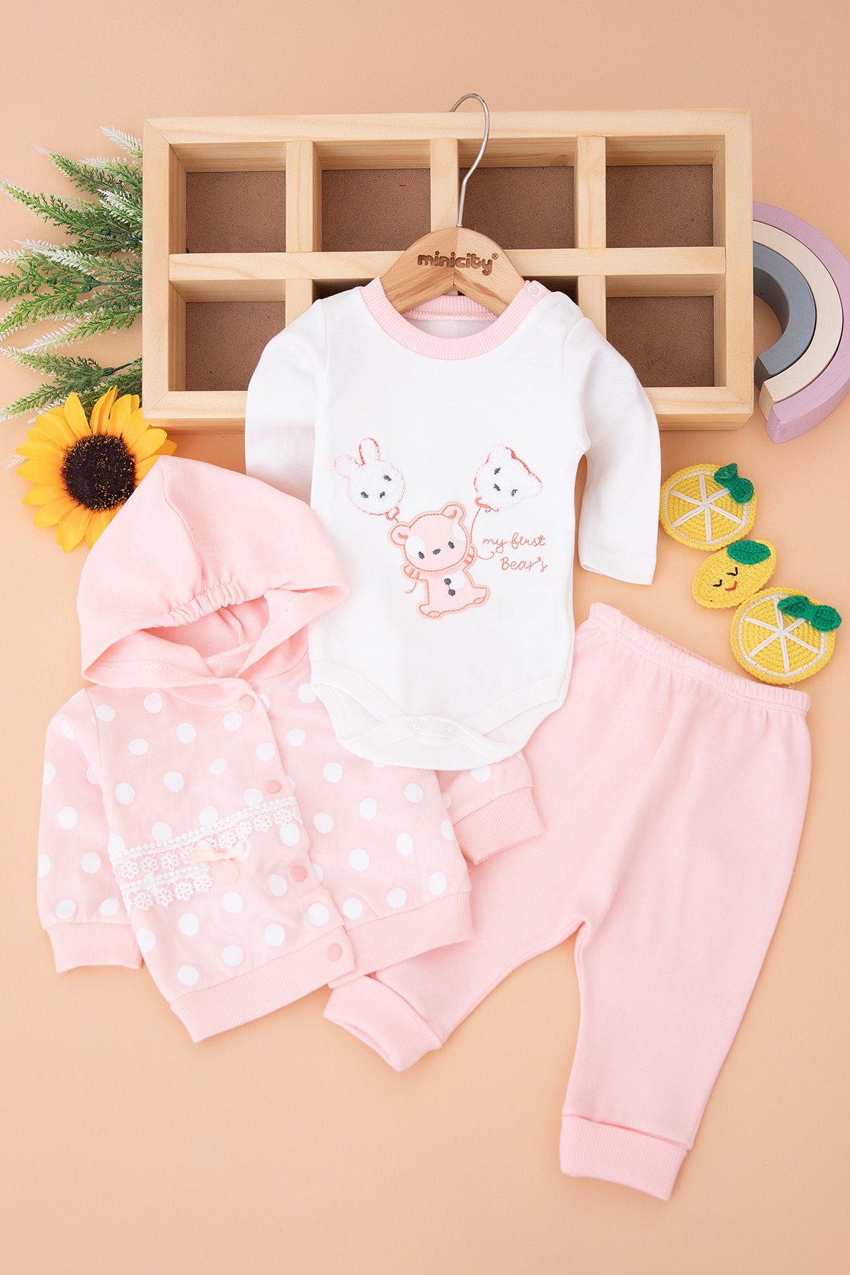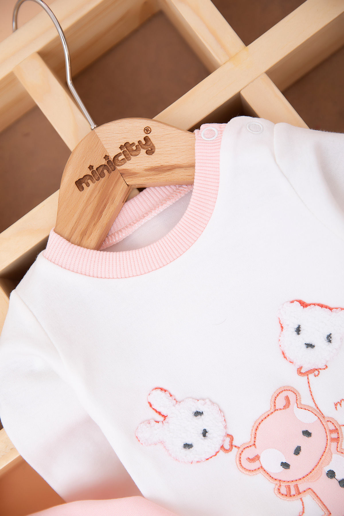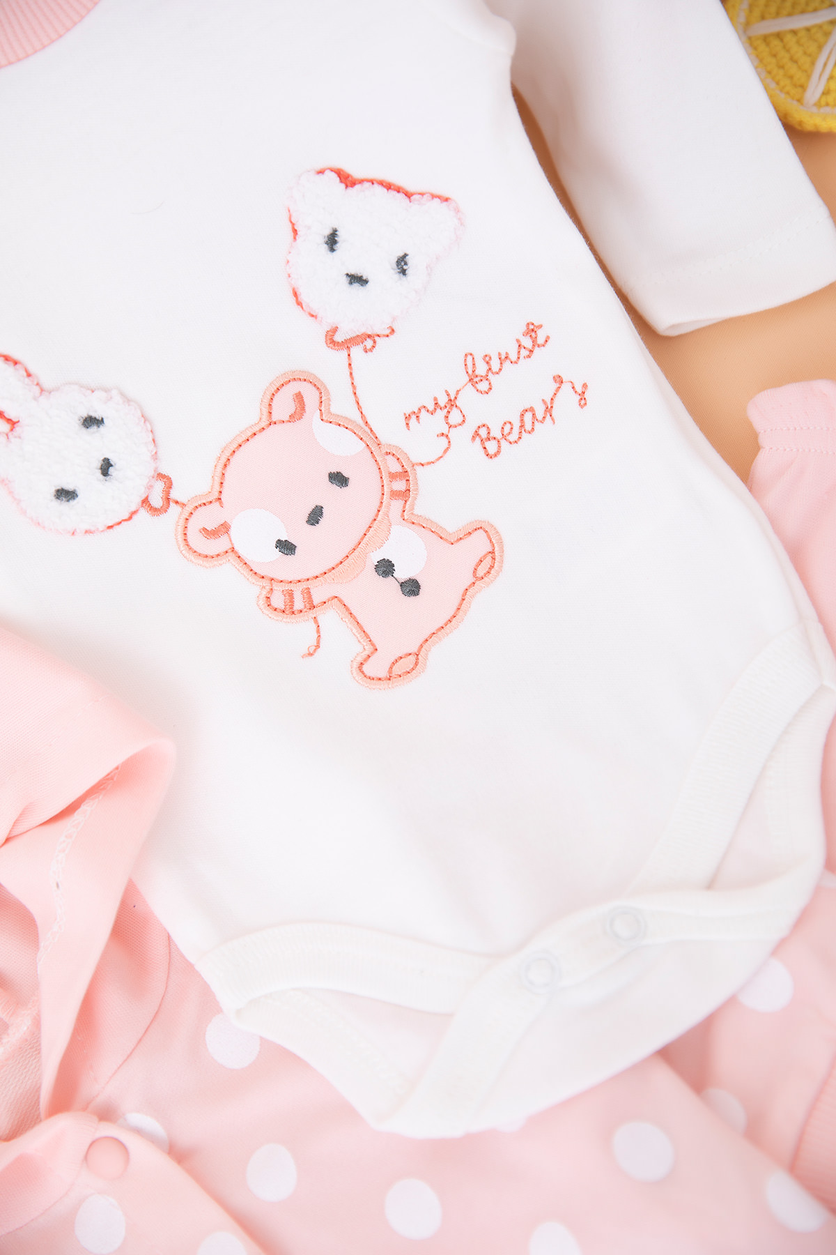 Kız Bebek Puanlı Ayıcık Nakışlı Üçlü Takım - 1913 (0-9 Ay)