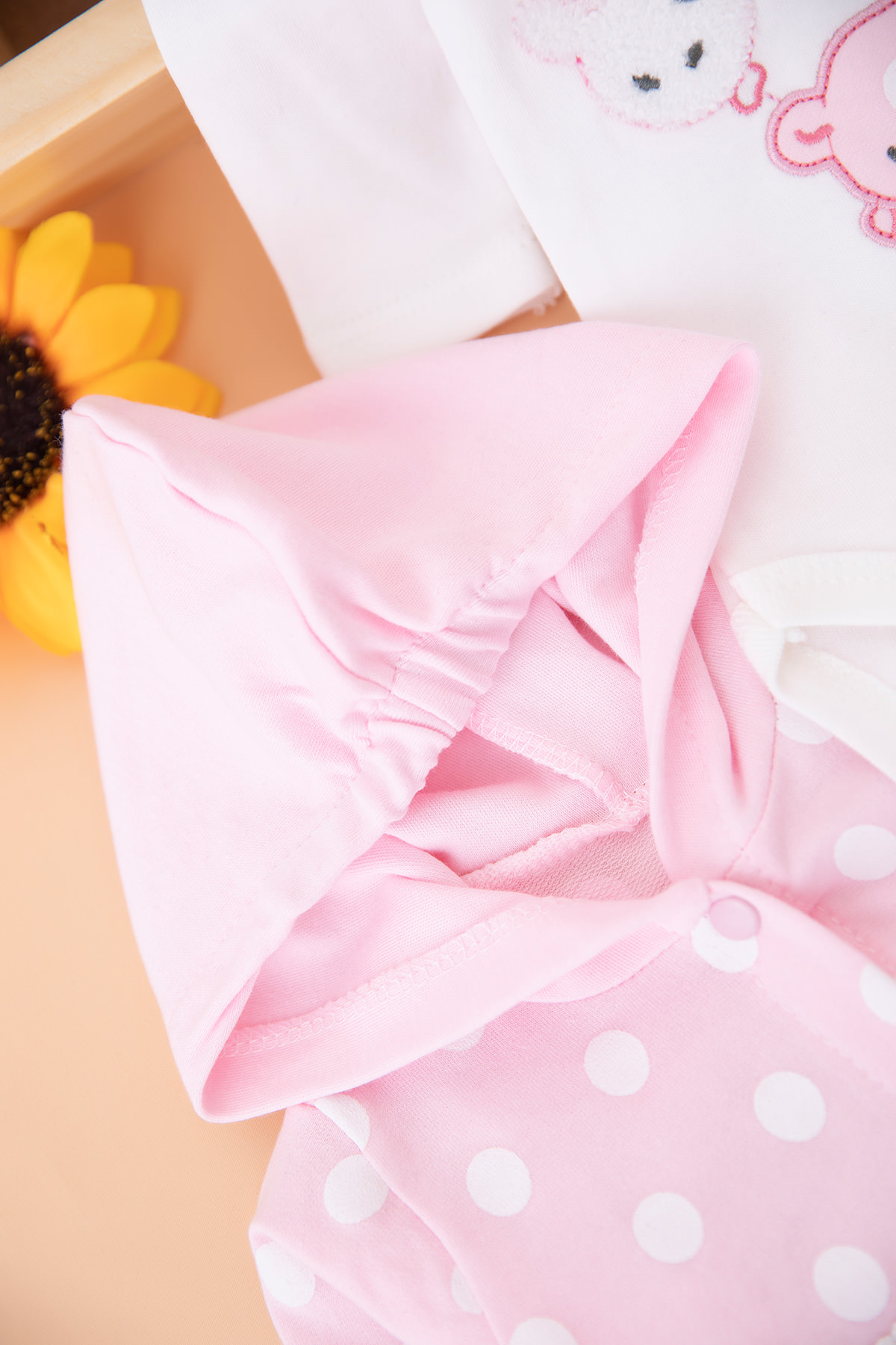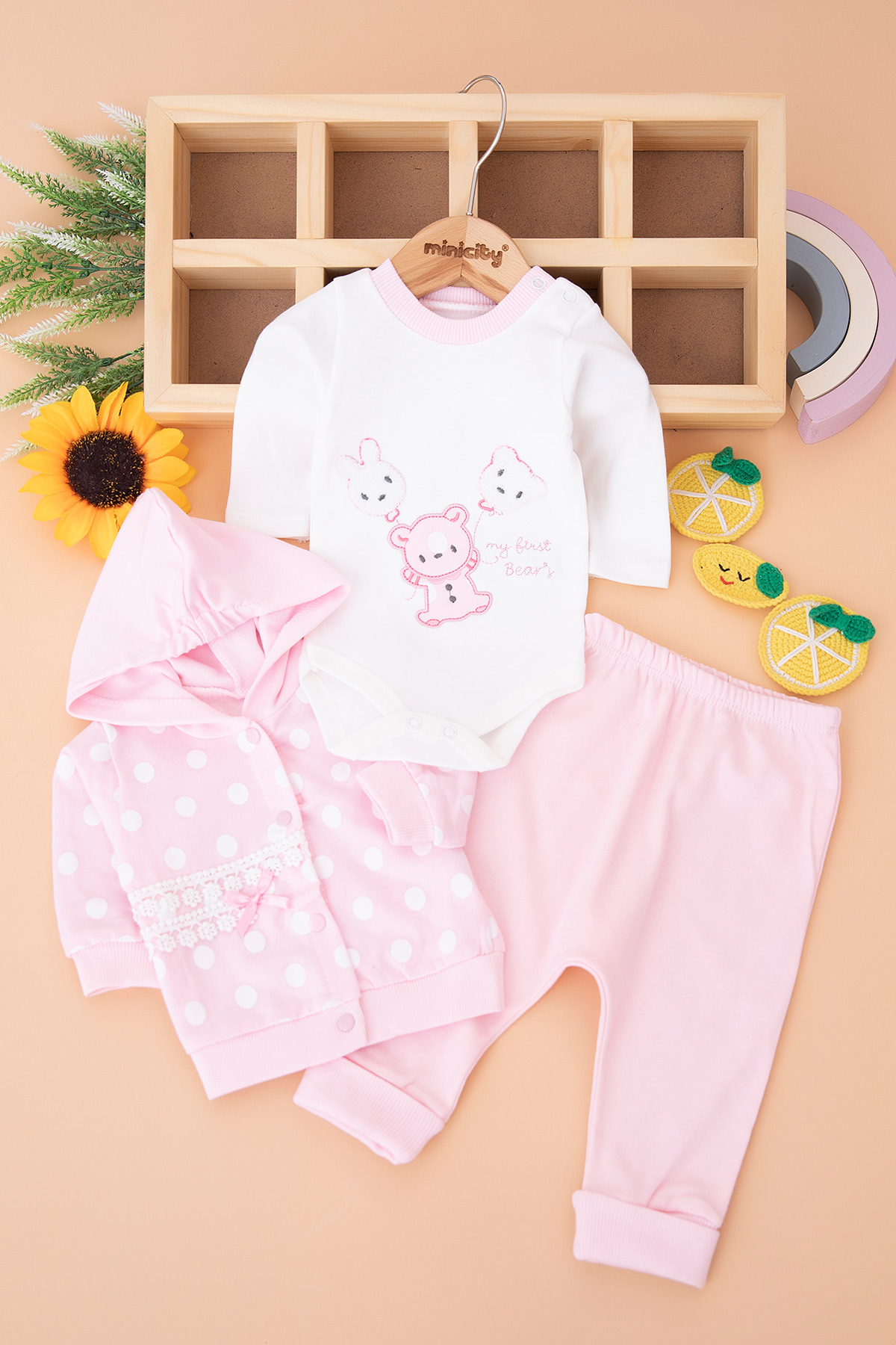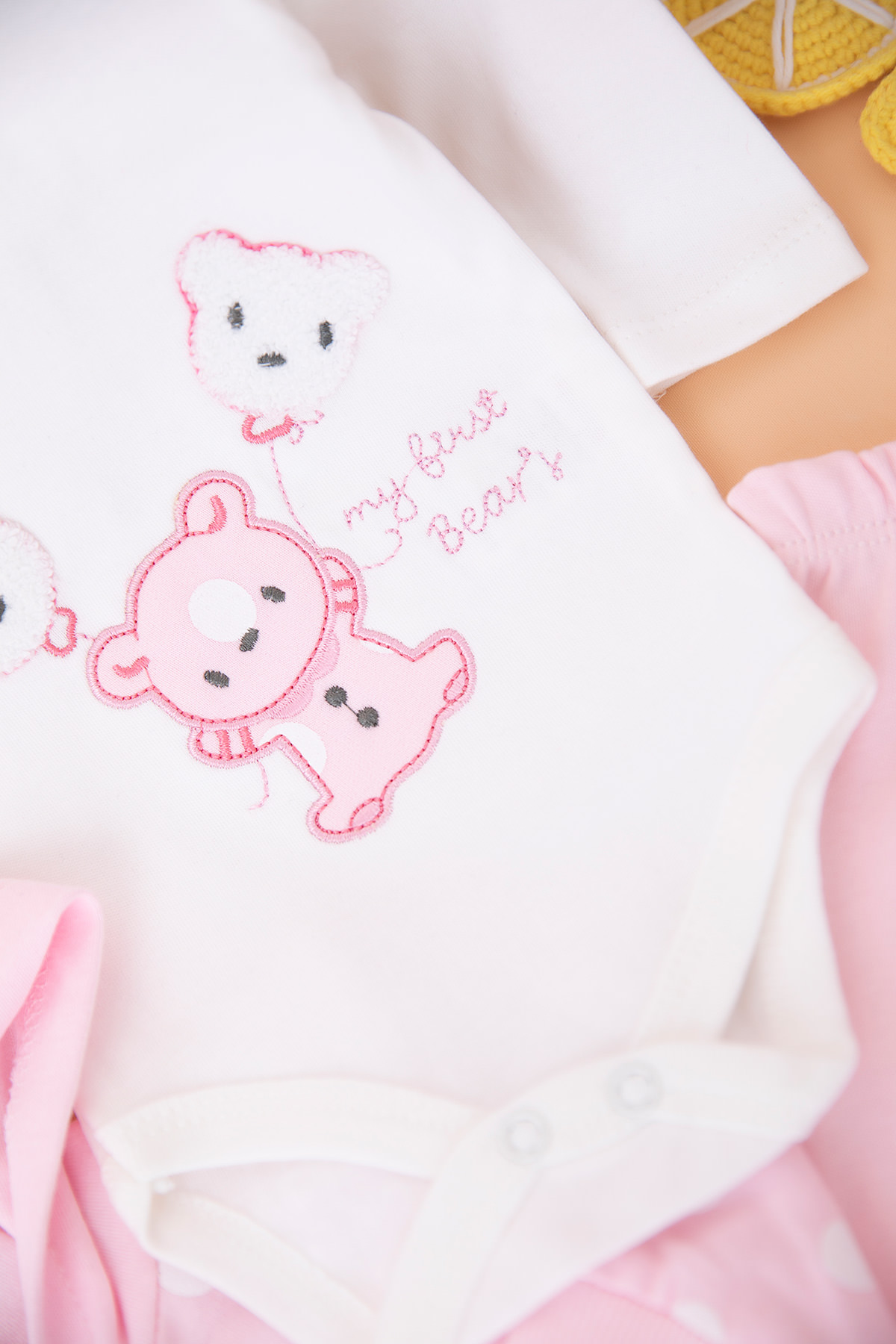 Kız Bebek Puanlı Ayıcık Nakışlı Üçlü Takım - 1913 (0-9 Ay)