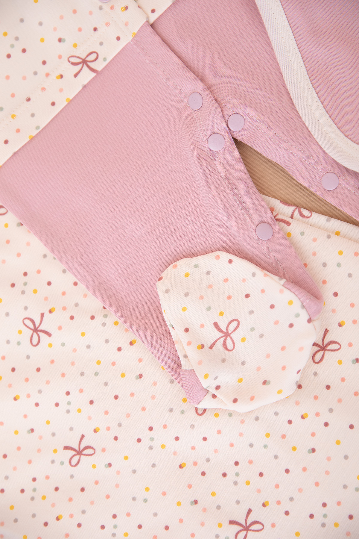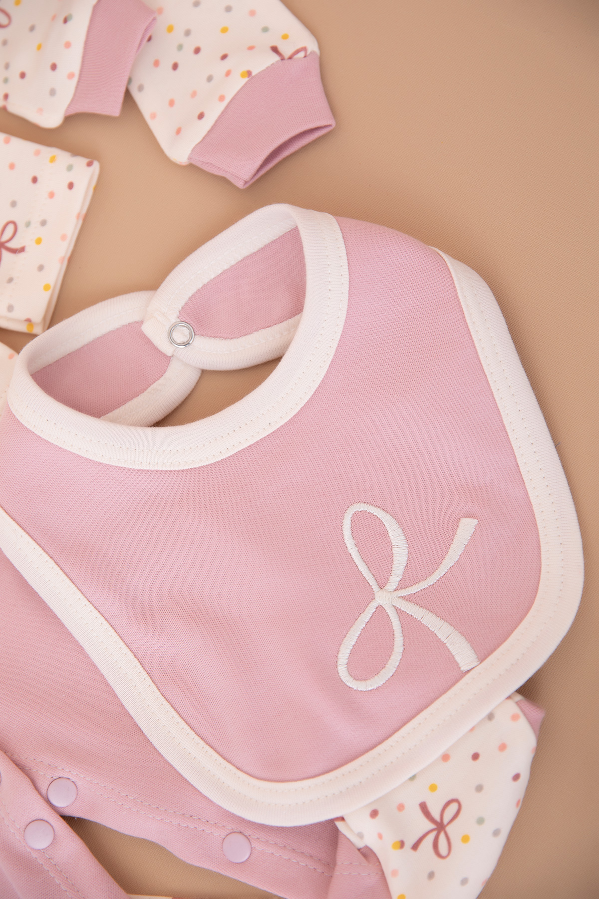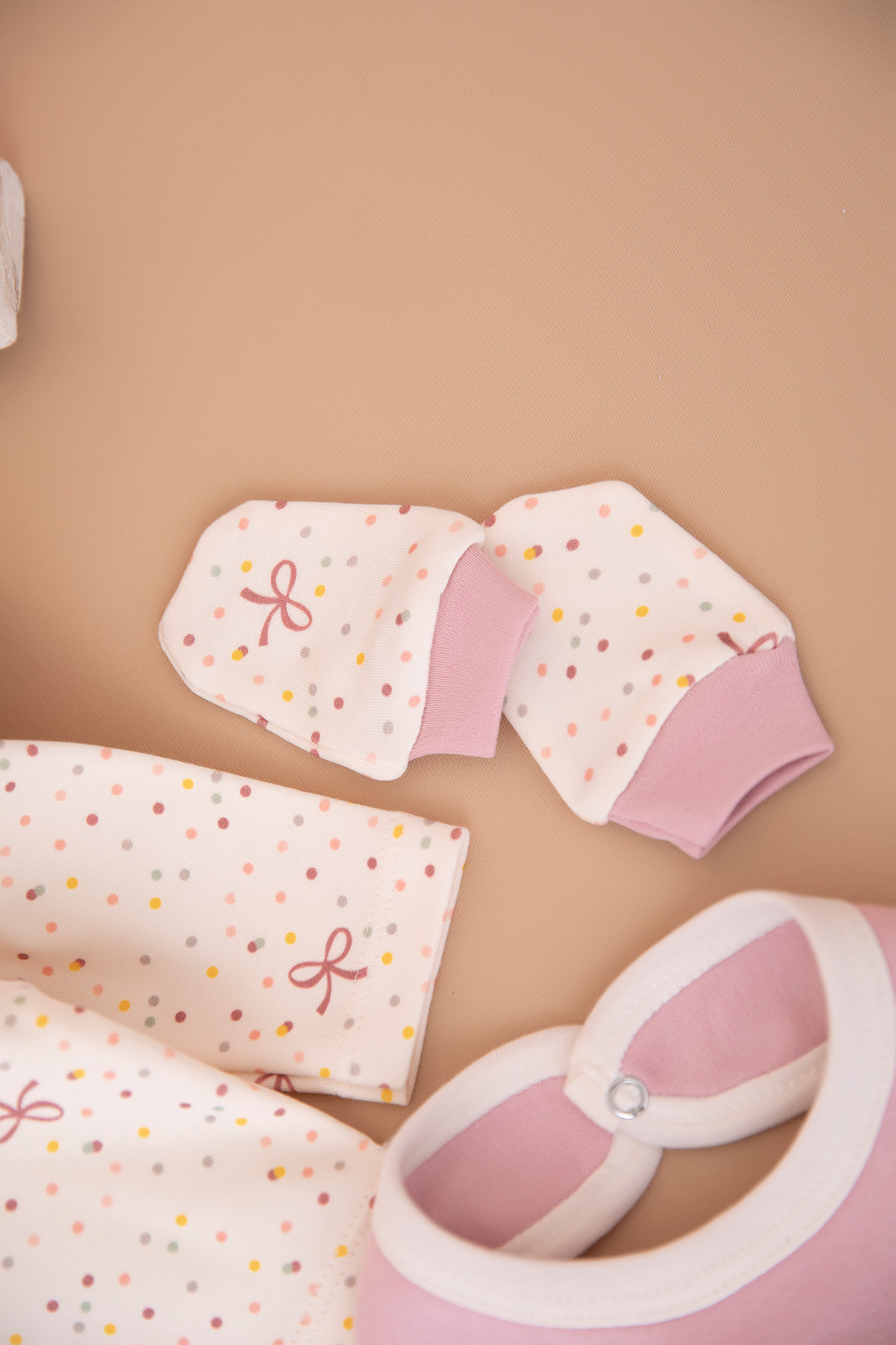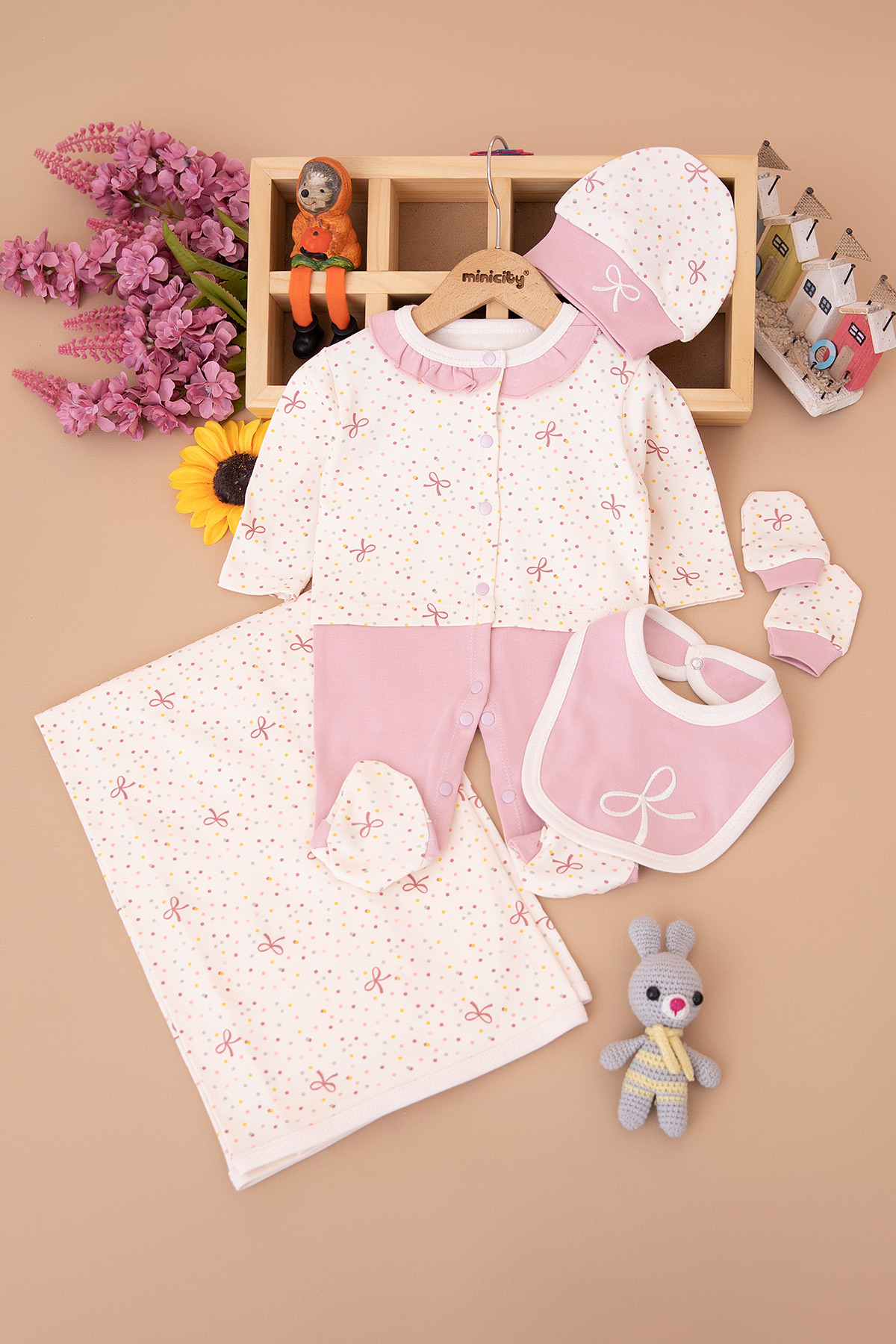 Kız Bebek Puanlı Fiyonk Baskılı 5 Li Tulum Set -237 (0-3 Ay)