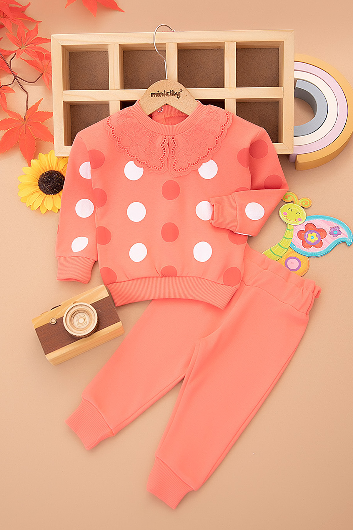 Kız Bebek Puanlı Yaka Dantelli Takım - 24044 (9-24 Ay)