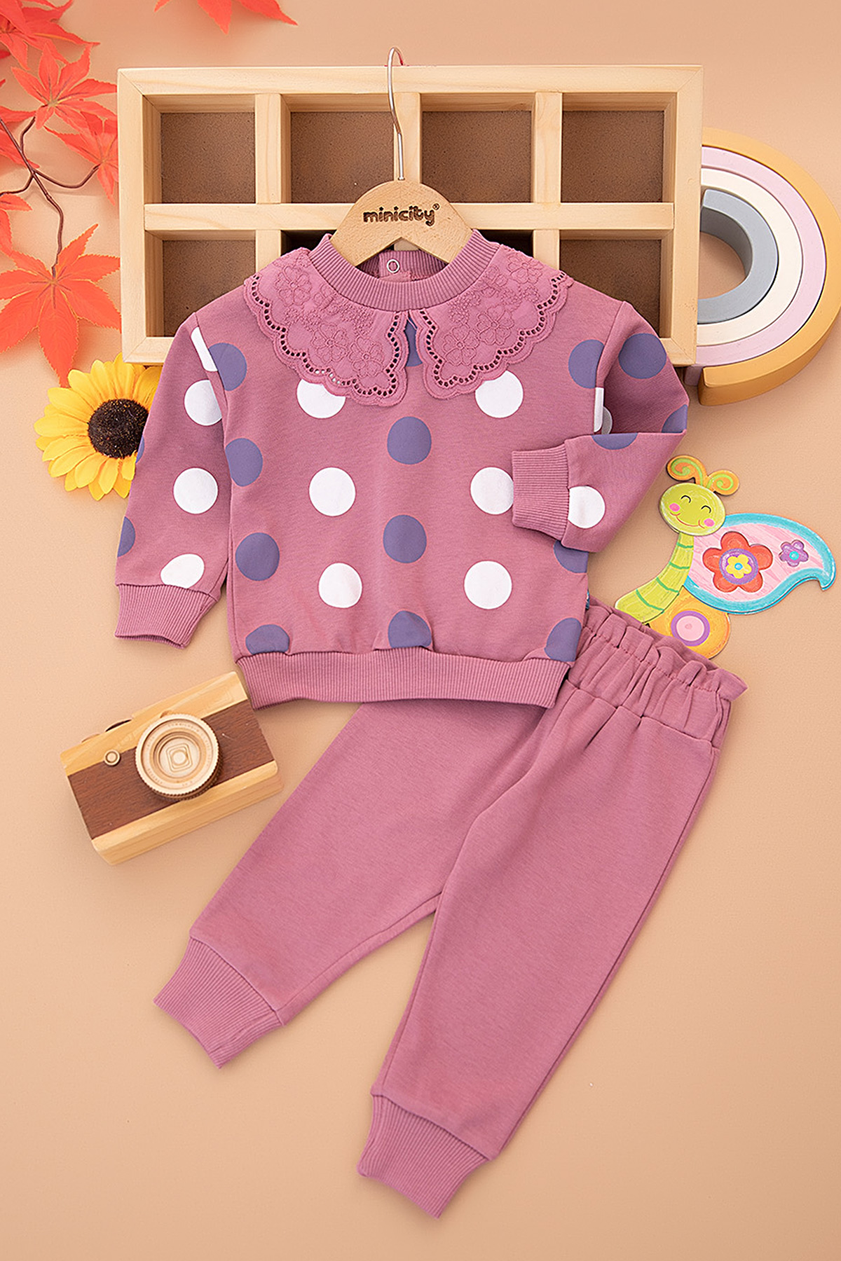 Kız Bebek Puanlı Yaka Dantelli Takım - 24044 (9-24 Ay)