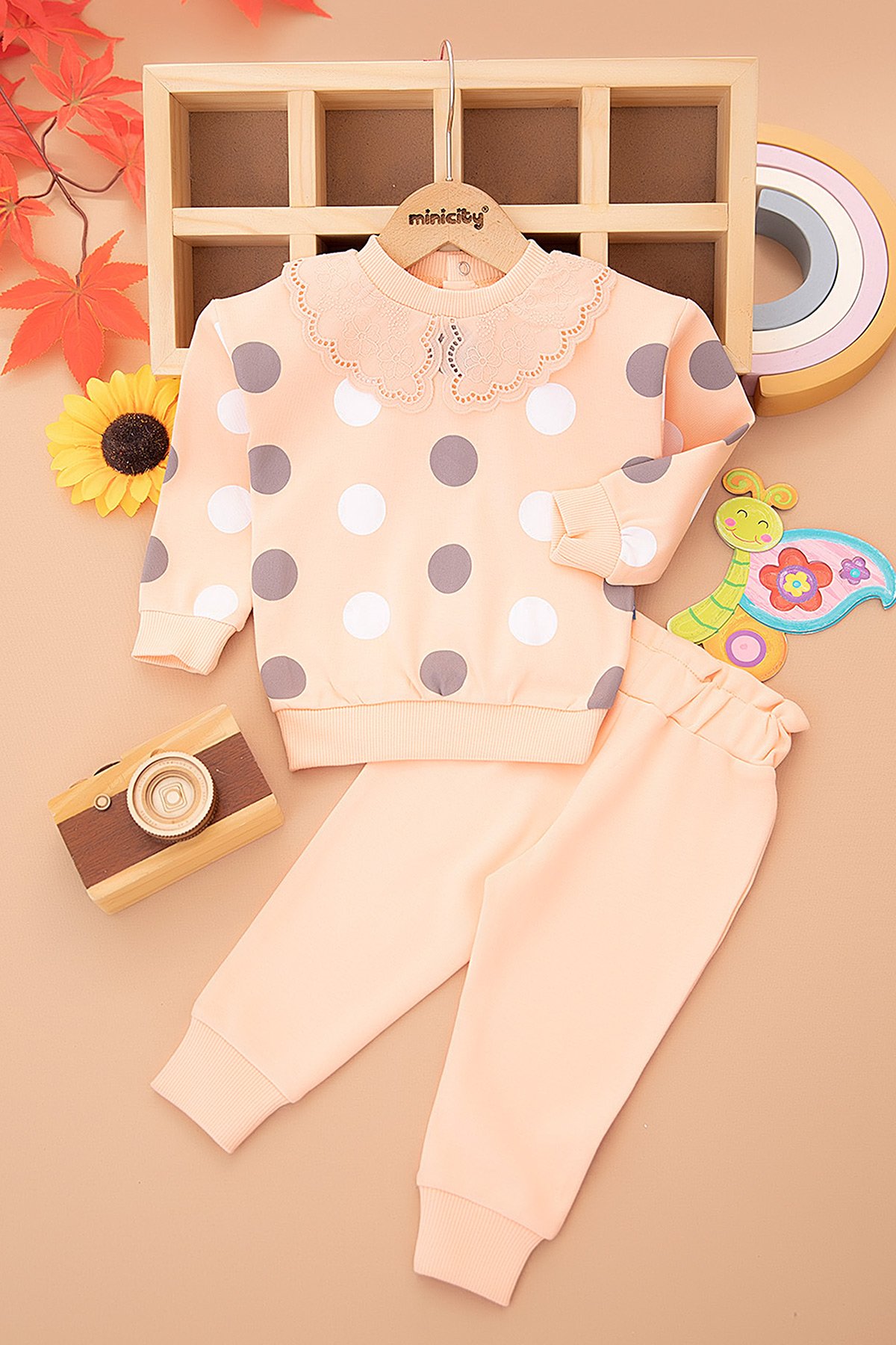 Kız Bebek Puanlı Yaka Dantelli Takım - 24044 (9-24 Ay)