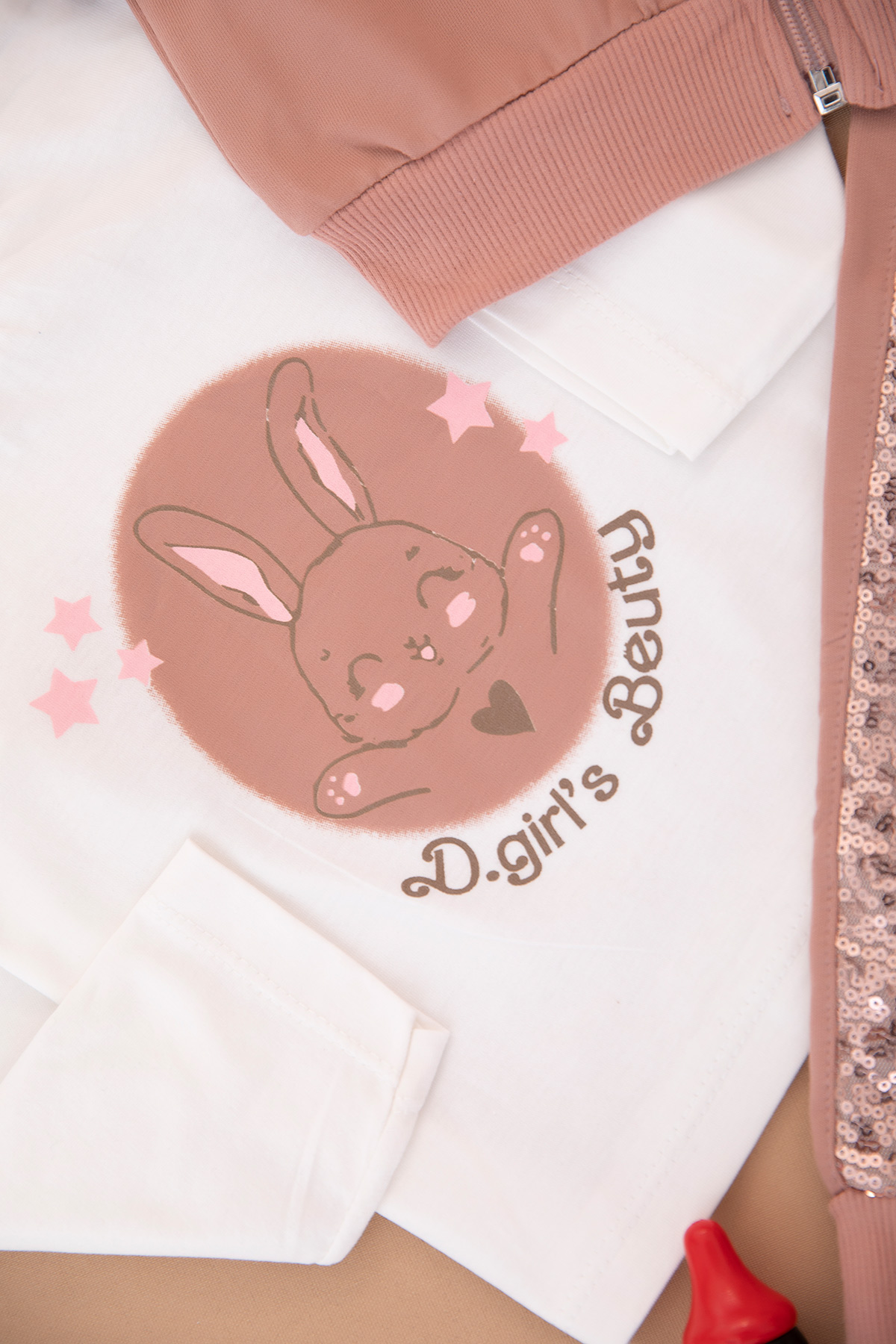 Kız Bebek Pul Tavşan Nakışlı Hırka 3`Lü Takım - 40621 (9-36 Ay)
