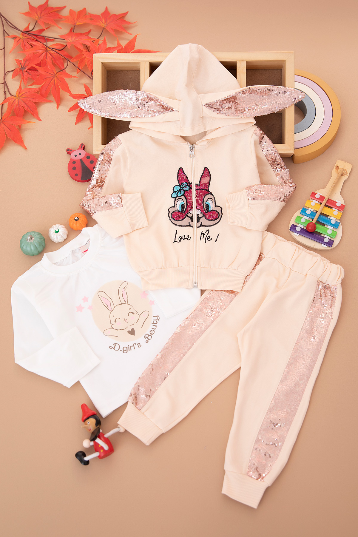 Kız Bebek Pul Tavşan Nakışlı Hırka 3`Lü Takım - 40621 (9-36 Ay)