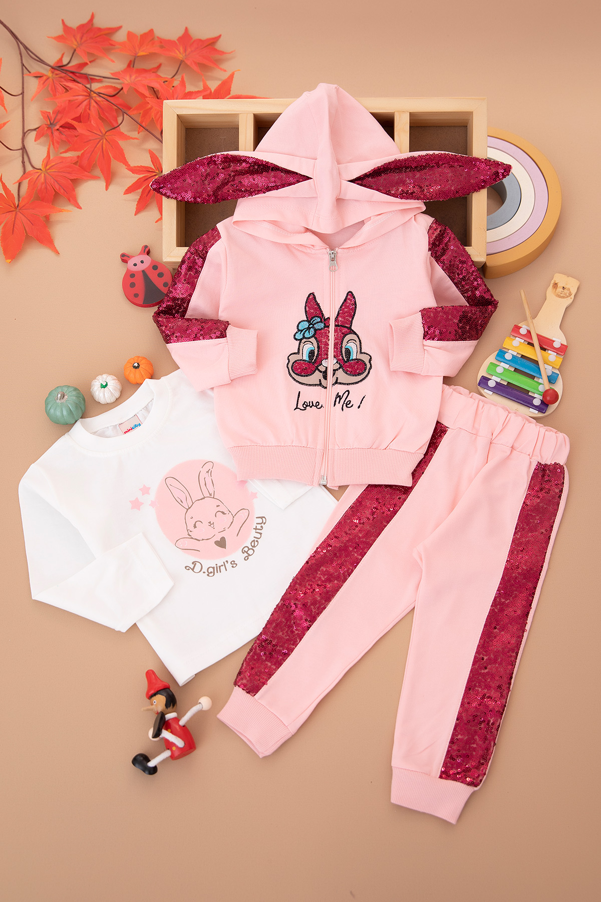 Kız Bebek Pul Tavşan Nakışlı Hırka 3`Lü Takım - 40621 (9-36 Ay)