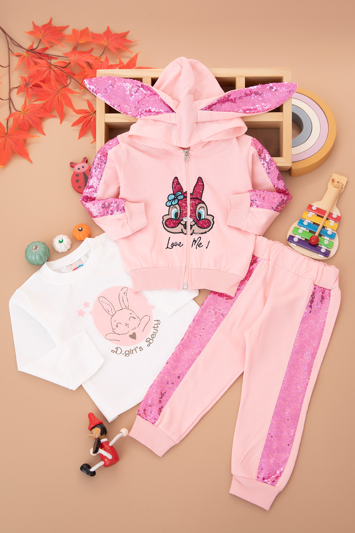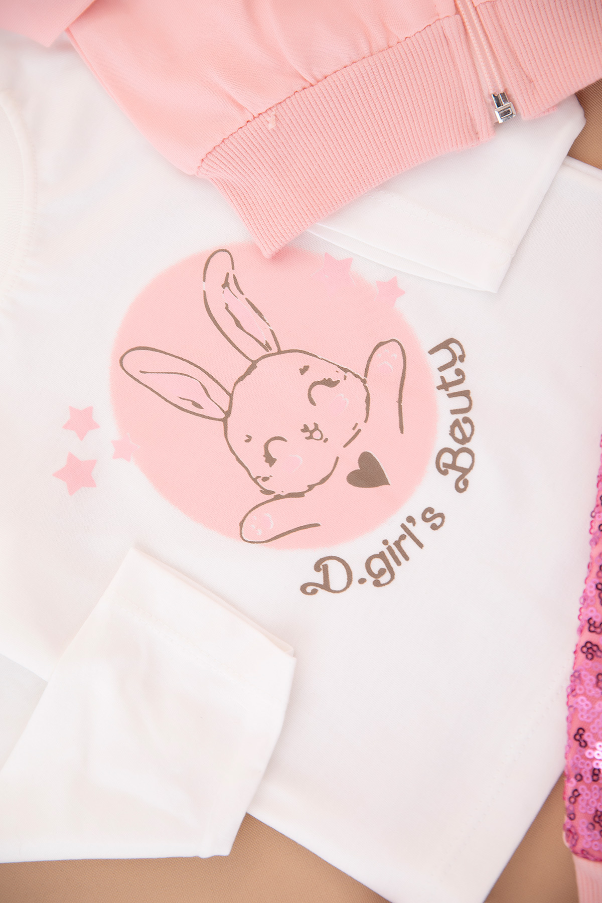 Kız Bebek Pul Tavşan Nakışlı Hırka 3`Lü Takım - 40621 (9-36 Ay)