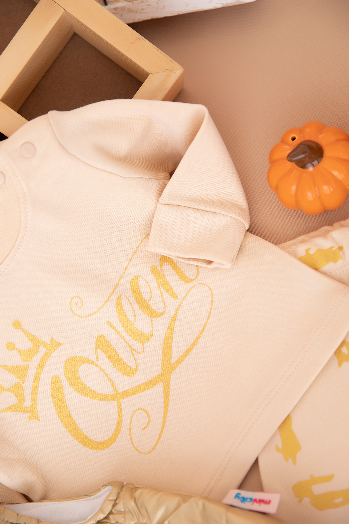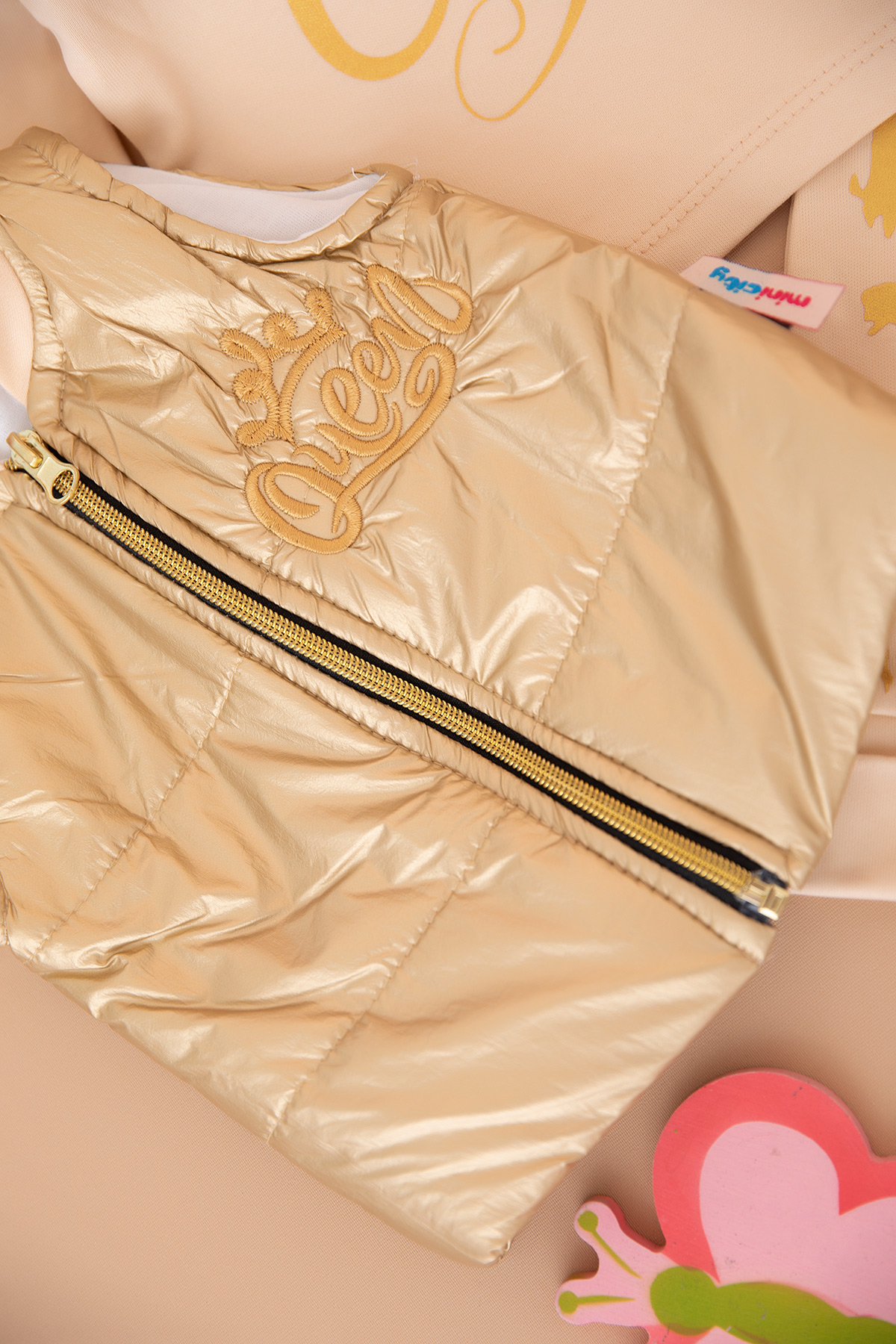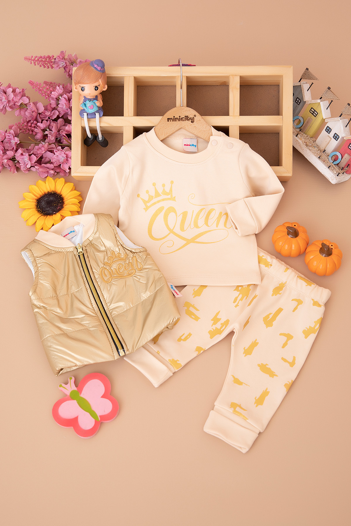 Kız Bebek Queen Nakışlı Altın Yelekli Takım - 14077 (0-12 Ay)