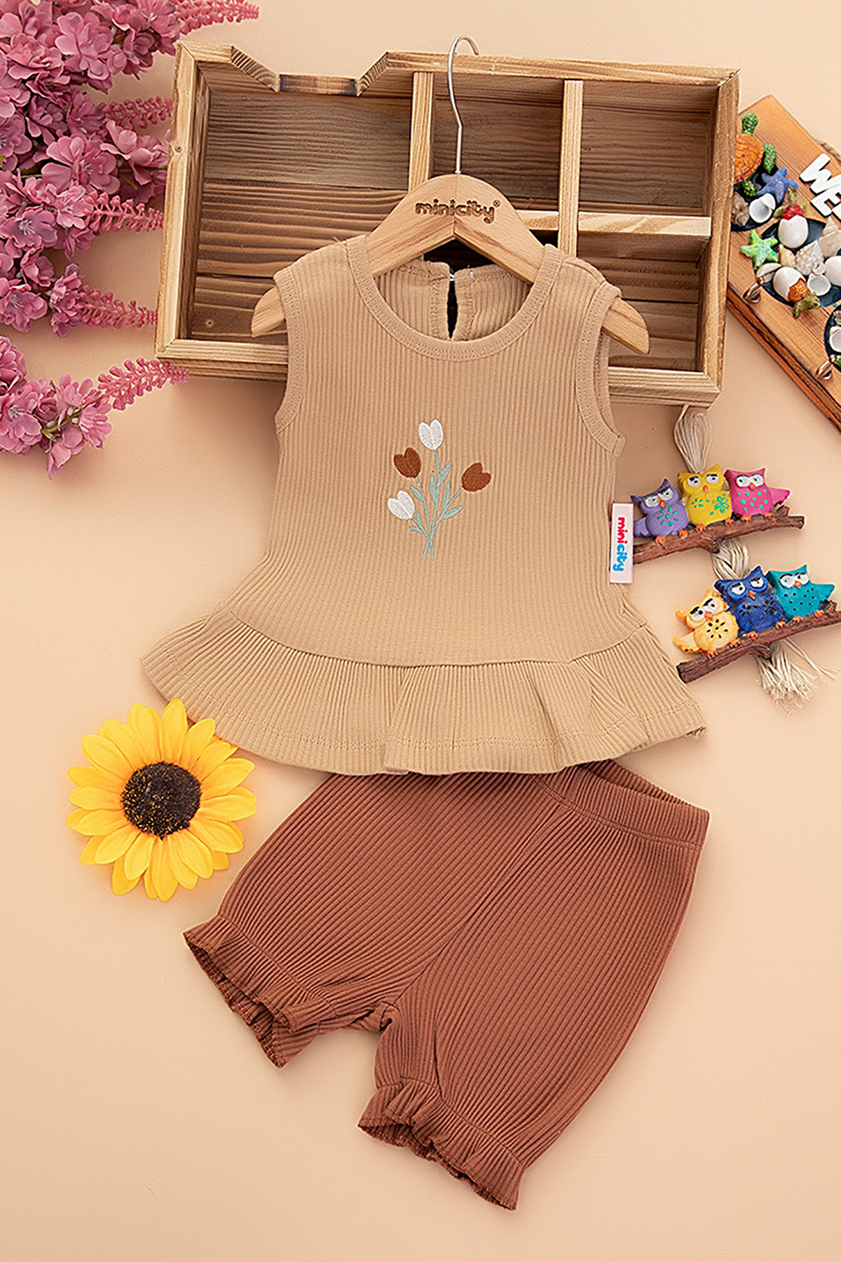 Kız Bebek Raporlu Çiçekli Şortlu Takım - 2527 (6-24 Ay)