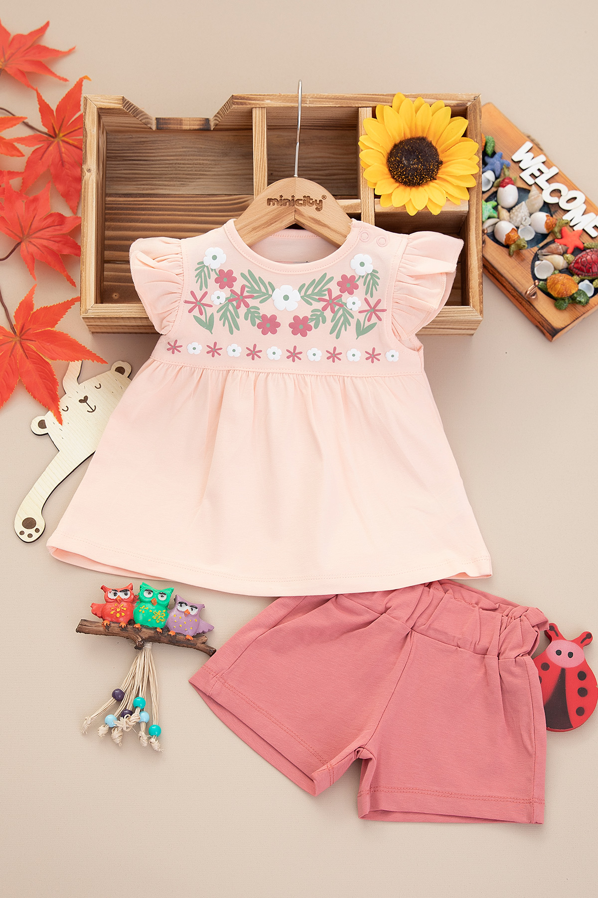 Kız Bebek Robası Çiçek Baskılı Şortlu Takım - 25415 (9-24 Ay)