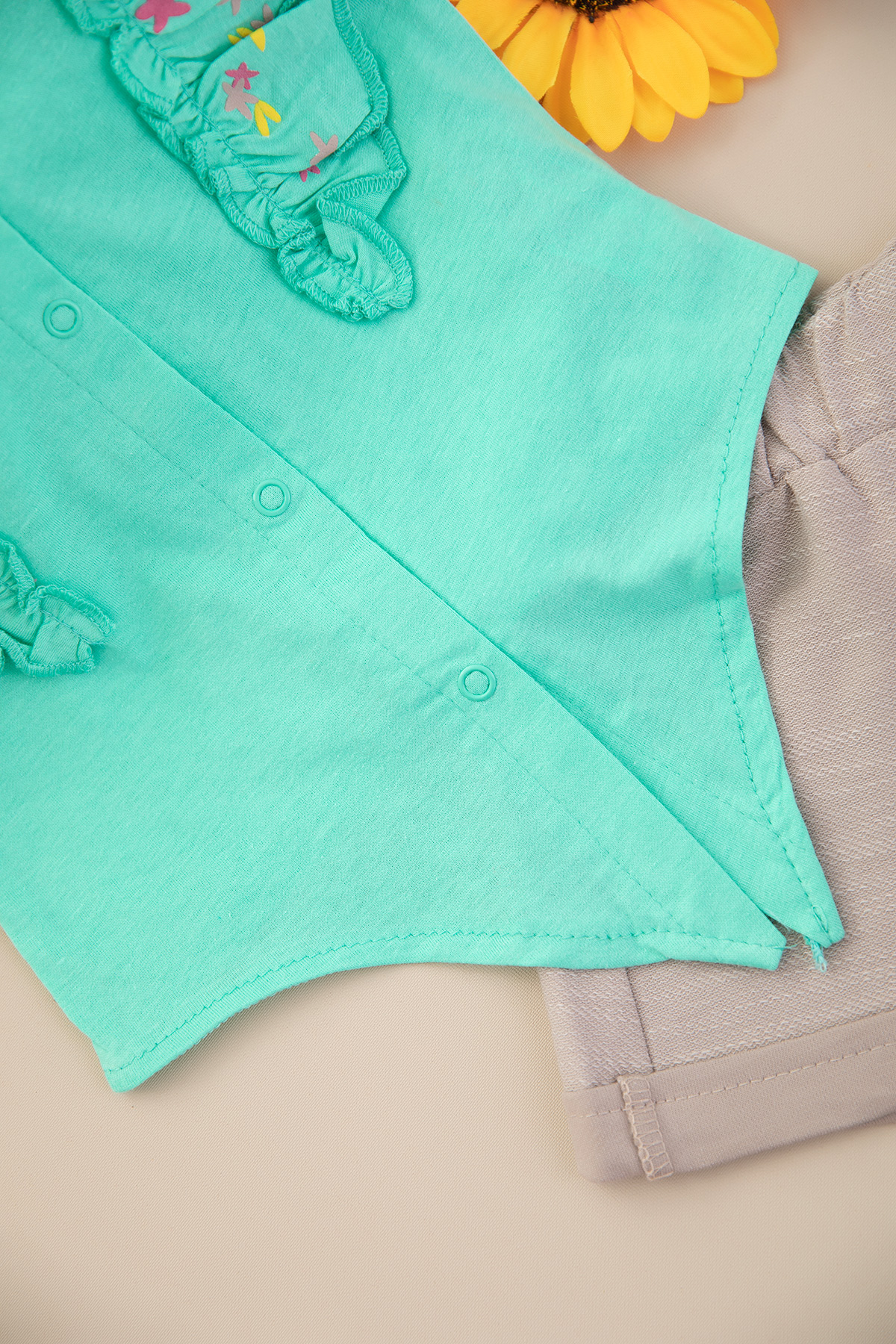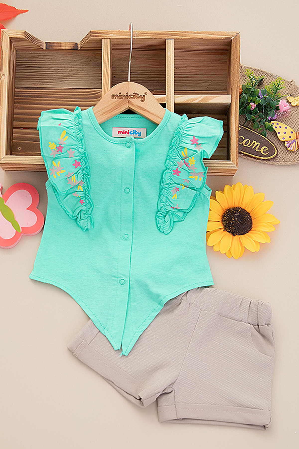 Kız Bebek Robası Çiçek Baskılı Şortlu Takım - 25421 (9-24 Ay)